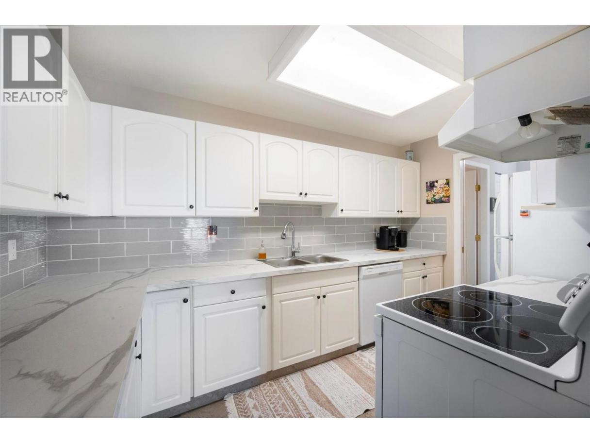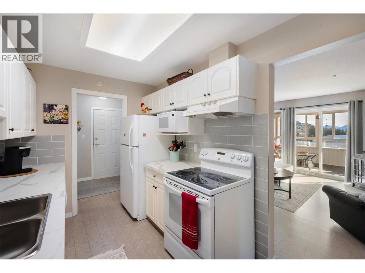 Peach City Manor is a well-maintained 55+ complex ideally located within walking distance to Cherry Lane Mall, Superstore, restaurants, and everyday amenities. This top-floor, 2-bedroom, 2-bathroom corner unit offers exceptional natural light and privacy, along with the largest west/south-facing enclosed balcony in the building, fully renovated and perfect for year-round enjoyment while taking in beautiful city and lake views. Bright and meticulously kept, the home features updated cork flooring, Updated kitchen with new countertops, and a custom walk-in bathtub in the main bathroom for added comfort and accessibility. The spacious primary bedroom includes a walk-in closet and a 3-piece ensuite. A generous in-unit storage/laundry room adds convenience, plus there is an additional secured storage locker and a designated parking stall in the secure underground parkade. Strata restrictions: No rentals, no dogs permitted, up to 2 cats allowed. (id:6769)