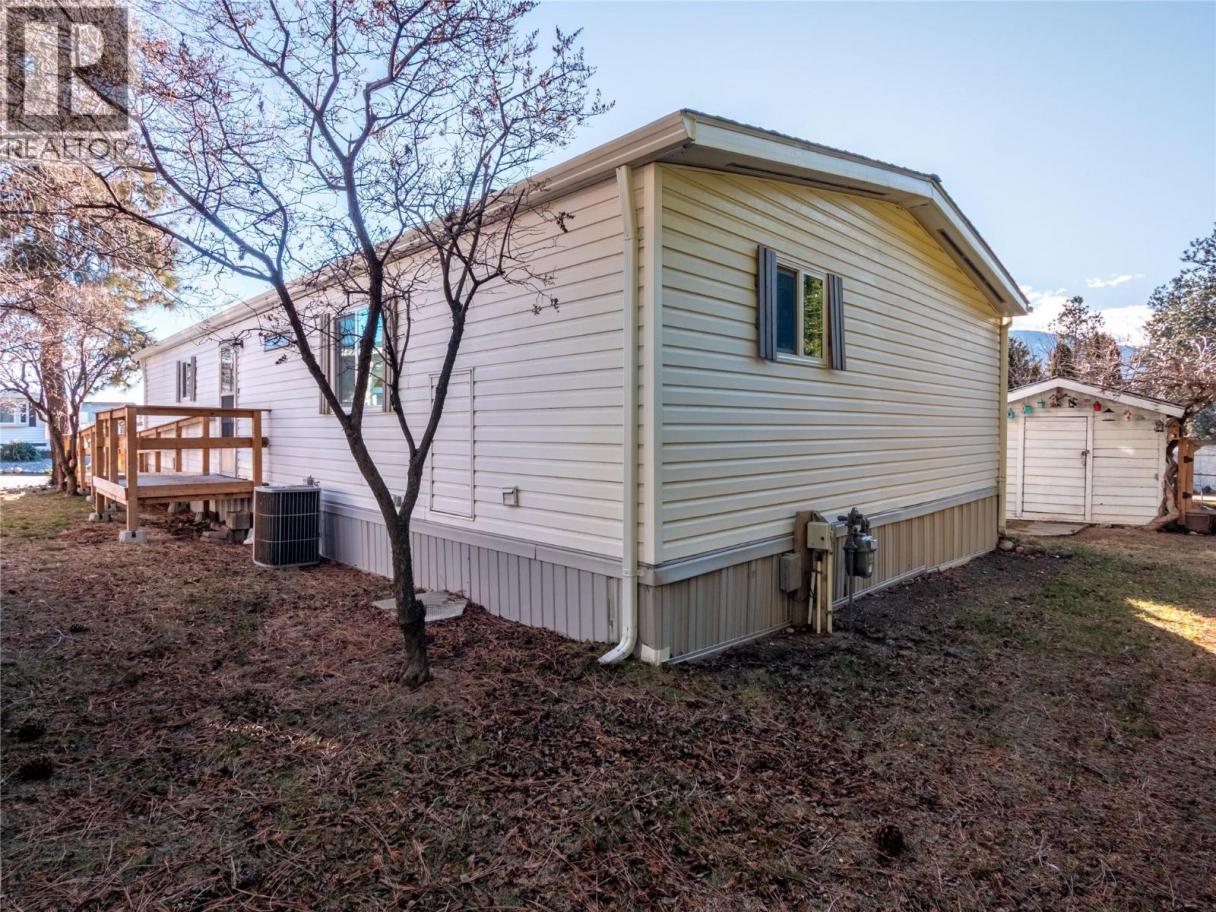Move in with confidence in this well-cared-for DOUBLE WIDE home where majority of the big-ticket items have already been taken care of for you. Over the past few years the roof, windows, furnace, and plumbing changed to PEX have all been updated to give you peace of mind and reducing the worry of major expenses. Inside, you’ll find a bright and open living space that feels welcoming and functional, perfect for everyday living. This home features 2 bedrooms and 2 bathrooms, each with its own ensuite, offering comfort and privacy for both residents and guests. Outside, the property shines with excellent curb appeal, a large covered deck, two parking spots, and a storage shed in the backyard for added convenience. The home is also wheelchair accessible with a ramp already in place, making it a thoughtful option for accessibility needs. The Pines is located in a professionally managed mobile home park, this is an excellent opportunity to own an affordable home in a fantastic Penticton location. You are walking distance from everything you would need such as Cherry Lane Shopping Centre, Real Canadian Superstore, and Penticton Regional Hospital. RV parking is available in the compound for $45 a month, and one small dog or cat is allowed, making this a great place to call home. (id:6769)