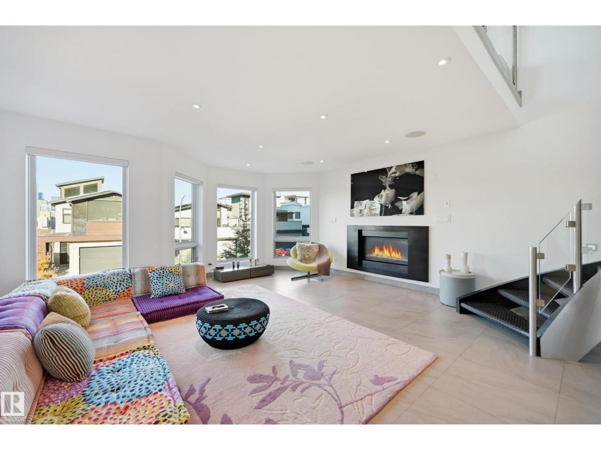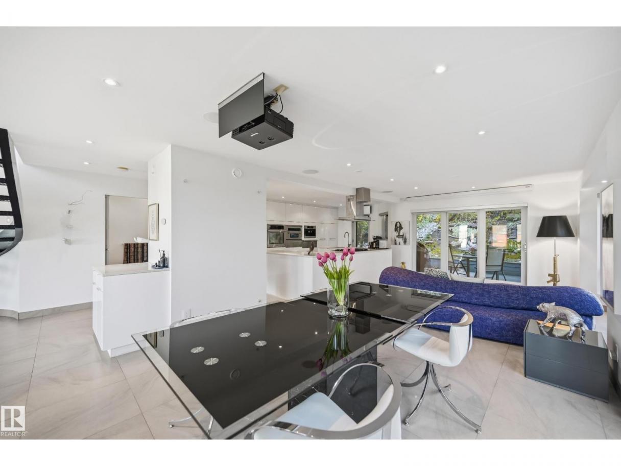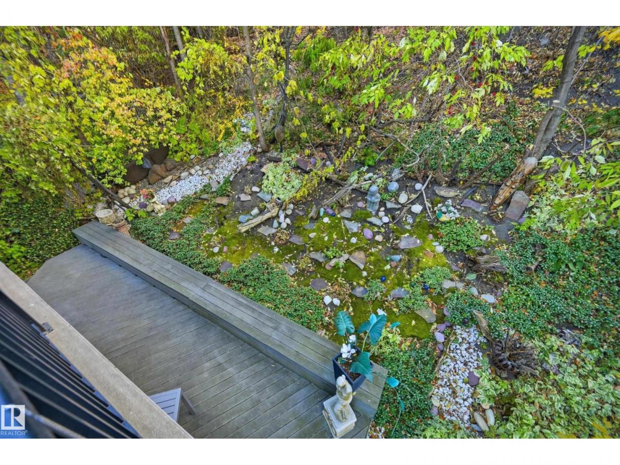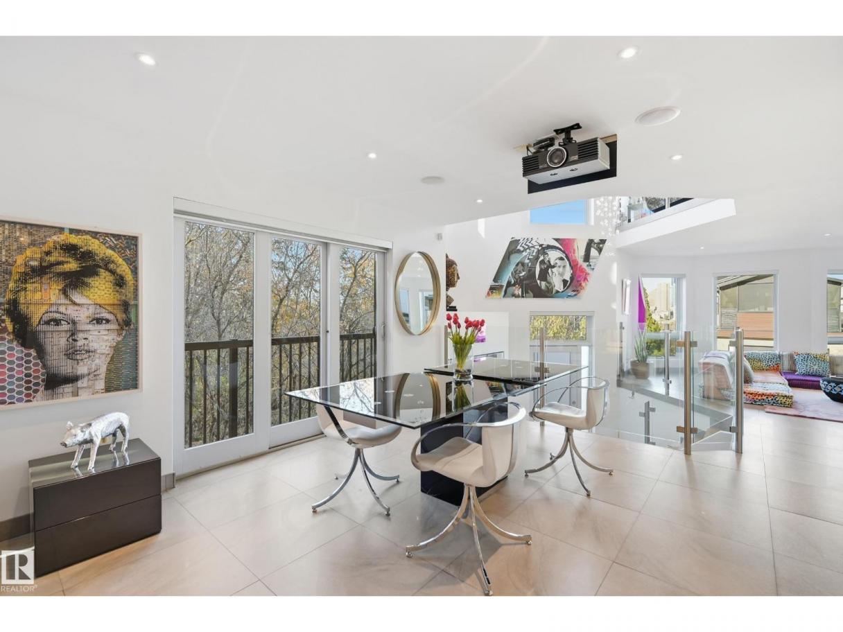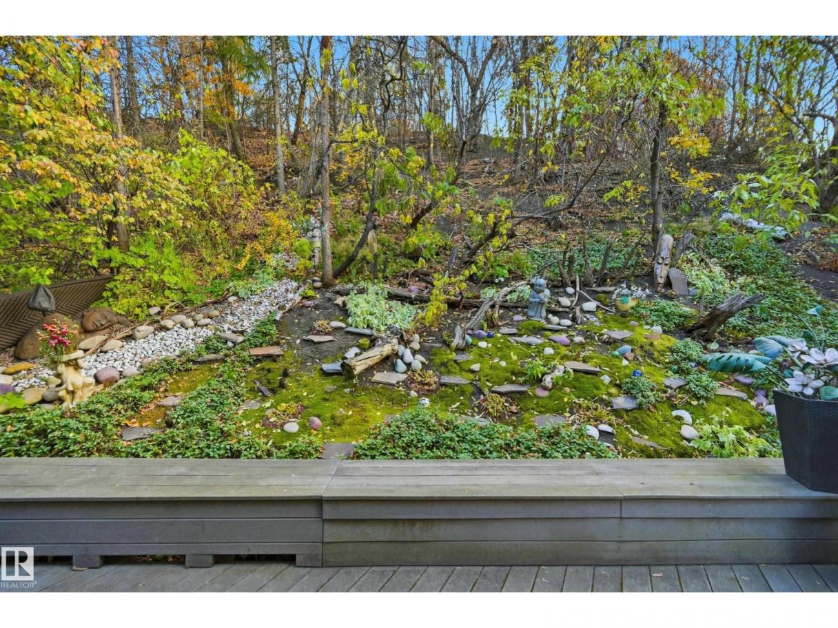 ARCHITECTURAL GEM IN EDMONTON’S RIVER VALLEY! Tucked into the quiet enclave of Skunk Hollow, this modern home blends thoughtful design with rare privacy. Rebuilt from the frame up in 2007, it offers clean lines, warm natural light, and a calm connection to its ravine setting. Large windows frame views of the trees by day and city lights by night. The open main floor features two inviting living areas and a chef’s kitchen with Sub-Zero and Miele appliances, perfect for cooking or entertaining. Upstairs, the owner’s retreat includes a private office, flex space, spa-inspired ensuite, and expansive walk-in closet with access to a peaceful patio. The reverse walkout lower level offers a heated epoxy garage, full bath, and guest/flex room (no window), with in-floor heating throughout. Opportunity exists to add additional bedrooms. NOTE: 3D renderings illustrate potential future layouts. Garage photo virtually staged. (id:6769)