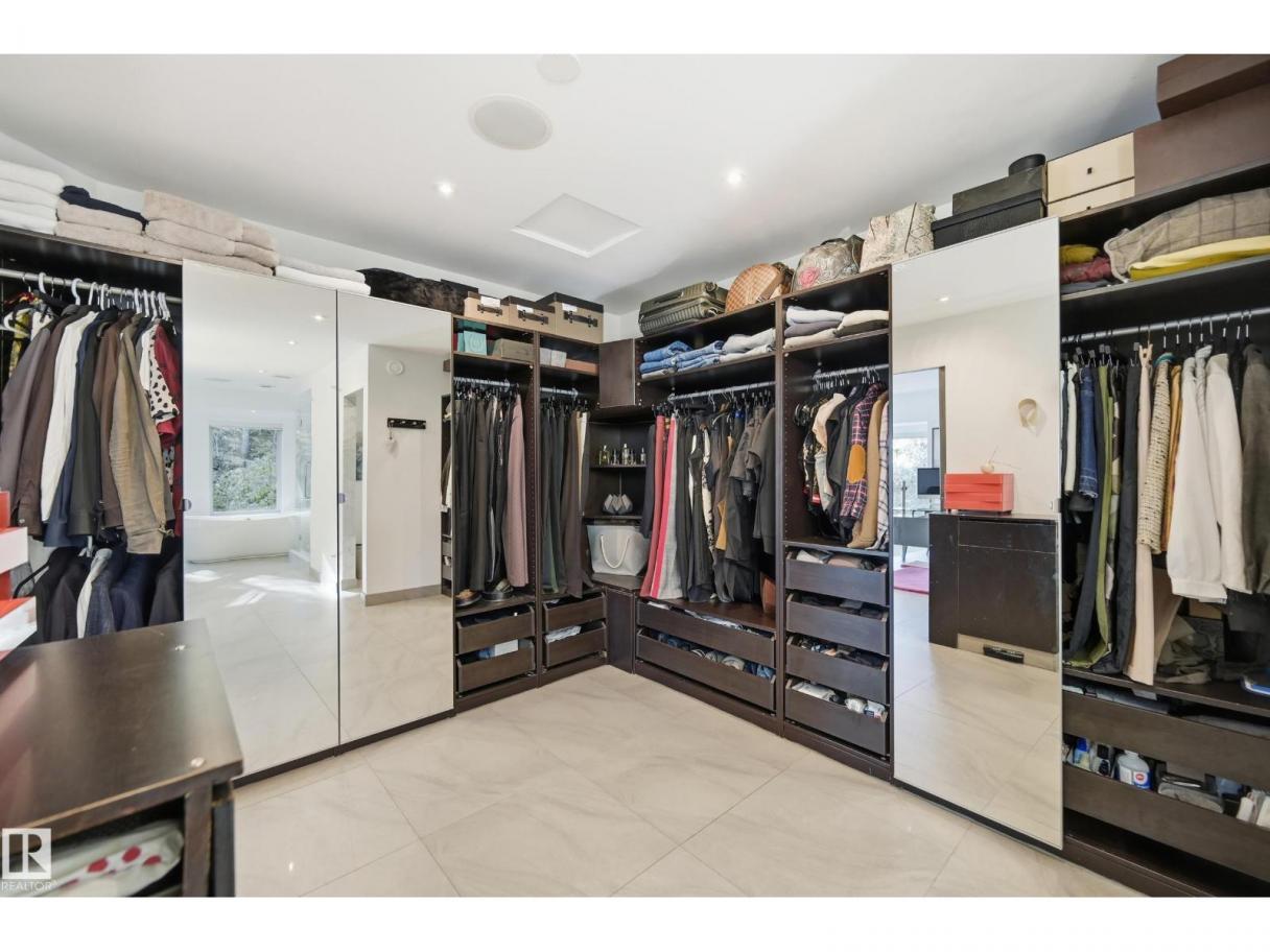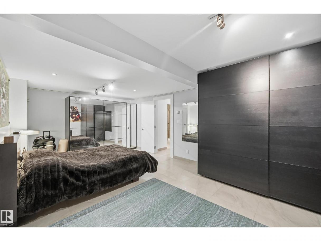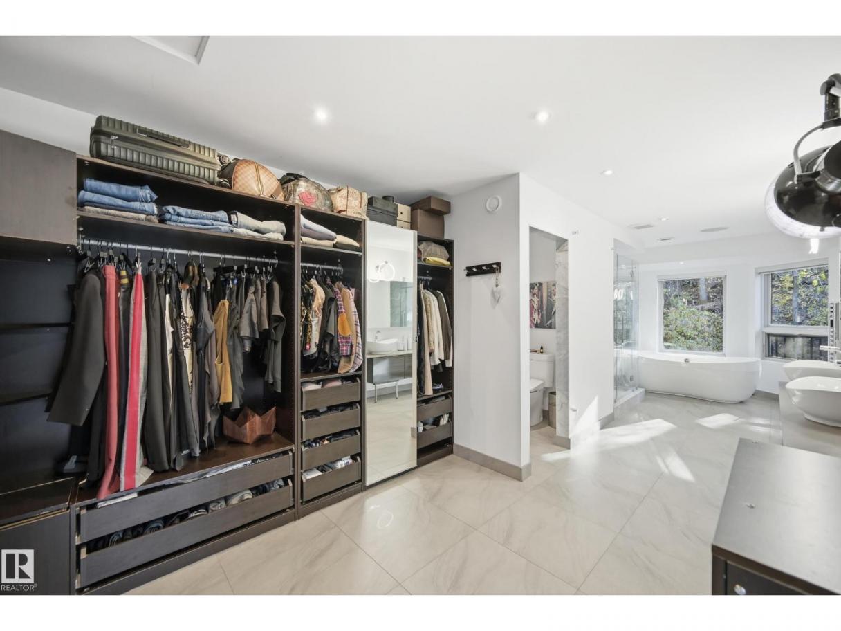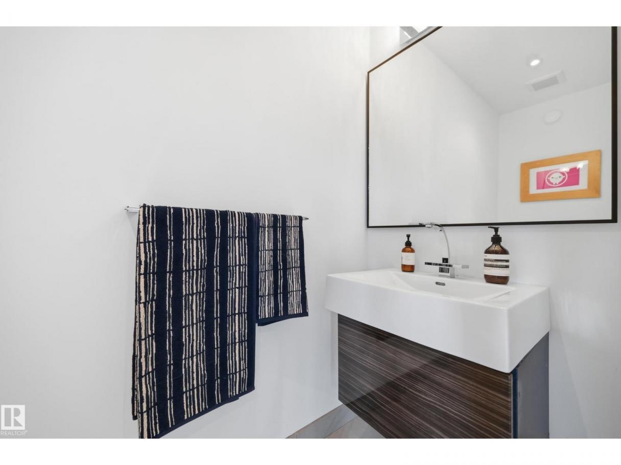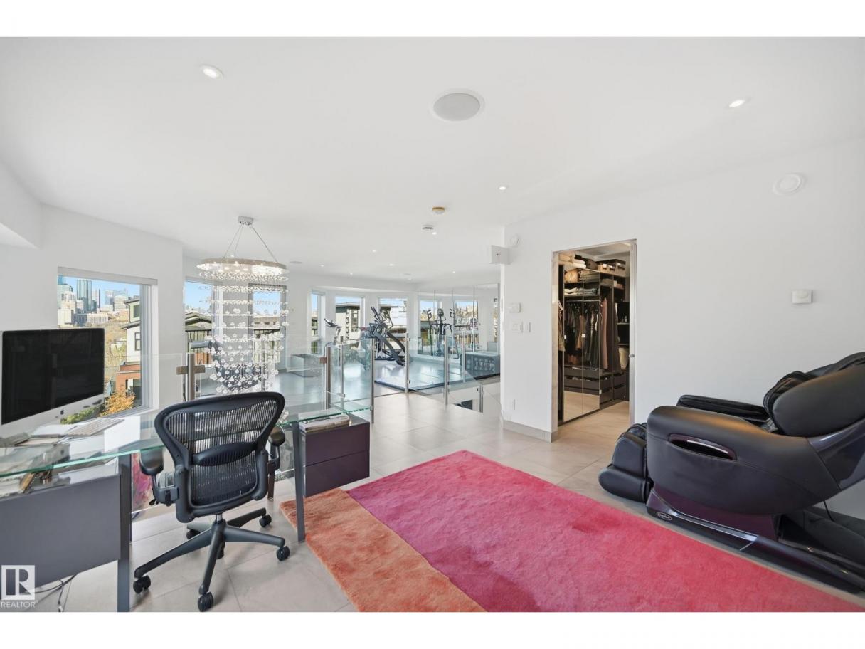 ARCHITECTURAL GEM IN EDMONTON’S RIVER VALLEY! Tucked into the quiet enclave of Skunk Hollow, this modern home blends thoughtful design with rare privacy. Rebuilt from the frame up in 2007, it offers clean lines, warm natural light, and a calm connection to its ravine setting. Large windows frame views of the trees by day and city lights by night. The open main floor features two inviting living areas and a chef’s kitchen with Sub-Zero and Miele appliances, perfect for cooking or entertaining. Upstairs, the owner’s retreat includes a private office, flex space, spa-inspired ensuite, and expansive walk-in closet with access to a peaceful patio. The reverse walkout lower level offers a heated epoxy garage, full bath, and guest/flex room (no window), with in-floor heating throughout. Opportunity exists to add additional bedrooms. NOTE: 3D renderings illustrate potential future layouts. Garage photo virtually staged. (id:6769)