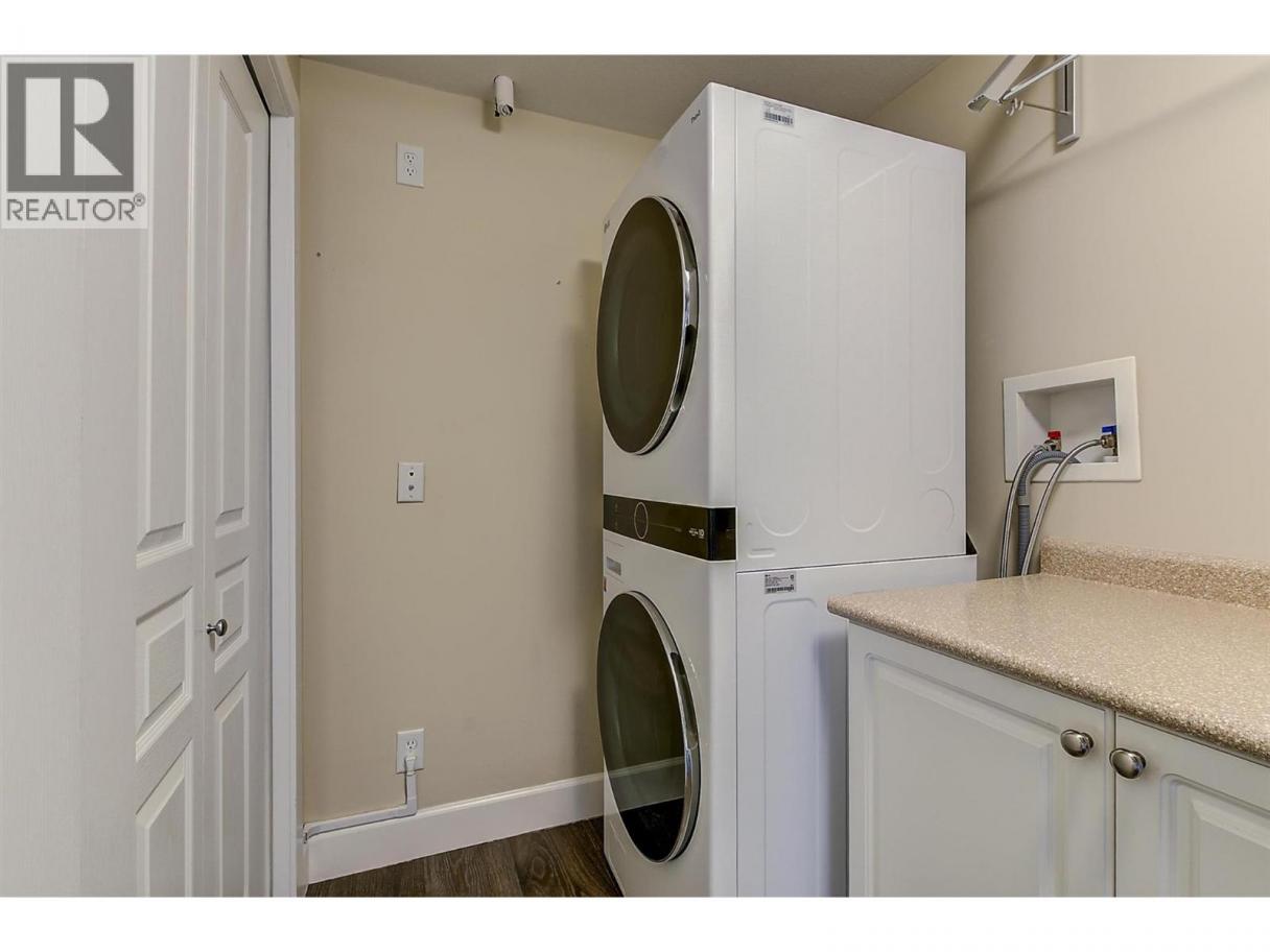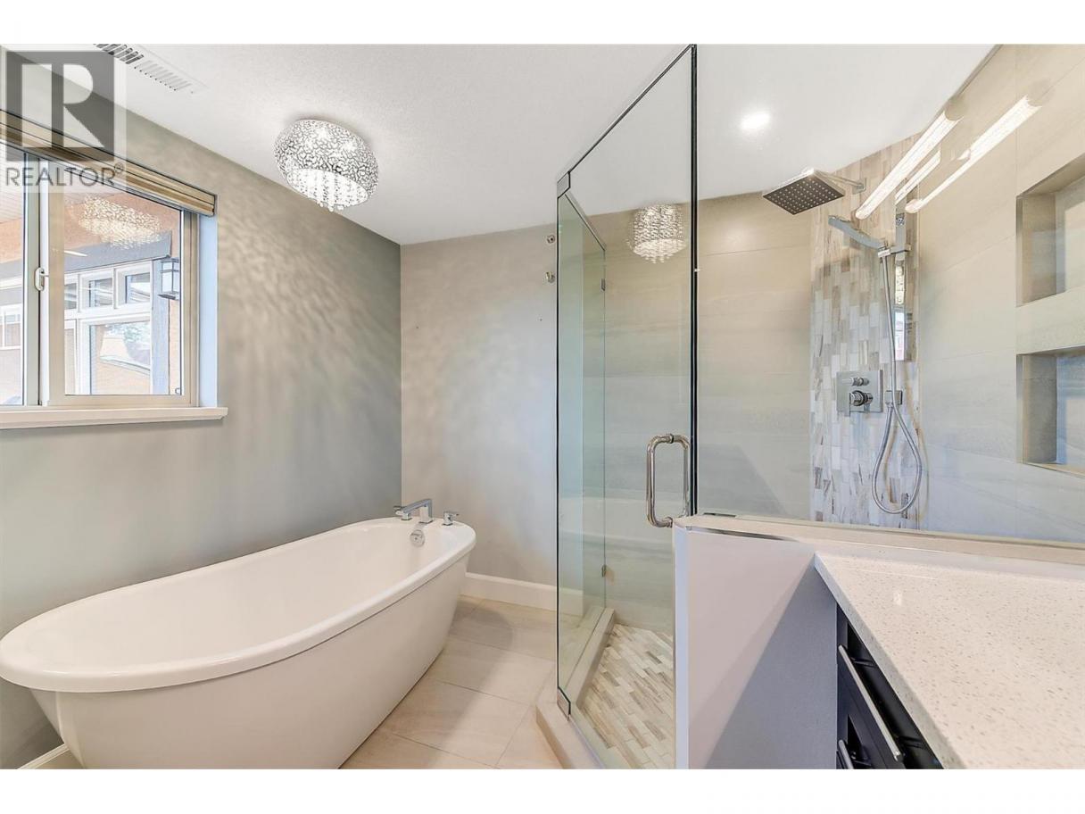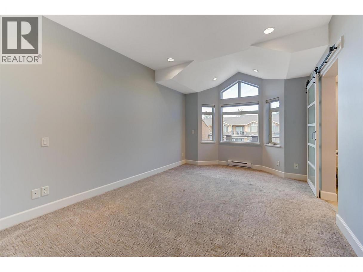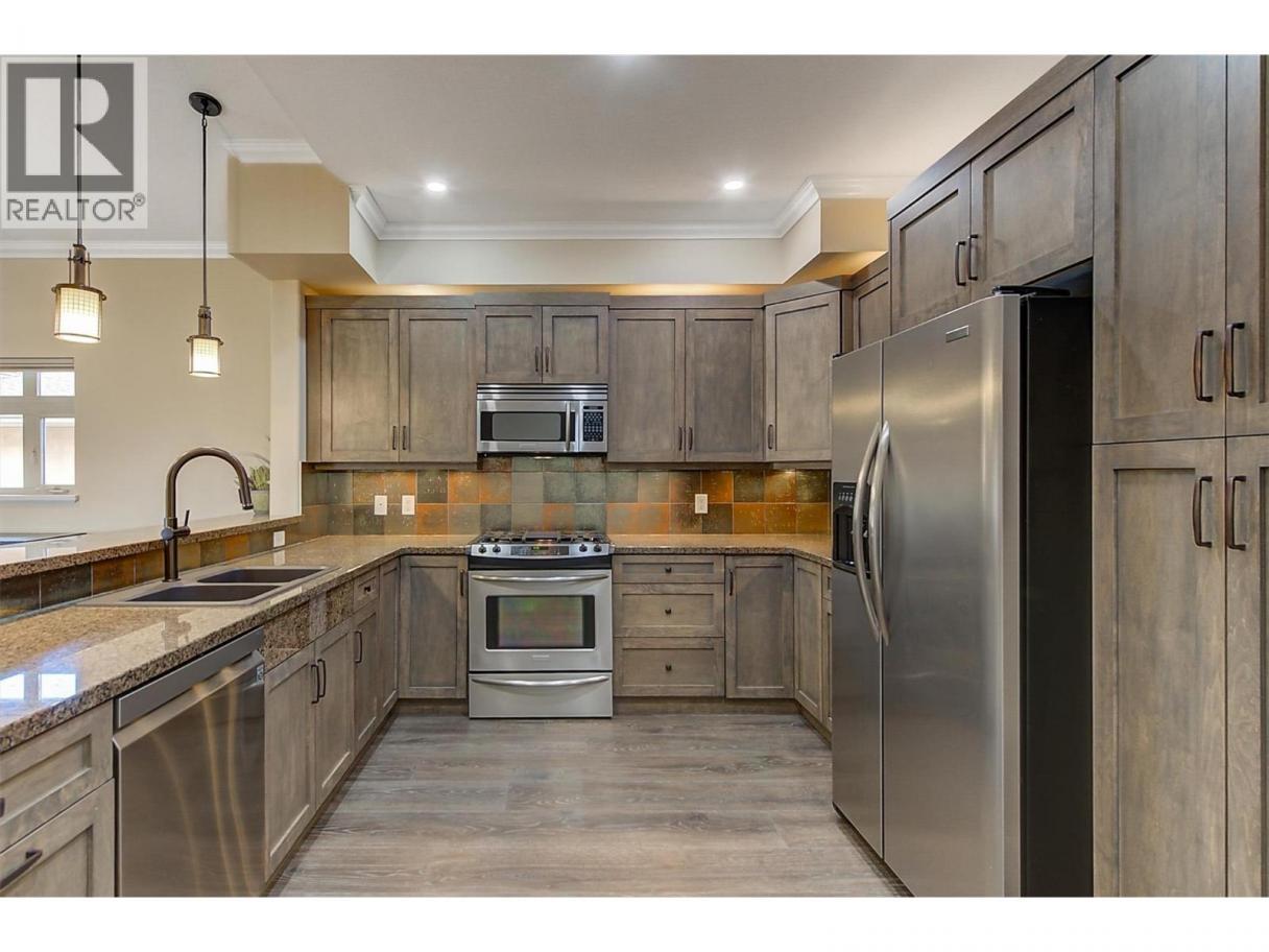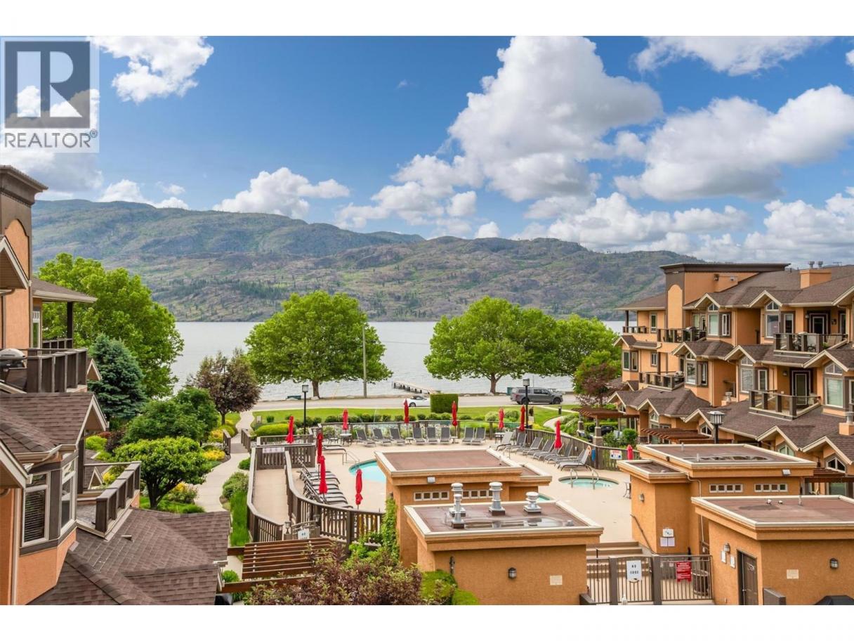 Experience elevated lakeside living in this fully renovated top-floor penthouse at Lakeshore Gardens. Spanning 1,748 sq ft, this 3-bedroom, 2-bath residence offers breathtaking lake, pool, and garden views from a premium vantage point. Vaulted ceilings and upscale finishes create an elegant, airy atmosphere throughout. The gourmet kitchen is designed to impress with granite countertops, custom cabinetry, soft-close doors, pull-out drawers, and a gas range. The living room centers around a dramatic floor-to-ceiling gas fireplace, while a double-sized deck captures panoramic views — perfect for entertaining or quiet evenings overlooking the water. The primary suite is a true retreat, featuring a walk-in closet and spa-inspired ensuite with quartz counters, soaker tub, and rain shower. Stylish vinyl-coated laminate flooring, luxe tile bathrooms, plush bedroom carpeting, and a brand-new heat pump (Dec 2024) ensure comfort and efficiency. Resort-style amenities include a heated pool, year-round hot tub, fitness center, kayak and bike storage, boat launch, social hall, guest suites, secure parking, and storage. Steps to Okanagan Lake, this move-in-ready penthouse delivers luxury, lifestyle, and location in one exceptional package. (id:6769)