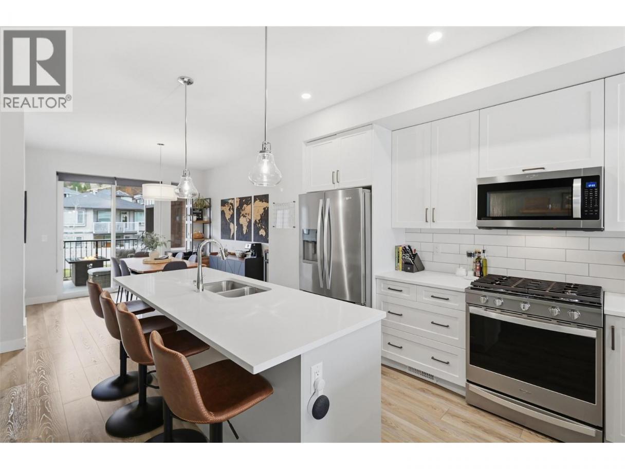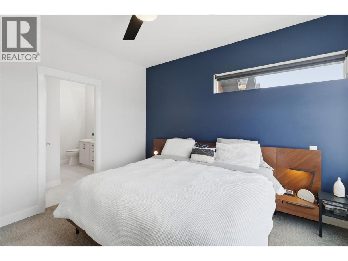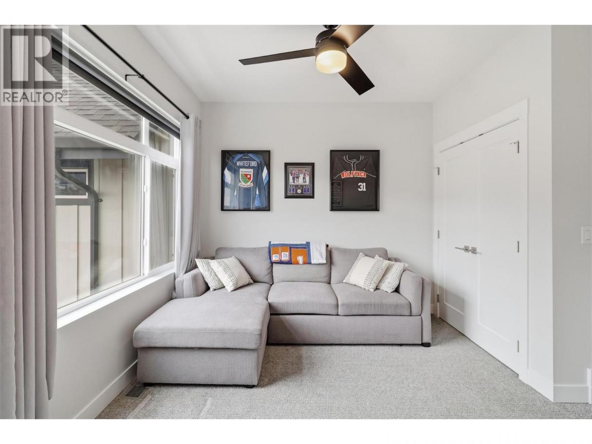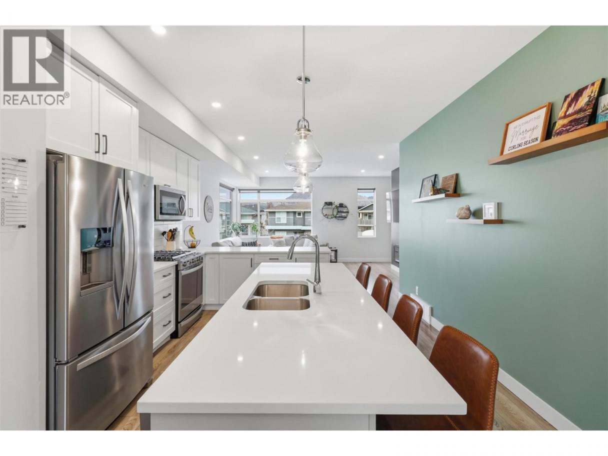 One of the best positioned units in the complex — and it shows. This like-new Juniper Ridge townhouse is thoughtfully set offset from the neighbouring unit, allowing for larger living room windows that capture incredible sunsets you simply don’t get in most other units here. The added separation also means the primary bedroom and lower-level bedroom/den don’t share the same wall alignment as many others — offering a noticeable layer of privacy & more light with the extra windows. The main floor is bright and open, with a spacious island and upgraded quartz surfaces carried throughout the home (another upgrade). Stainless appliances, gas range, and a stunning large windows elevate the space, while sliding doors lead to an oversized covered patio with n/g hookup perfect for year-round grilling. Entry level offers a mudroom off the garage, a private third bedroom or office with walkout patio access, and a 2-piece bath — ideal for guests or work-from-home flexibility. Upstairs features top-floor laundry and two generous bedrooms, including a spacious primary with walk-in closet and a 4-piece ensuite with double sinks. An extra-long driveway can fit two vehicles — a rare bonus in this development, plus + extra stall (total 3-4 spaces depending on car size). Located across from Juniper West Park, steps to the dog park and Bike Ranch trails, this unit combines premium positioning, privacy, upgrades, and lifestyle. If you’ve been watching this complex, this is the one worth seeing. (id:6769)