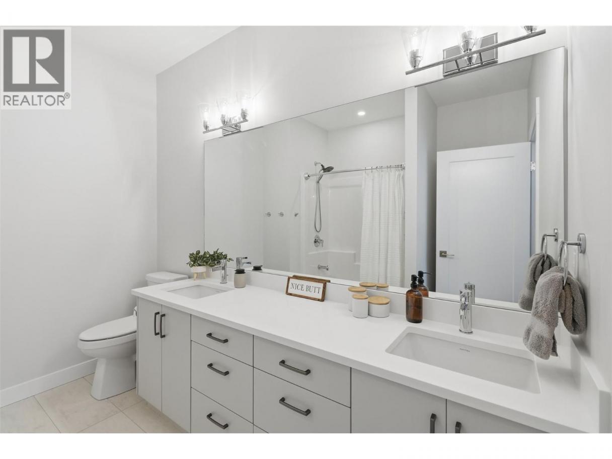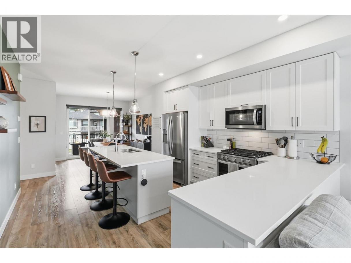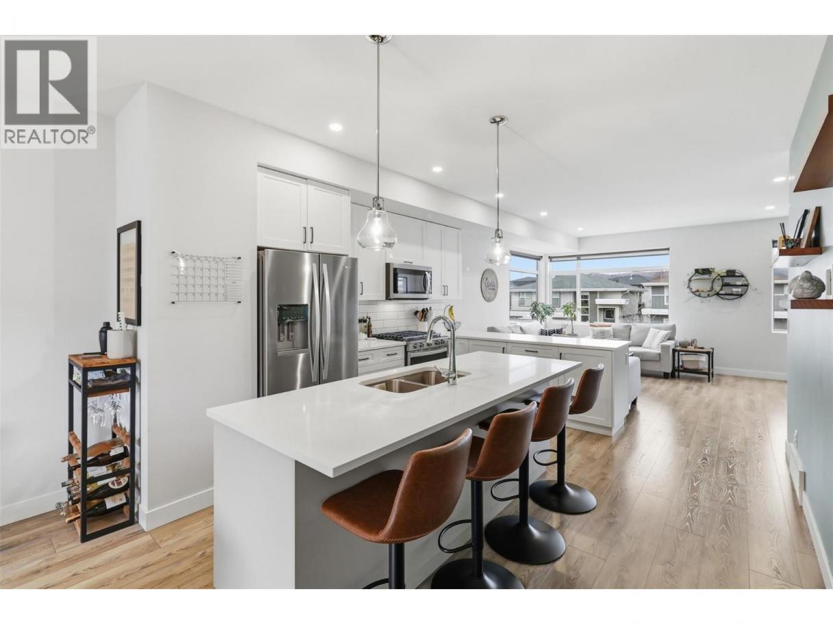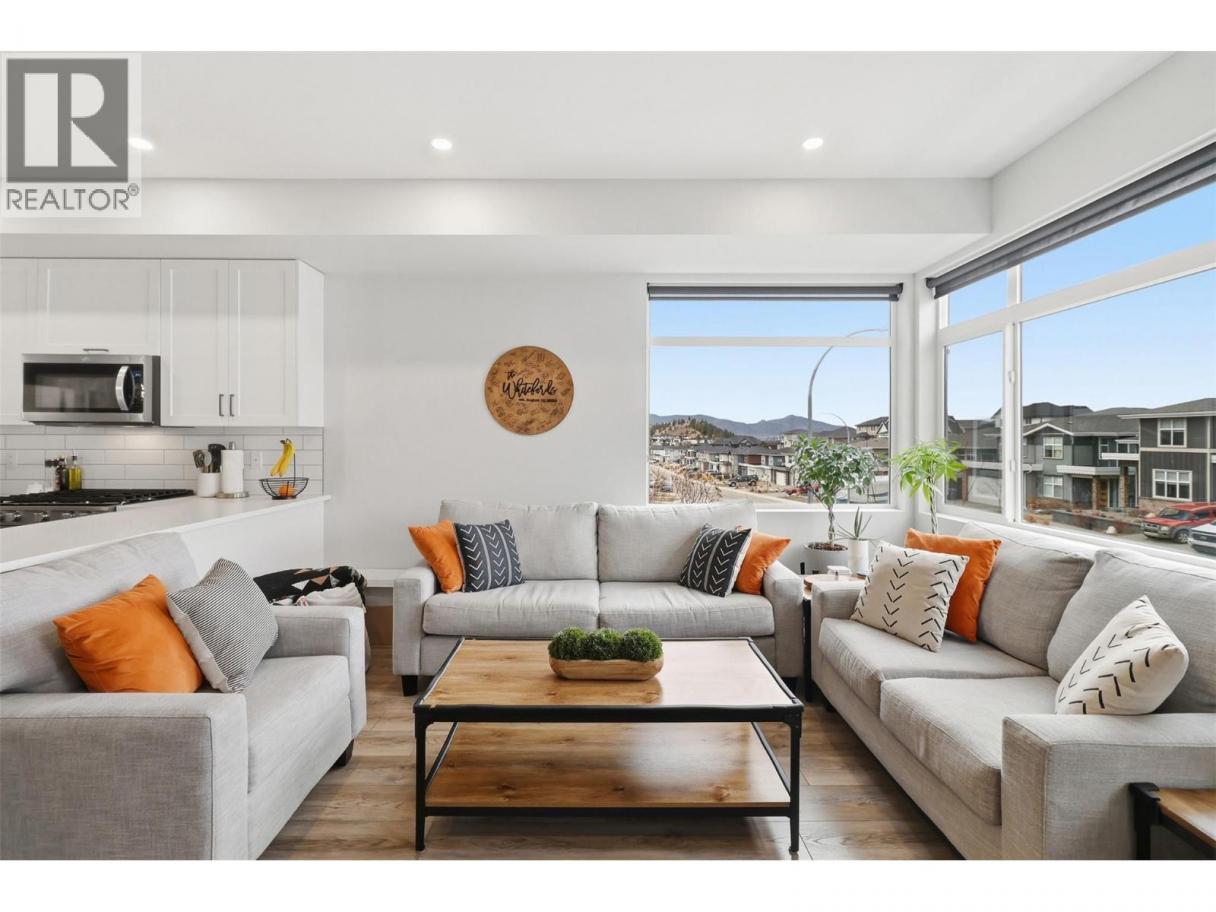 One of the best positioned units in the complex — and it shows. This like-new Juniper Ridge townhouse is thoughtfully set offset from the neighbouring unit, allowing for larger living room windows that capture incredible sunsets you simply don’t get in most other units here. The added separation also means the primary bedroom and lower-level bedroom/den don’t share the same wall alignment as many others — offering a noticeable layer of privacy & more light with the extra windows. The main floor is bright and open, with a spacious island and upgraded quartz surfaces carried throughout the home (another upgrade). Stainless appliances, gas range, and a stunning large windows elevate the space, while sliding doors lead to an oversized covered patio with n/g hookup perfect for year-round grilling. Entry level offers a mudroom off the garage, a private third bedroom or office with walkout patio access, and a 2-piece bath — ideal for guests or work-from-home flexibility. Upstairs features top-floor laundry and two generous bedrooms, including a spacious primary with walk-in closet and a 4-piece ensuite with double sinks. An extra-long driveway can fit two vehicles — a rare bonus in this development, plus + extra stall (total 3-4 spaces depending on car size). Located across from Juniper West Park, steps to the dog park and Bike Ranch trails, this unit combines premium positioning, privacy, upgrades, and lifestyle. If you’ve been watching this complex, this is the one worth seeing. (id:6769)