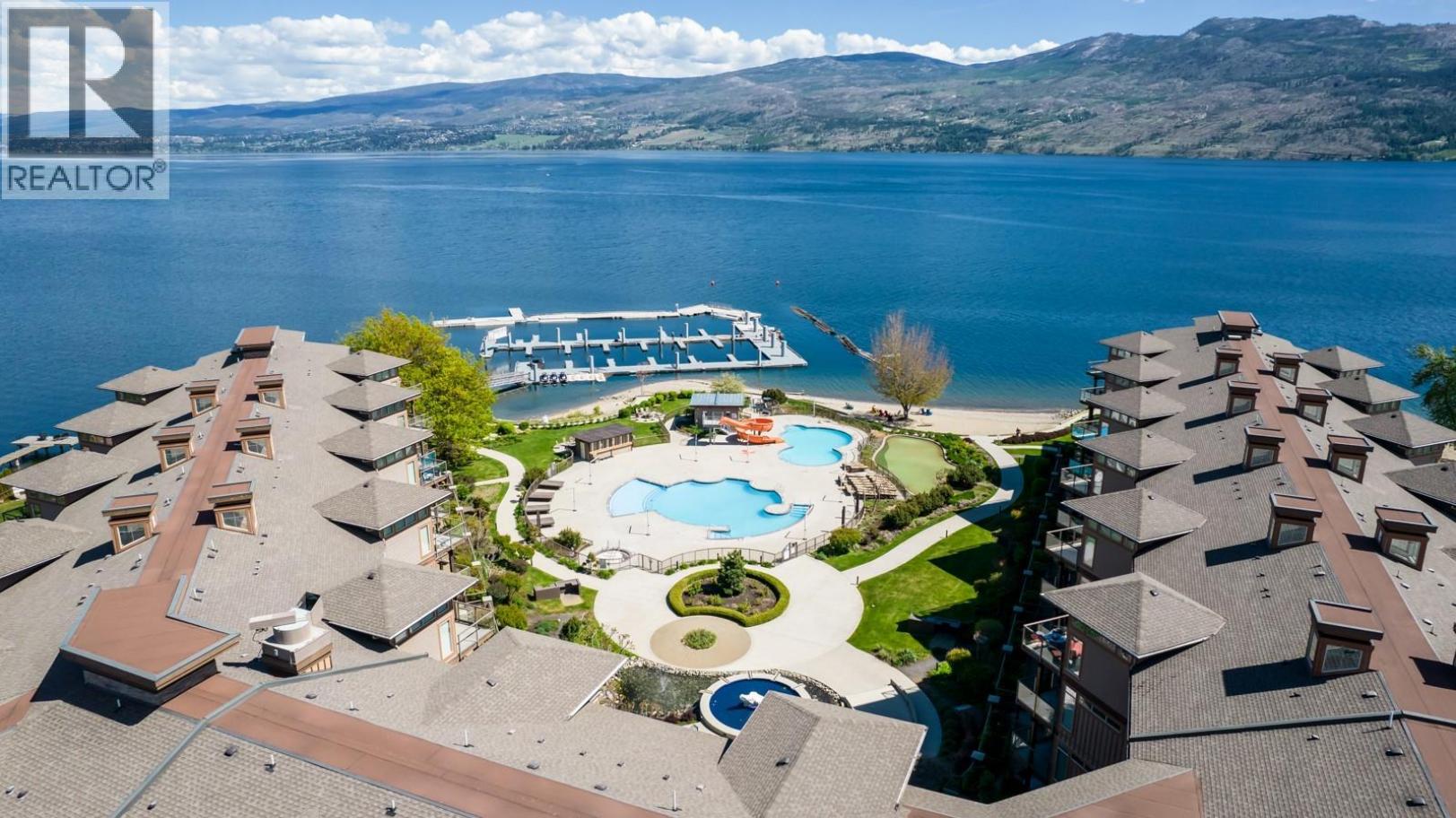 PRICE BELOW BC ASSESSMENT! BEST BUY for a LAKE VIEW SUITE in the COVE! Picture yourself waking up to a breathtaking sunrise as you sip your morning coffee on your expansive covered balcony, all while soaking in the stunning views of the LAKE. Marvel at the panoramic scenery, featuring horse pastures, Mt. Boucherie, and the picturesque Gellatly Bay. This rare floor plan offers a thoughtfully designed split bedroom layout, with a spacious primary bedroom featuring its own private deck. The second bedroom comes with a convenient cheater 5pc ensuite. The open concept living space encompasses a full kitchen, dining area, and living room, creating the perfect setting for entertainment. Step through French double doors that lead to a second covered deck, enhancing the indoor-outdoor living experience. The kitchen is a chef's delight, boasting granite countertops, maple cabinetry, and NEWER appliances. #304 participates in the professionally managed hotel rental pool. A seamless program that has shown strong success with consistent year-over-year revenue growth! Enjoy access to world-class amenities such as pools, hot tubs, a sandy beach, marina, community park, spa, the acclaimed Landing Restaurant, wineries, lake activities, tennis, golf, and more. Situated on irreplaceable Lakefront acreage, this property includes a private beach adjacent to a historic nut farm. Your rare chance to own an upscale fully furnished condo in the Cove. Indulge in the ultimate lifestyle! (id:6769)