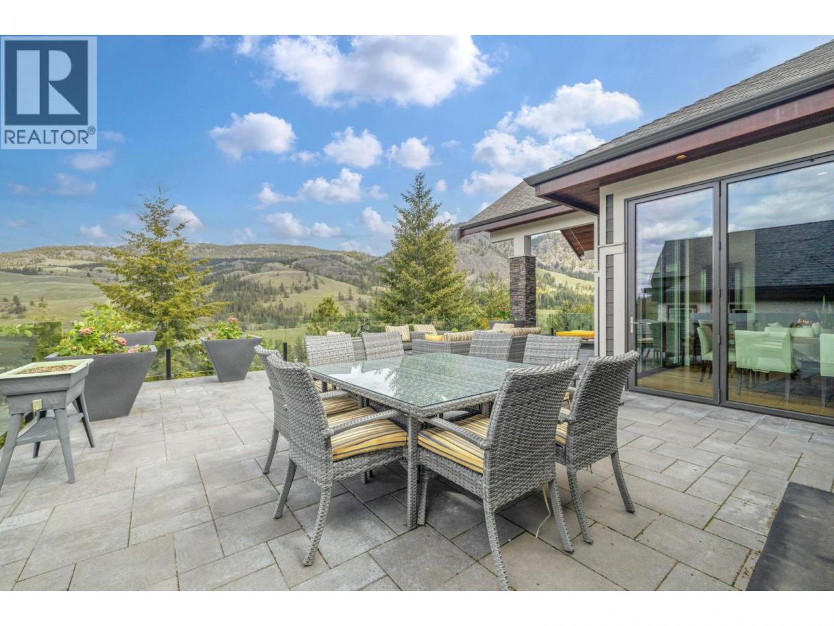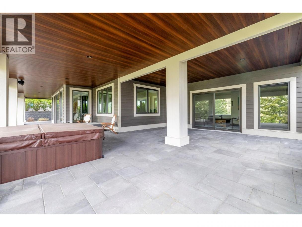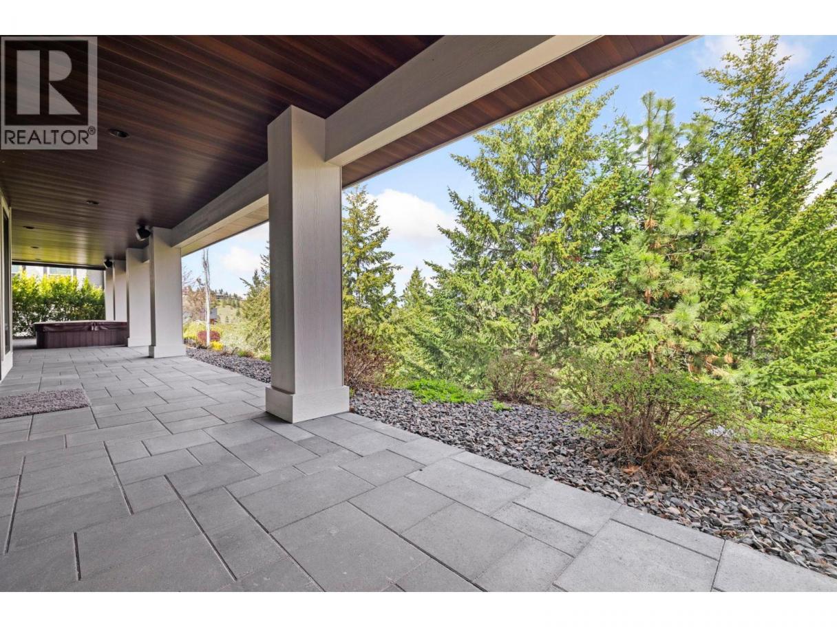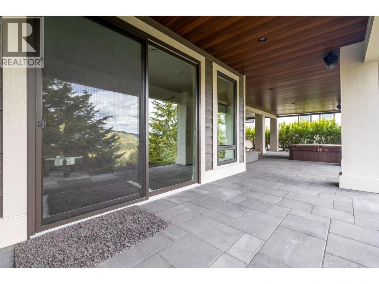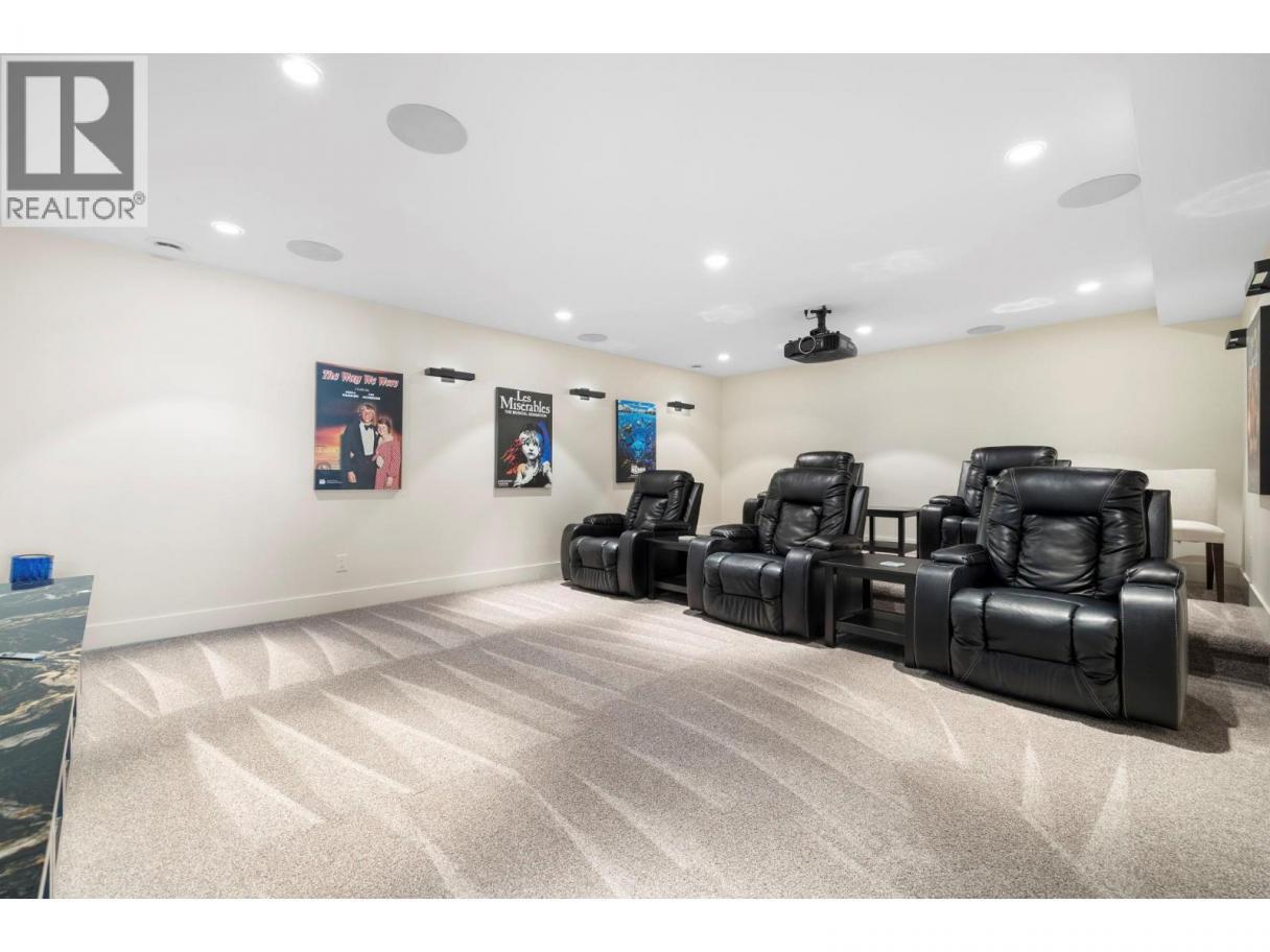 Welcome to this exquisite luxury home with stunning views of Black Mountain Golf Course and surrounding mountains. This beautifully crafted residence boasts high-end finishes and meticulous attention to detail throughout. Upon entering, you are greeted by a large open floorplan perfect for entertaining. The 9-foot retractable patio doors (with hidden screens), seamlessly blend indoor and outdoor living spaces. The spacious living area features a faux wood vaulted ceiling flowing to a covered deck, perfect for enjoying the stunning views and quiet surroundings. The high-end chef's kitchen features waterfall granite countertops, a large island with breakfast bar, and ample storage space. Equipped with top-of-the-line built-in appliances, and a walk-through pantry, this kitchen is sure to impress. Entertain guests in style with a sound system and wine-tasting room. For movie nights, retreat to the large theater room for an immersive cinematic experience. The luxurious master suite offers a 5-piece ensuite with a steam shower and soaker tub, as well as a huge walk-in closet with granite-topped cabinetry. Unwind on the expansive and secluded covered lower deck, complete with a hot tub, privacy screens and natural views. Located in a quiet and exclusive neighbourhood with local traffic only, this is the perfect retreat for those seeking luxury and tranquillity. Don't miss your opportunity to own this extraordinary property. (id:6769)