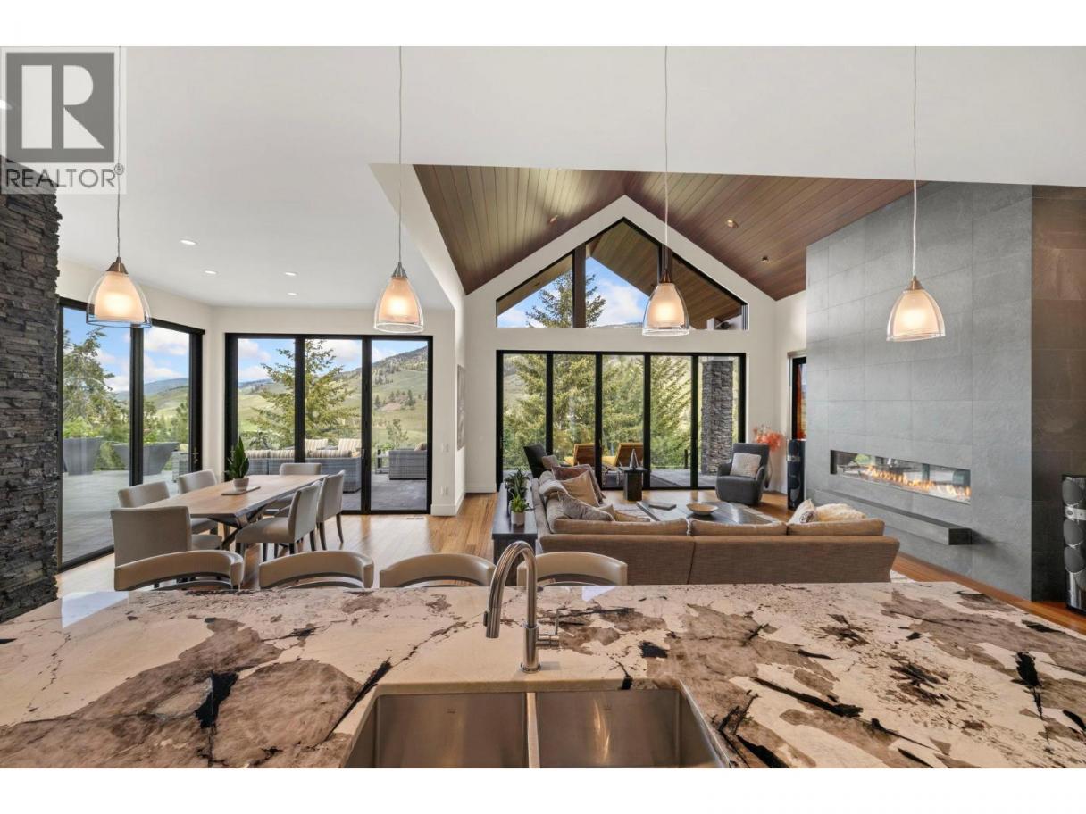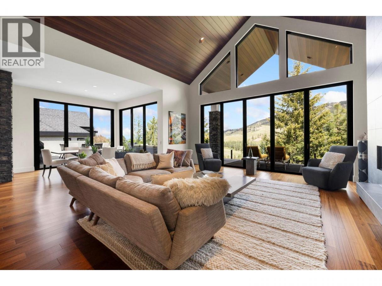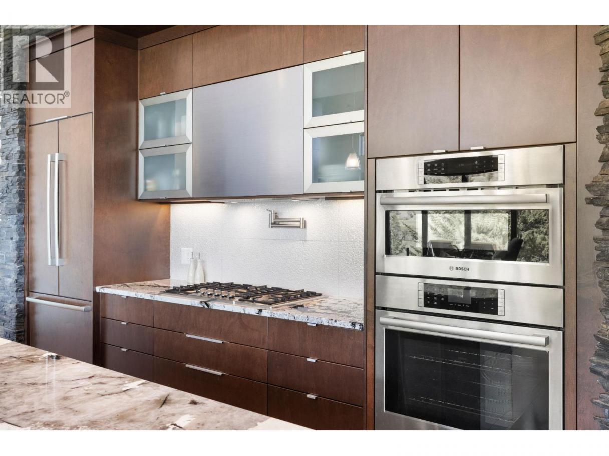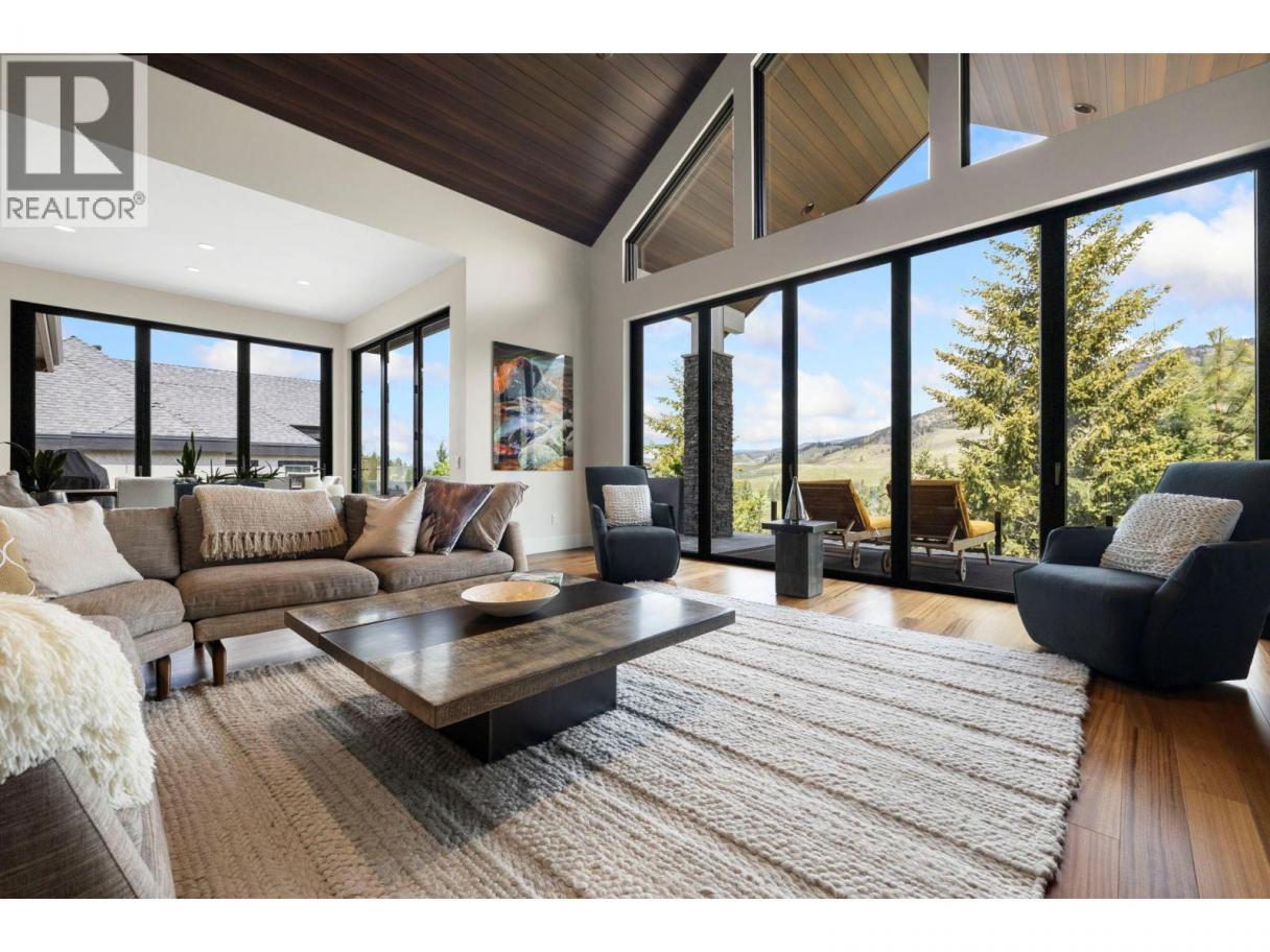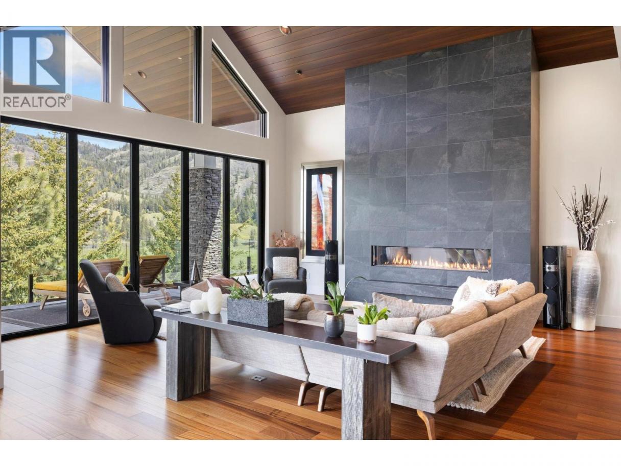 Welcome to this exquisite luxury home with stunning views of Black Mountain Golf Course and surrounding mountains. This beautifully crafted residence boasts high-end finishes and meticulous attention to detail throughout. Upon entering, you are greeted by a large open floorplan perfect for entertaining. The 9-foot retractable patio doors (with hidden screens), seamlessly blend indoor and outdoor living spaces. The spacious living area features a faux wood vaulted ceiling flowing to a covered deck, perfect for enjoying the stunning views and quiet surroundings. The high-end chef's kitchen features waterfall granite countertops, a large island with breakfast bar, and ample storage space. Equipped with top-of-the-line built-in appliances, and a walk-through pantry, this kitchen is sure to impress. Entertain guests in style with a sound system and wine-tasting room. For movie nights, retreat to the large theater room for an immersive cinematic experience. The luxurious master suite offers a 5-piece ensuite with a steam shower and soaker tub, as well as a huge walk-in closet with granite-topped cabinetry. Unwind on the expansive and secluded covered lower deck, complete with a hot tub, privacy screens and natural views. Located in a quiet and exclusive neighbourhood with local traffic only, this is the perfect retreat for those seeking luxury and tranquillity. Don't miss your opportunity to own this extraordinary property. (id:6769)
