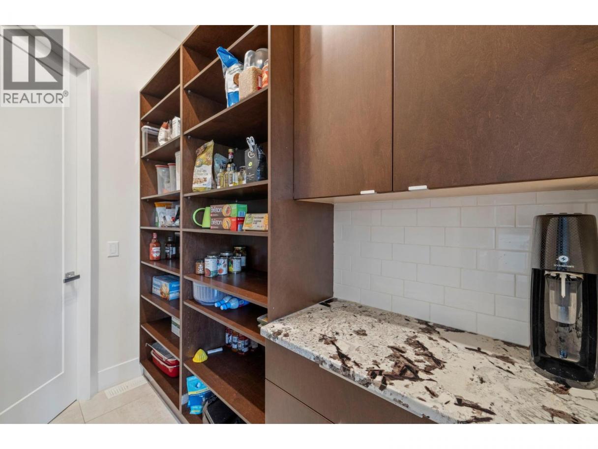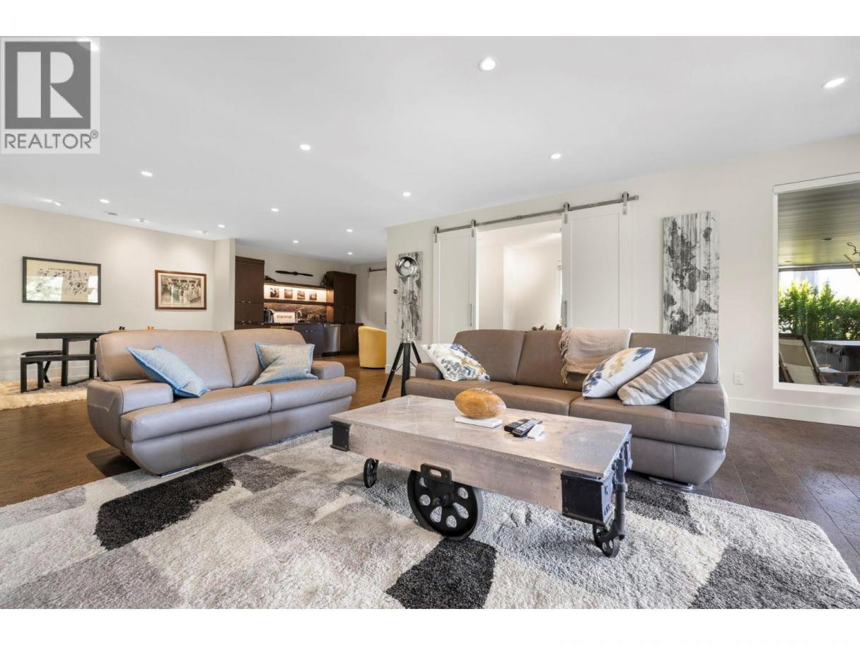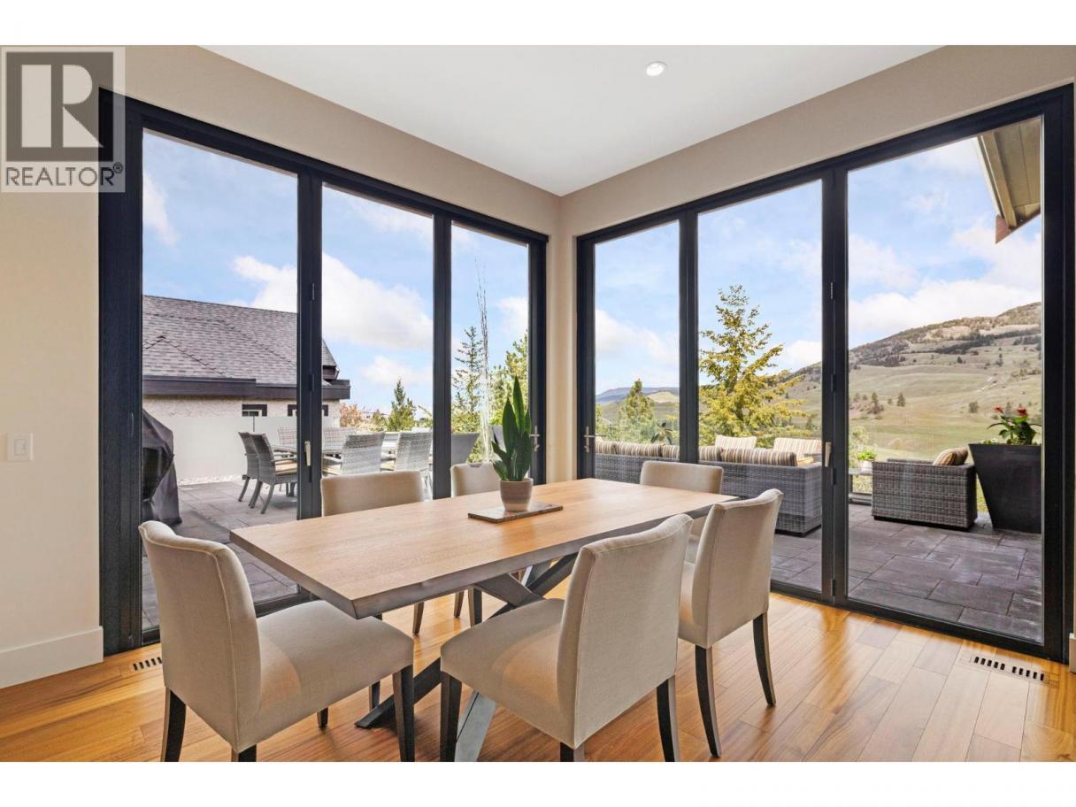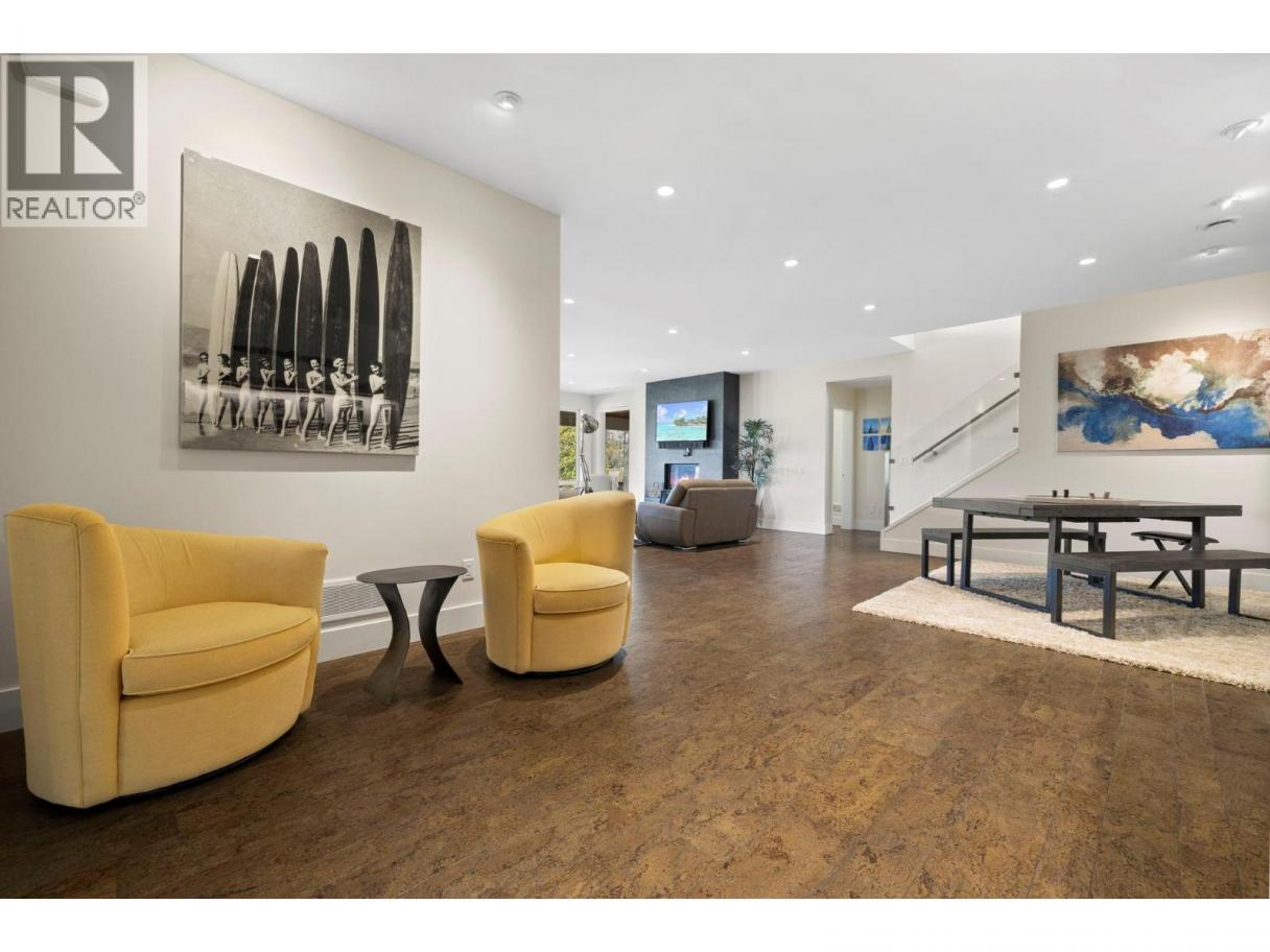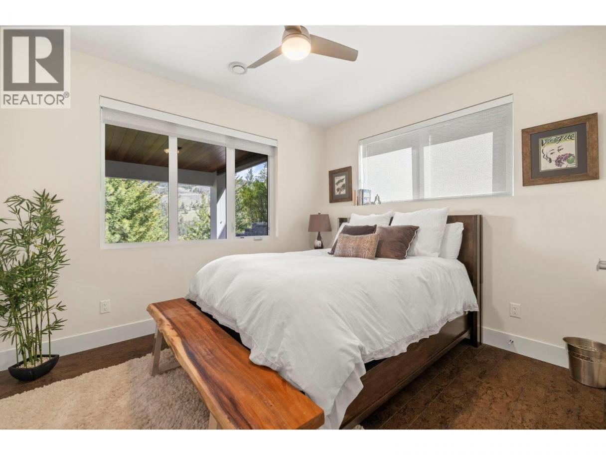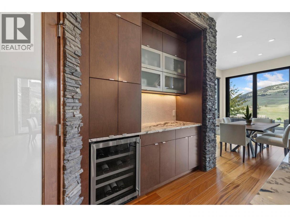 Welcome to this exquisite luxury home with stunning views of Black Mountain Golf Course and surrounding mountains. This beautifully crafted residence boasts high-end finishes and meticulous attention to detail throughout. Upon entering, you are greeted by a large open floorplan perfect for entertaining. The 9-foot retractable patio doors (with hidden screens), seamlessly blend indoor and outdoor living spaces. The spacious living area features a faux wood vaulted ceiling flowing to a covered deck, perfect for enjoying the stunning views and quiet surroundings. The high-end chef's kitchen features waterfall granite countertops, a large island with breakfast bar, and ample storage space. Equipped with top-of-the-line built-in appliances, and a walk-through pantry, this kitchen is sure to impress. Entertain guests in style with a sound system and wine-tasting room. For movie nights, retreat to the large theater room for an immersive cinematic experience. The luxurious master suite offers a 5-piece ensuite with a steam shower and soaker tub, as well as a huge walk-in closet with granite-topped cabinetry. Unwind on the expansive and secluded covered lower deck, complete with a hot tub, privacy screens and natural views. Located in a quiet and exclusive neighbourhood with local traffic only, this is the perfect retreat for those seeking luxury and tranquillity. Don't miss your opportunity to own this extraordinary property. (id:6769)