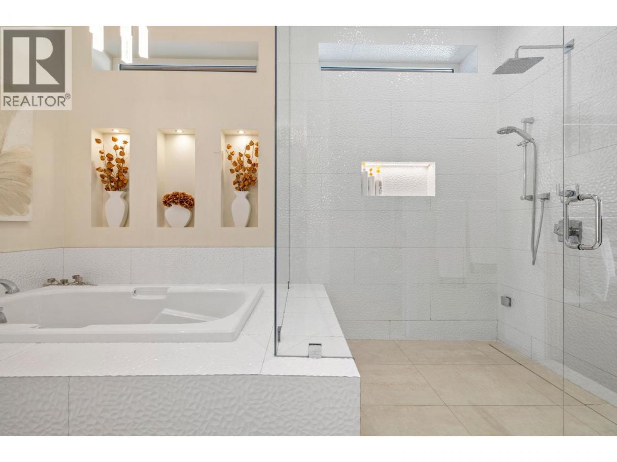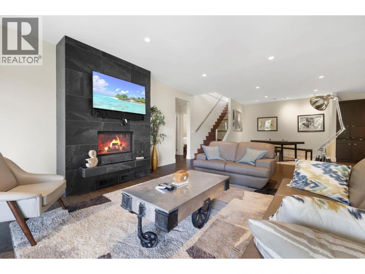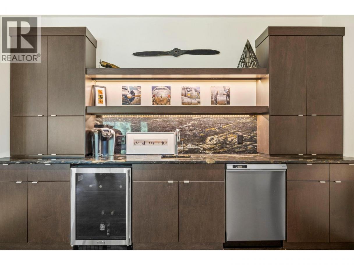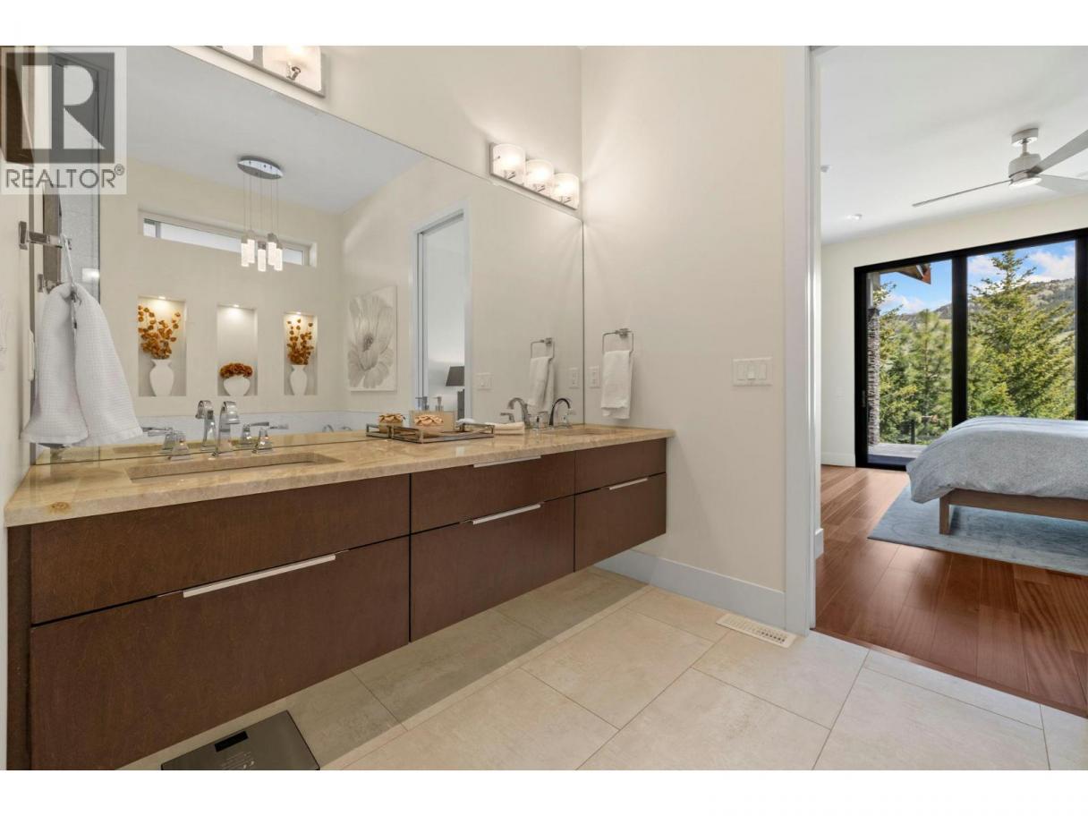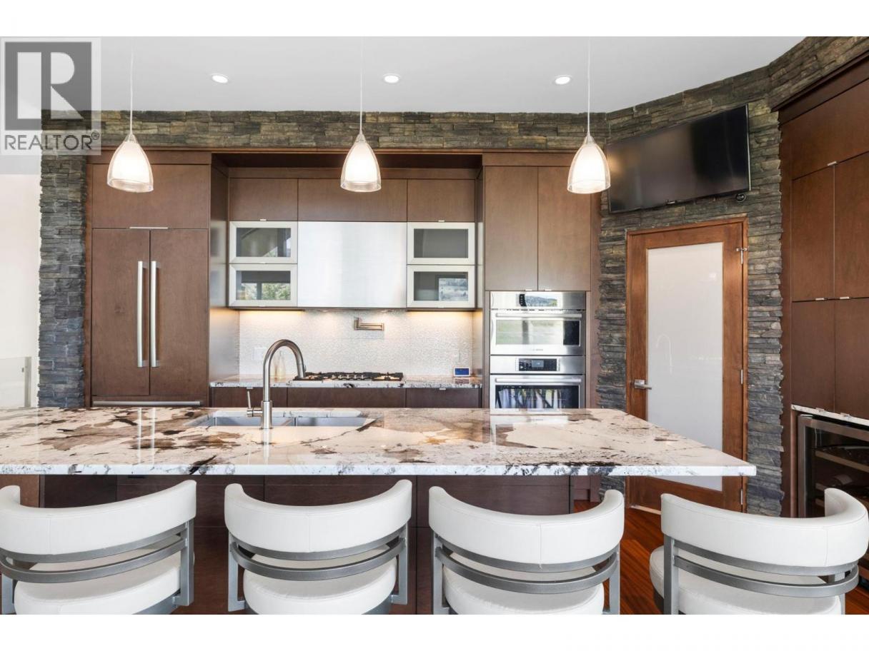 Welcome to this exquisite luxury home with stunning views of Black Mountain Golf Course and surrounding mountains. This beautifully crafted residence boasts high-end finishes and meticulous attention to detail throughout. Upon entering, you are greeted by a large open floorplan perfect for entertaining. The 9-foot retractable patio doors (with hidden screens), seamlessly blend indoor and outdoor living spaces. The spacious living area features a faux wood vaulted ceiling flowing to a covered deck, perfect for enjoying the stunning views and quiet surroundings. The high-end chef's kitchen features waterfall granite countertops, a large island with breakfast bar, and ample storage space. Equipped with top-of-the-line built-in appliances, and a walk-through pantry, this kitchen is sure to impress. Entertain guests in style with a sound system and wine-tasting room. For movie nights, retreat to the large theater room for an immersive cinematic experience. The luxurious master suite offers a 5-piece ensuite with a steam shower and soaker tub, as well as a huge walk-in closet with granite-topped cabinetry. Unwind on the expansive and secluded covered lower deck, complete with a hot tub, privacy screens and natural views. Located in a quiet and exclusive neighbourhood with local traffic only, this is the perfect retreat for those seeking luxury and tranquillity. Don't miss your opportunity to own this extraordinary property. (id:6769)