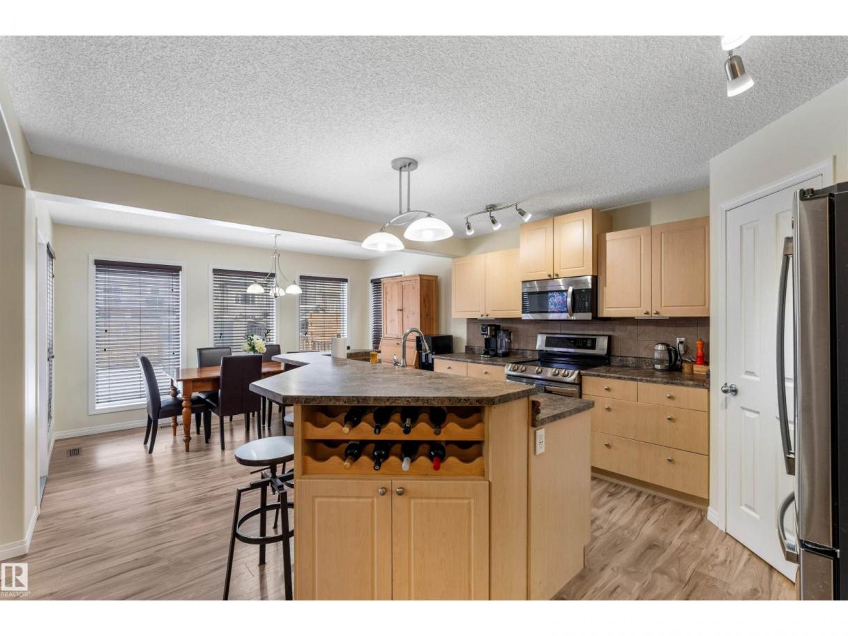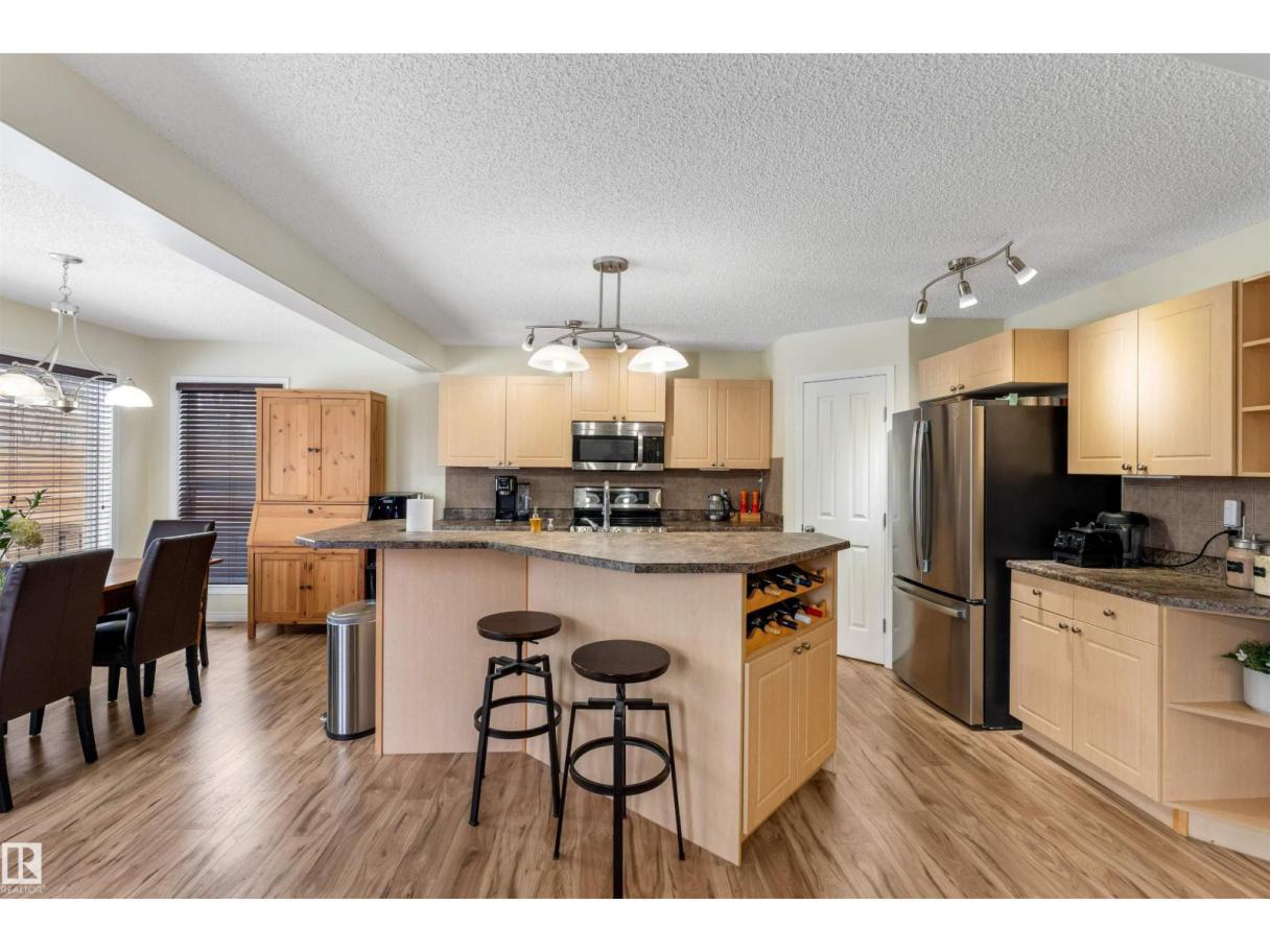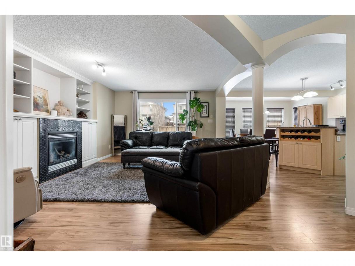 Experience refined living in this extraordinary 2-storey masterpiece, gracefully positioned in prestigious South Terwillegar. A grand foyer welcomes you into an open-concept atmosphere of elegance & comfort. The main living area is a true statement of design, adorned with new laminate flooring, and enhanced by central fireplace & custom shelving. A gourmet kitchen is a culinary sanctuary, featuring raised island with bar seating, scores of cabinetry & counters, ss appliances, & walkthrough pantry, while the dining room is awash in sunlight from surrounding windows. Ascend the staircase to a radiant bonus room and follow brand new plush carpeting to the 3 serene bedrooms serviced by a 4pc main bathroom. The primary suite is complete with walk-in-closet & ensuite, offering both corner tub & stand up shower. A professionally finished basement presents another huge bedroom, 3pc bathroom & rec room. Outside, a freshly landscaped yard backing a walking trail provides an idyllic setting for outdoor lifestyles. (id:6769)