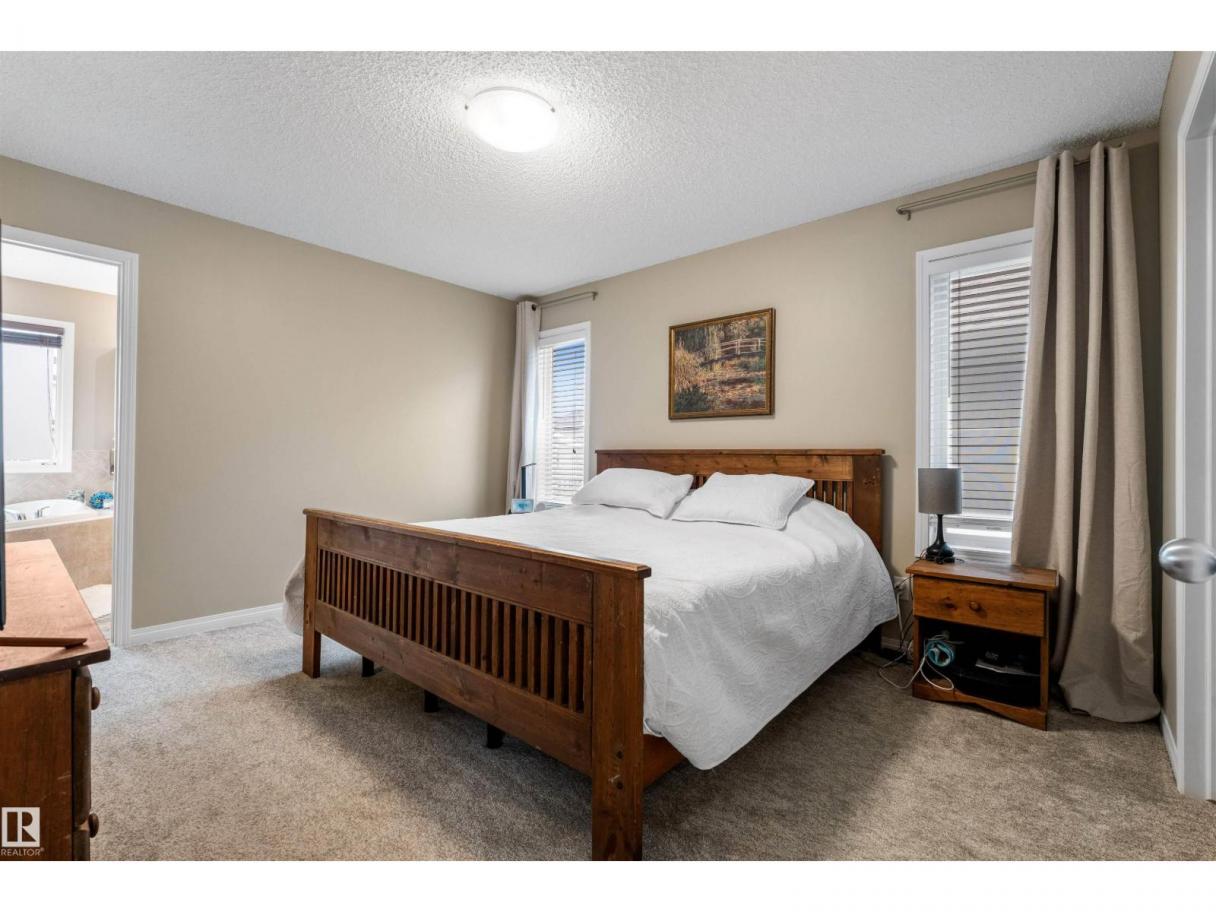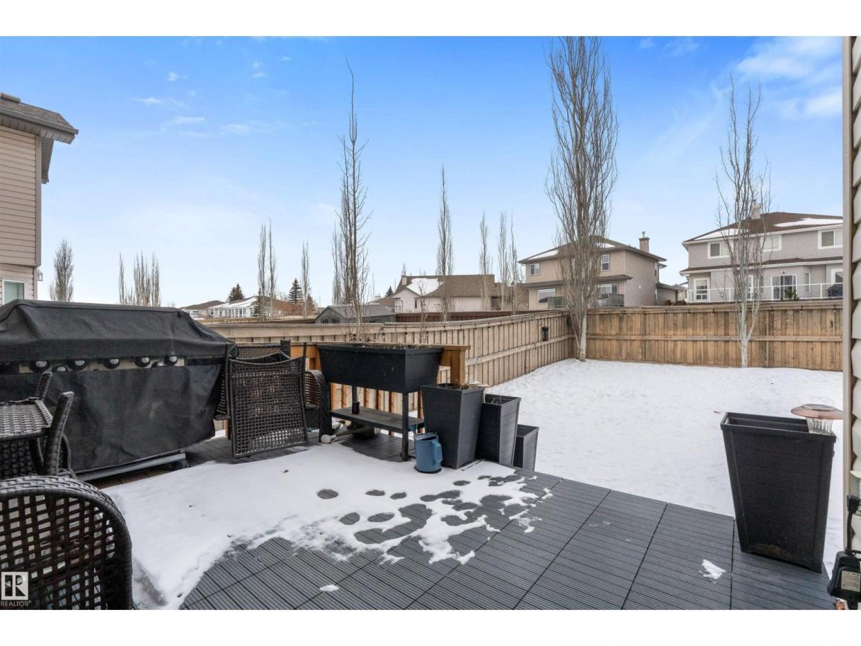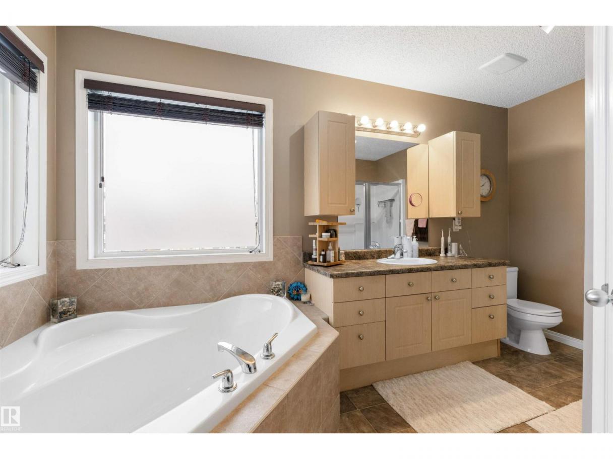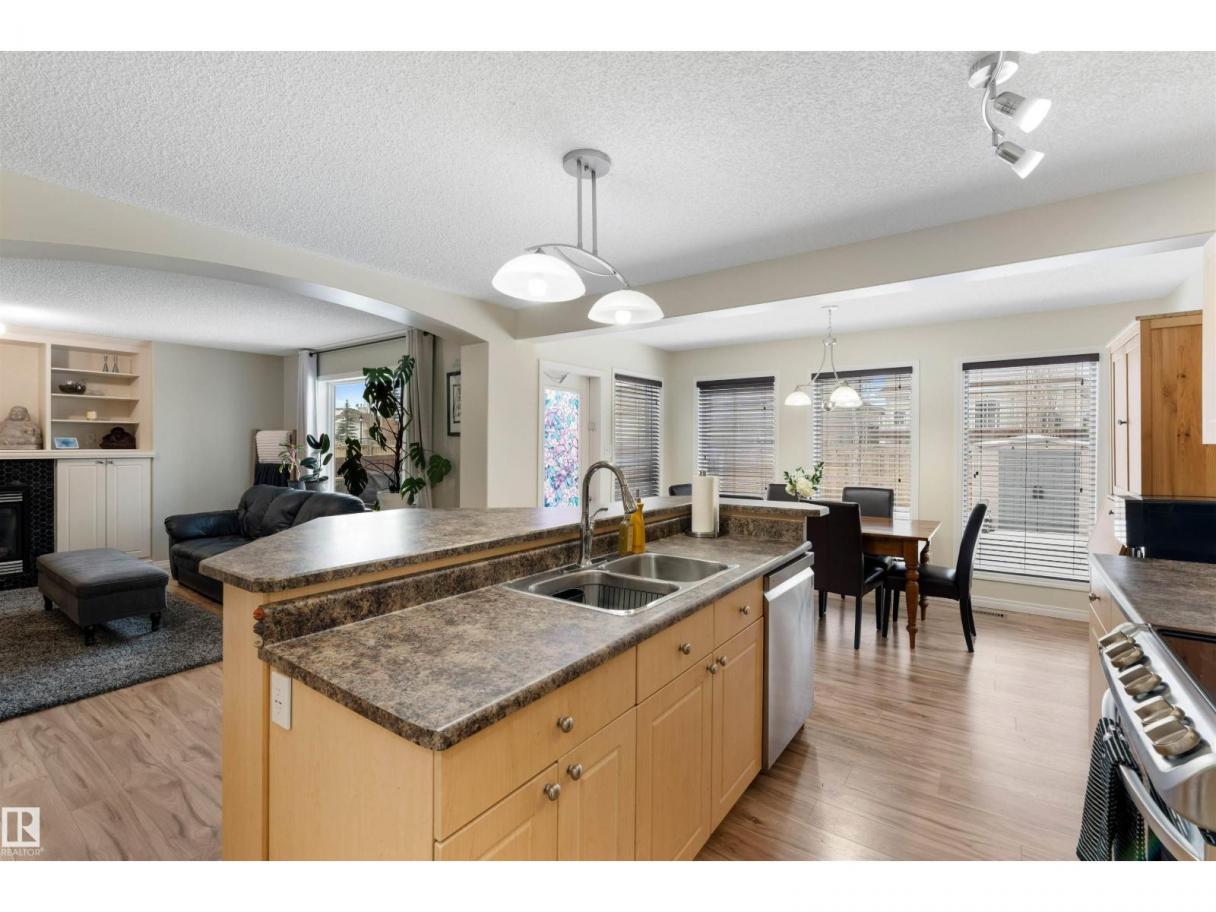 Experience refined living in this extraordinary 2-storey masterpiece, gracefully positioned in prestigious South Terwillegar. A grand foyer welcomes you into an open-concept atmosphere of elegance & comfort. The main living area is a true statement of design, adorned with new laminate flooring, and enhanced by central fireplace & custom shelving. A gourmet kitchen is a culinary sanctuary, featuring raised island with bar seating, scores of cabinetry & counters, ss appliances, & walkthrough pantry, while the dining room is awash in sunlight from surrounding windows. Ascend the staircase to a radiant bonus room and follow brand new plush carpeting to the 3 serene bedrooms serviced by a 4pc main bathroom. The primary suite is complete with walk-in-closet & ensuite, offering both corner tub & stand up shower. A professionally finished basement presents another huge bedroom, 3pc bathroom & rec room. Outside, a freshly landscaped yard backing a walking trail provides an idyllic setting for outdoor lifestyles. (id:6769)
