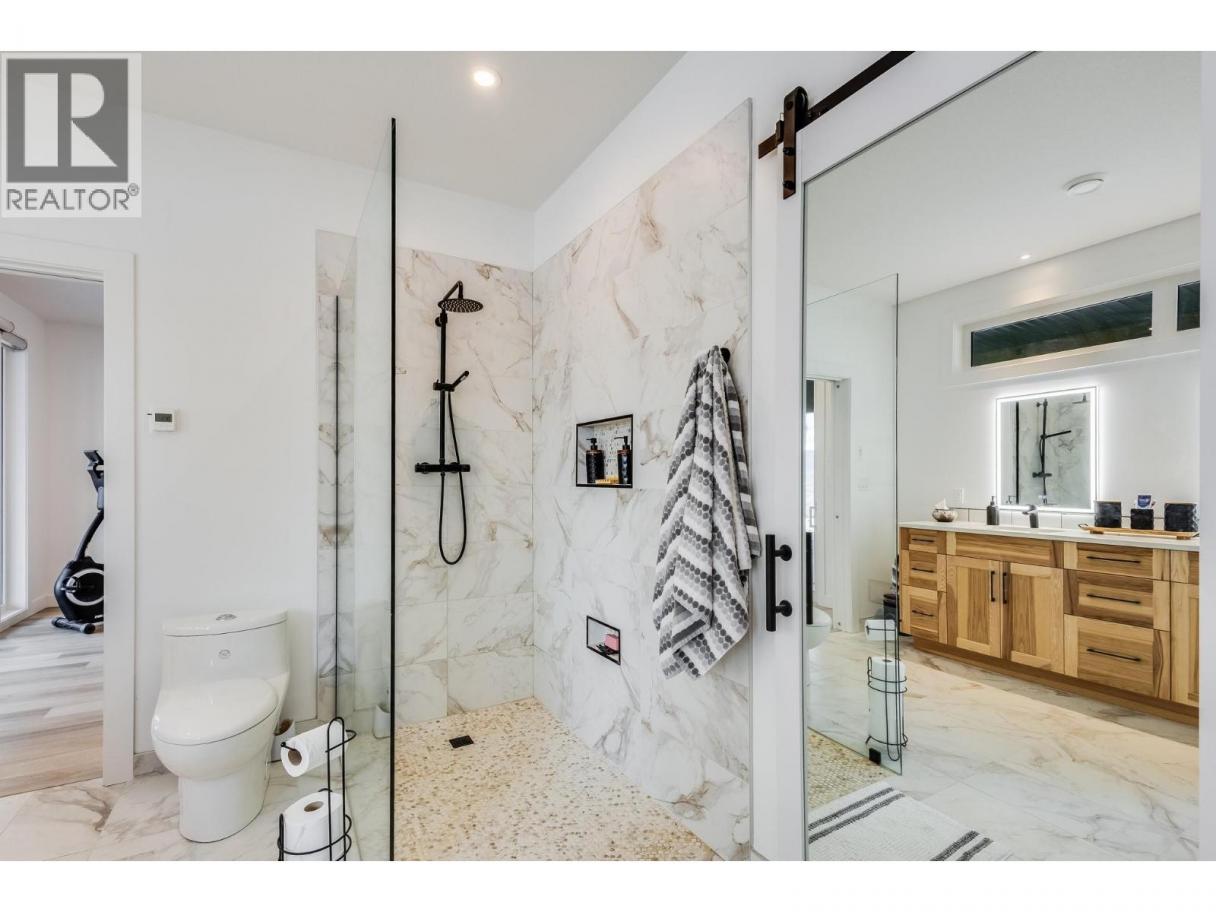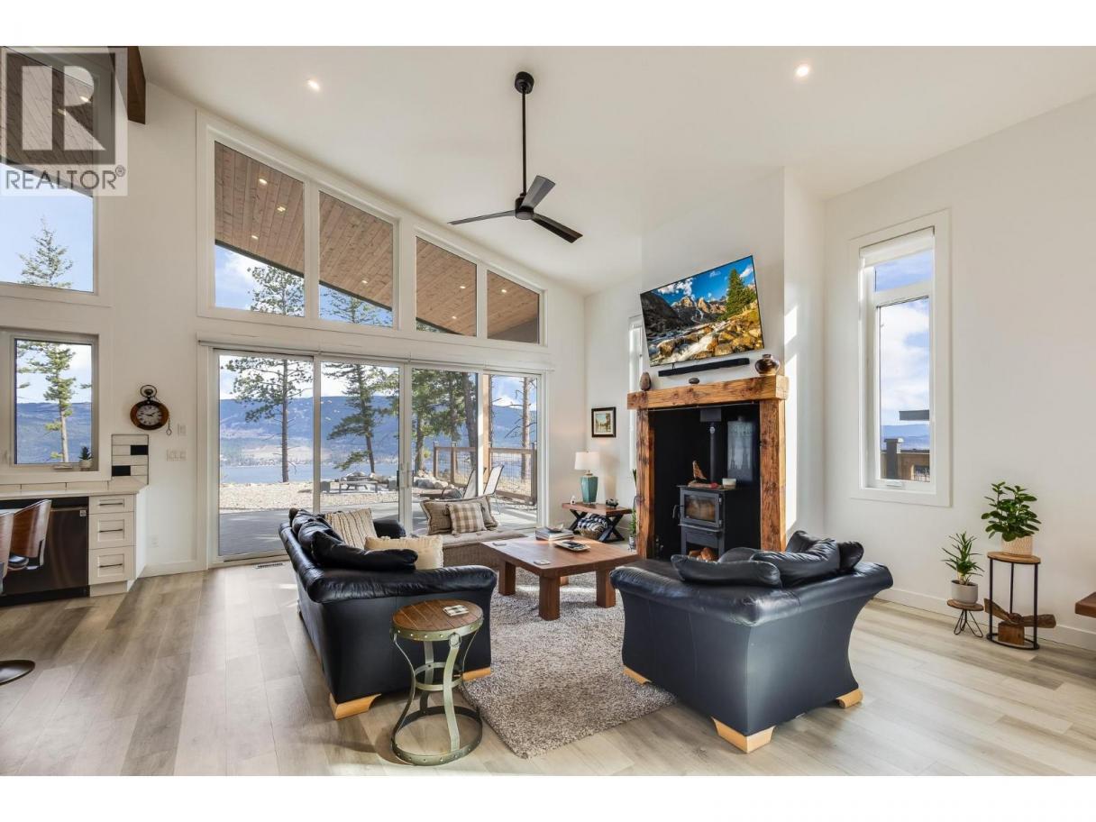 Welcome to 7235 Dunwaters, a custom built 2 storey masterpiece set on .28 acre flat lot with sweeping lake and mountain views that can’t be obstructed and breathtaking from every single room.The moment you step inside,vaulted ceilings and floor-to-ceiling windows immediately impress, flooding the open-concept main level with natural light.The kitchen is a showpiece with white cabinetry,high-end S/S appliances, and an Italian gourmet propane dual oven stove by Bertazzoni,a dream setup for anyone with a passion for cooking. A perfectly placed window over the sink means even dish duty comes with a view.The living room, anchored by a wood-burning fireplace, flows seamlessly onto the expansive deck — ideal for sunset dinners and weekend entertaining.The primary suite a spacious retreat including a stunning 5-piece spa like ensuite and a walk-in closet designed to impress. Upstairs there are two additional beds and one bath. A bonus lofted area overlooking the main level that offers a light-filled space perfect for a home office or reading nook.Comfort meets efficiency with hydronic in-floor heating throughout the entire ground floor. Even the oversized triple garage is equipped with heated floors and independent climate control.The flat lot provides endless parking, plus a motorhome hook-up rough-in and a sani-dump connection to the home’s septic system — designed with convenience in mind.Luxury, functionality, and forever views — all in one incredible package. (id:6769)