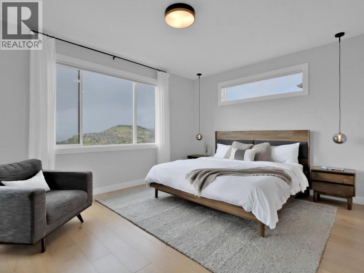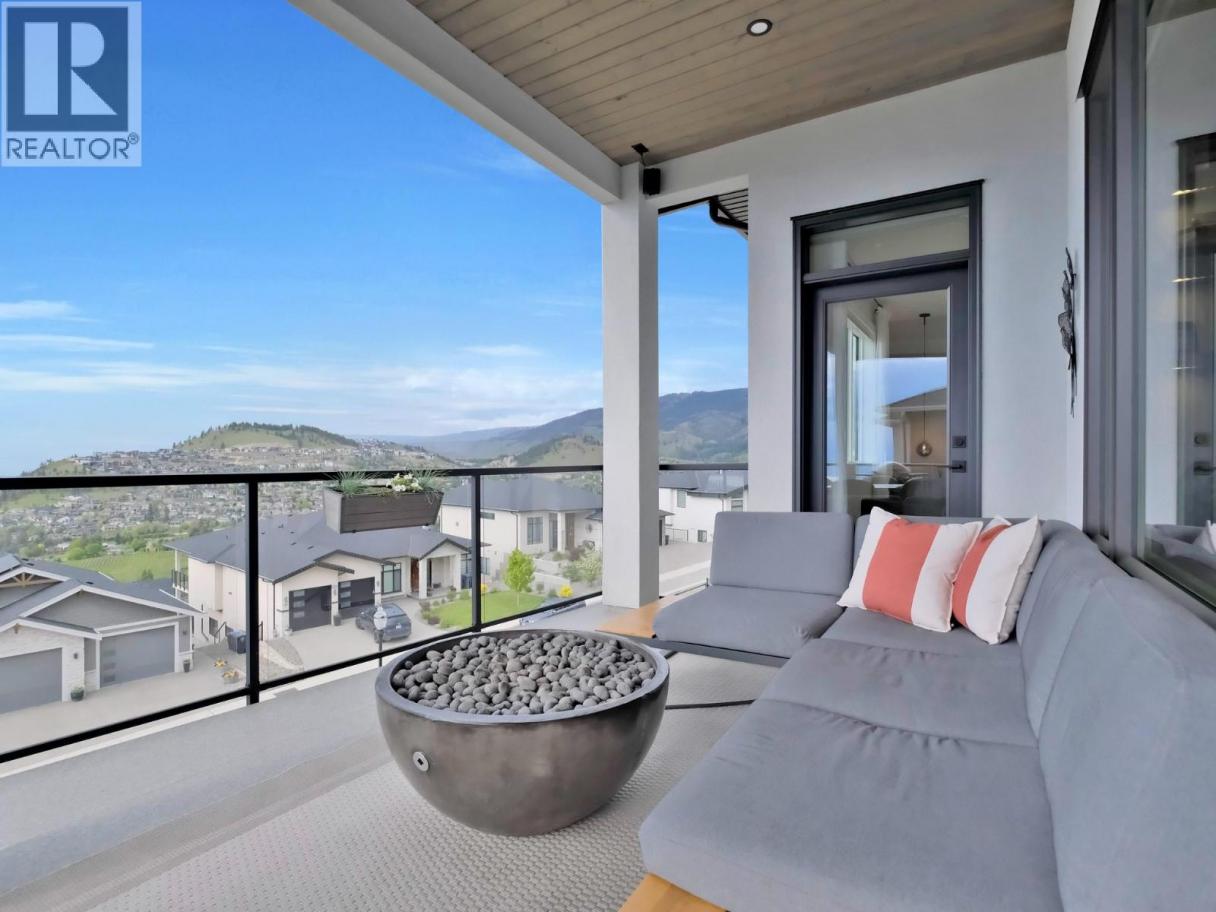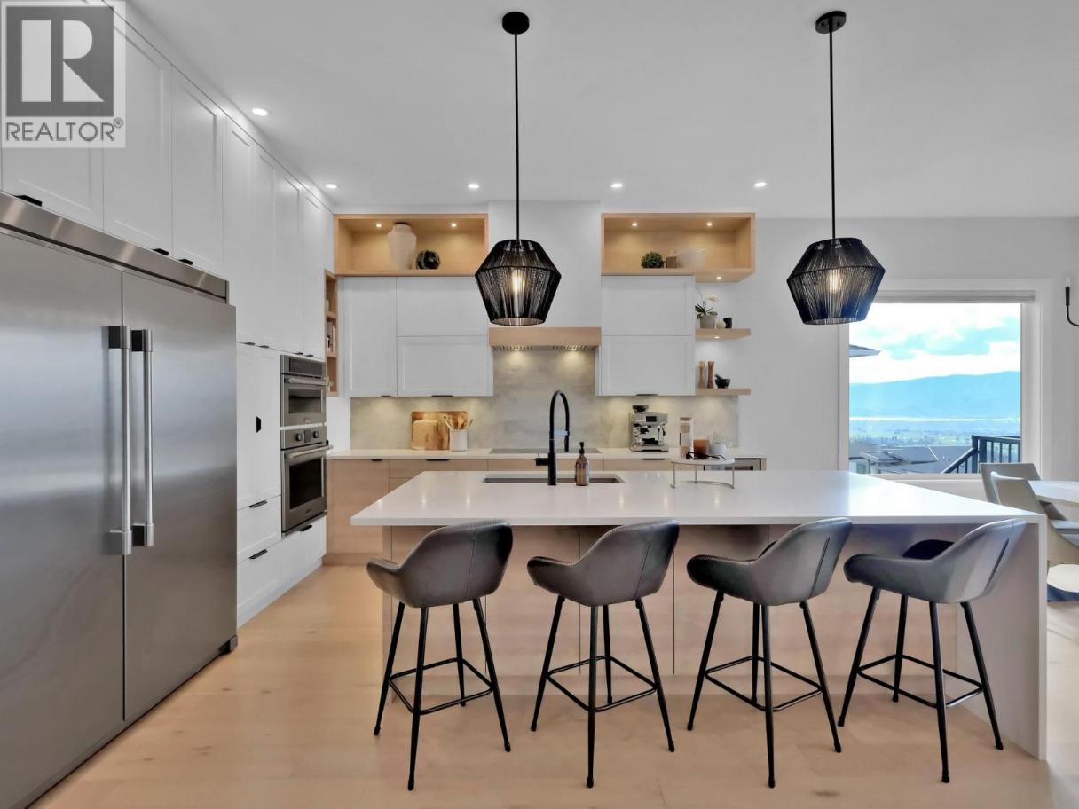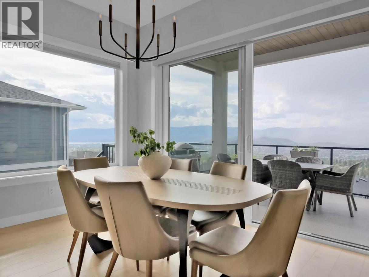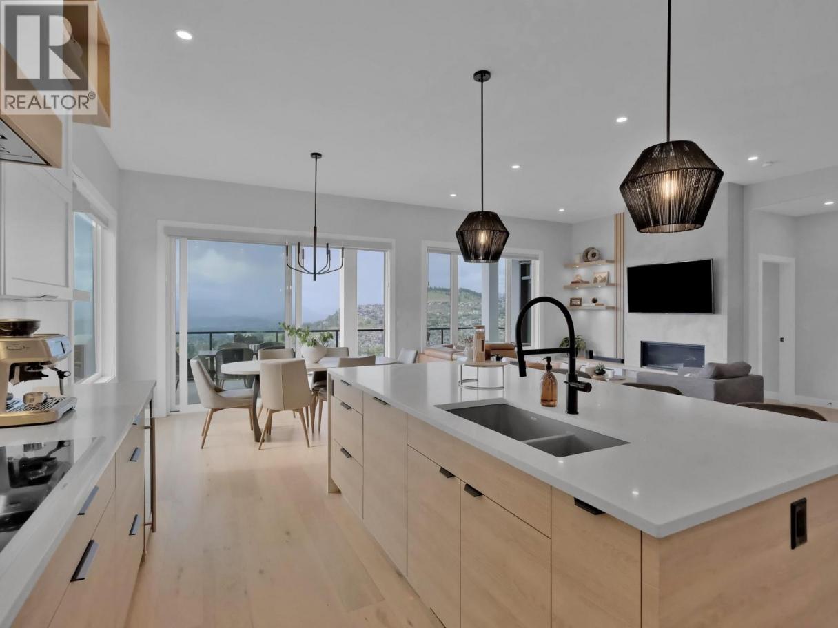 Experience this contemporary custom home in Kelowna, boasting breathtaking panoramic views of the city, Okanagan Lake, and the majestic mountains. A unique feature is the rare extra RV parking, a valuable asset in the neighborhood. Inside, a grand 13-foot foyer welcomes you, leading to the spacious 10-foot ceilinged living and kitchen areas. The custom kitchen is a chef's delight with quartz countertops, built-in appliances, and custom cabinetry throughout the home. Conveniently located near the entrance is an office with custom cabinetry. Upstairs, the master suite offers a spa-like ensuite with heated floors. The basement provides two bedrooms, two full bathrooms, a family room, and a guest bedroom. A separate one-bedroom legal suite adds versatility. The heated two-car garage includes hot and cold water. Outside, the property is fully fenced for privacy. Enjoy a custom Scandinavian sauna, a relaxing outdoor area, an outdoor shower, and a hot tub, all designed to maximize enjoyment of the stunning Kelowna surroundings. This home seamlessly blends luxurious living with exceptional, sought-after amenities. (id:6769)