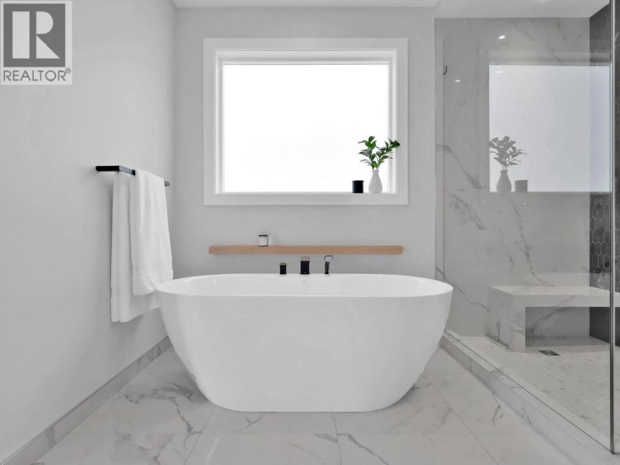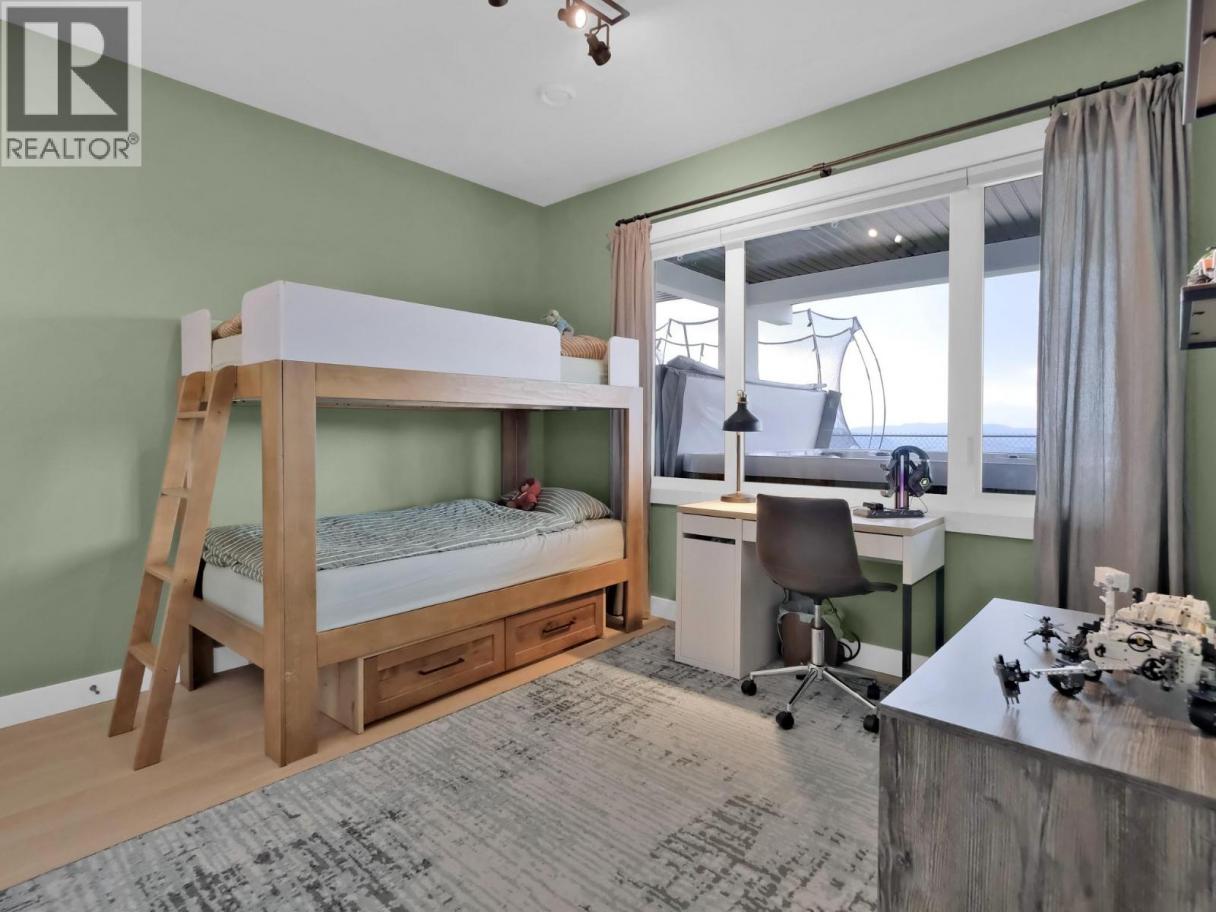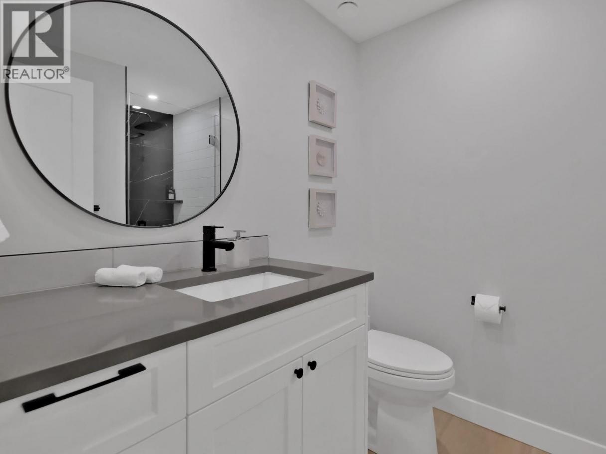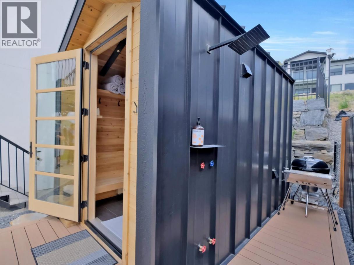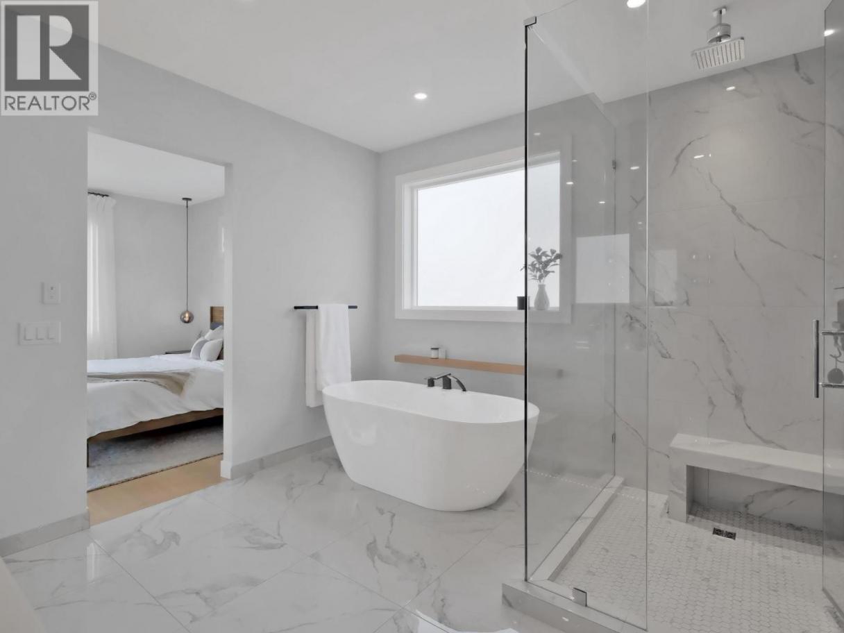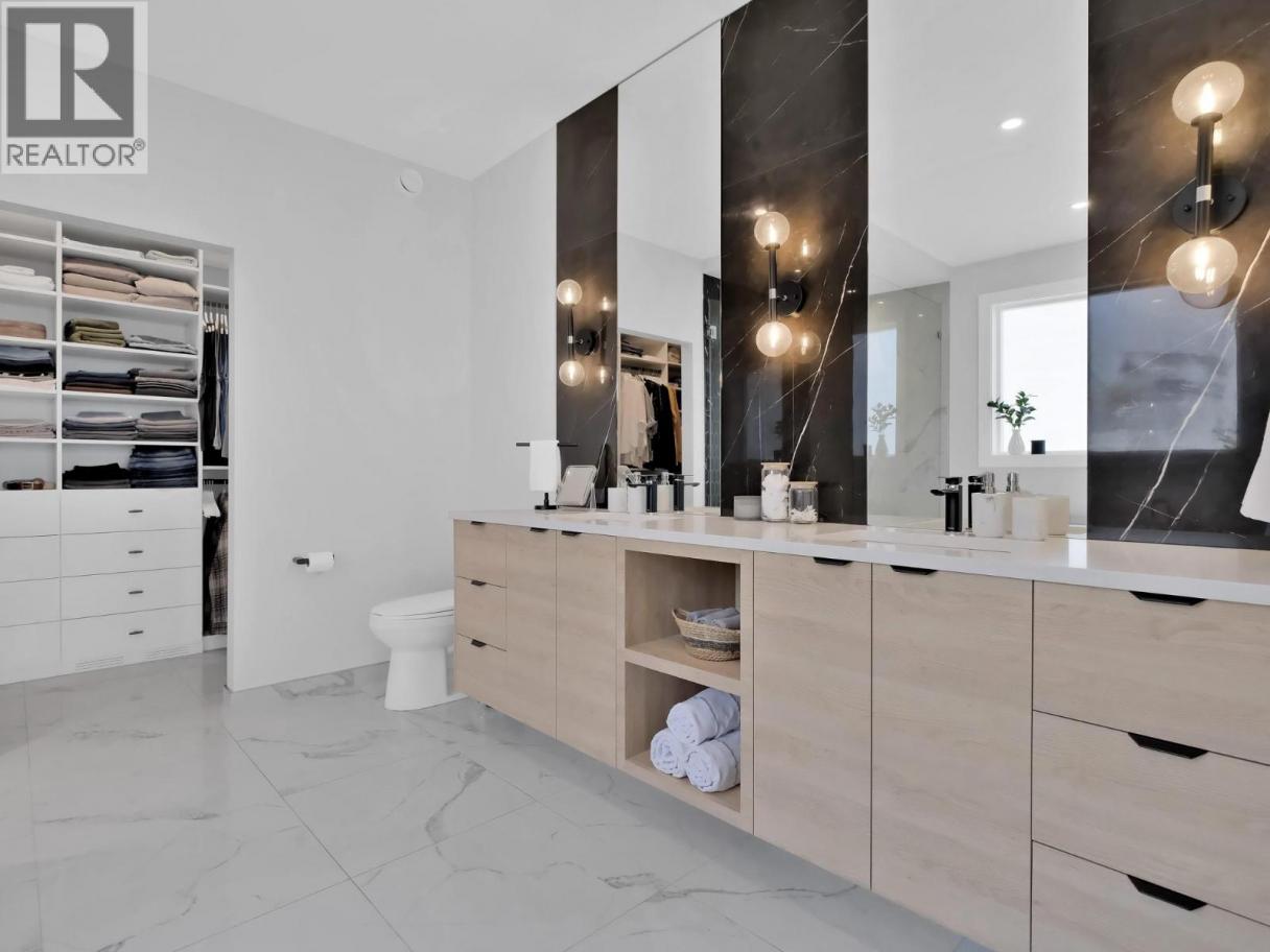 Experience this contemporary custom home in Kelowna, boasting breathtaking panoramic views of the city, Okanagan Lake, and the majestic mountains. A unique feature is the rare extra RV parking, a valuable asset in the neighborhood. Inside, a grand 13-foot foyer welcomes you, leading to the spacious 10-foot ceilinged living and kitchen areas. The custom kitchen is a chef's delight with quartz countertops, built-in appliances, and custom cabinetry throughout the home. Conveniently located near the entrance is an office with custom cabinetry. Upstairs, the master suite offers a spa-like ensuite with heated floors. The basement provides two bedrooms, two full bathrooms, a family room, and a guest bedroom. A separate one-bedroom legal suite adds versatility. The heated two-car garage includes hot and cold water. Outside, the property is fully fenced for privacy. Enjoy a custom Scandinavian sauna, a relaxing outdoor area, an outdoor shower, and a hot tub, all designed to maximize enjoyment of the stunning Kelowna surroundings. This home seamlessly blends luxurious living with exceptional, sought-after amenities. (id:6769)