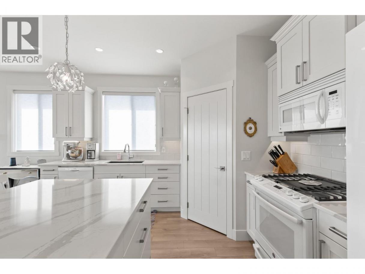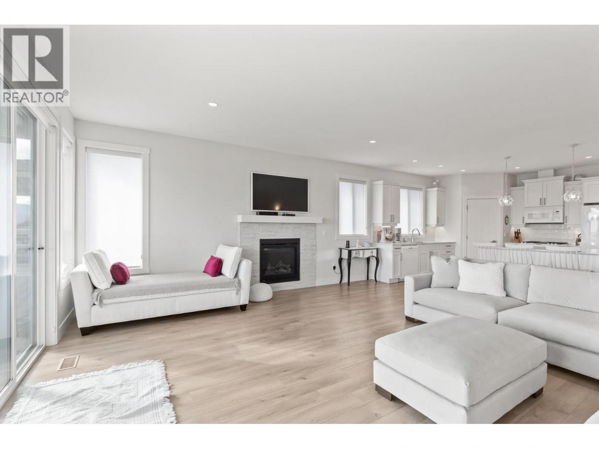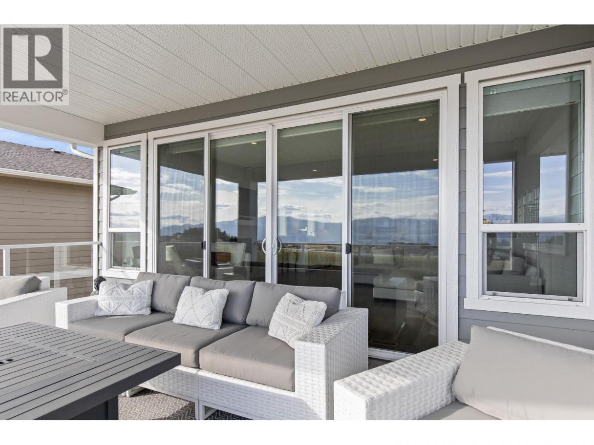 Immerse yourself in the charm of this exquisite French country-style home, boasting a picturesque lake view that extends across from a lush vineyard. This nearly new, immaculately maintained residence offers the perfect blend of luxury and serenity. With six spacious bedrooms and three full bathrooms, it provides ample space for both relaxation and entertaining. The open concept living area glows from natural light and features elegant finishes, including hardwood floors, and a gourmet kitchen with gorgeous appliances, quartz countertops, eat at island, and corner pantry. Step outside to the fully covered, oversized front deck, where you can savour the beauty of the lake and vineyard while relaxing in the evening with a glass of wine. Enjoy barbecuing out back on your second patio while the kids and dogs play in the fully fenced yard. The downstairs rec room offers built in plumbing for a wet bar or second kitchen for an optional 2 bed suite. There are 3 additional bedrooms downstairs plus a full bathroom and laundry room. If you are looking for new construction, this home has been lovingly maintained and shows like new with zero wear and tear! Don't miss the opportunity to make this dream home yours and experience the epitome of comfort and elegance in a truly enchanting setting. Live in beautiful, sought after Tallus Ridge with Hiking, Mountain Biking, Golf, and Shannon Lake Park at your door. (id:6769)