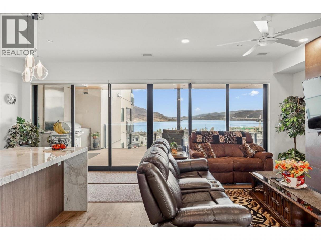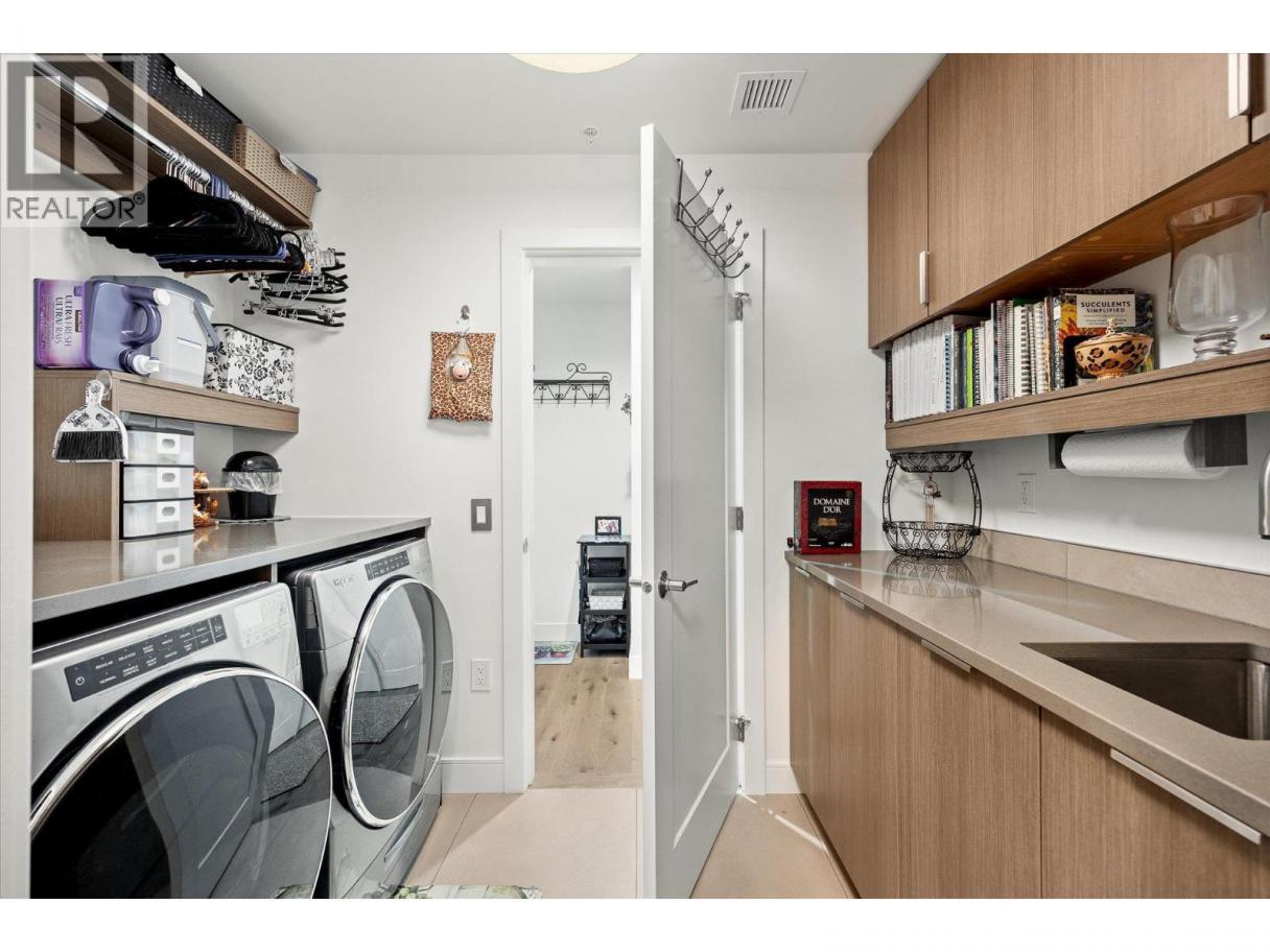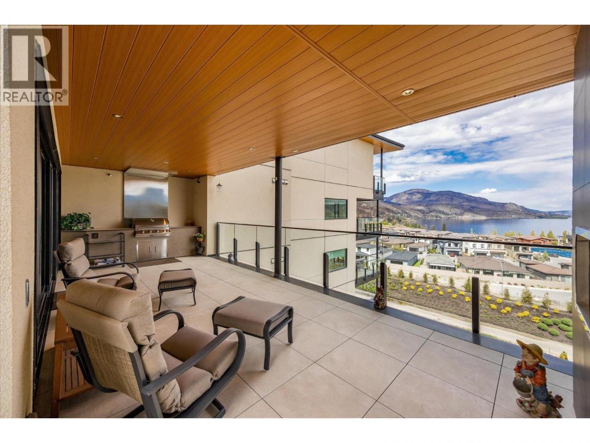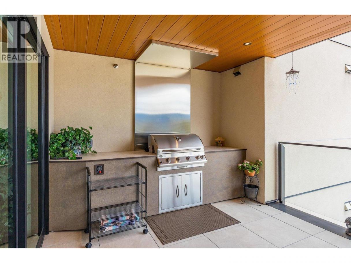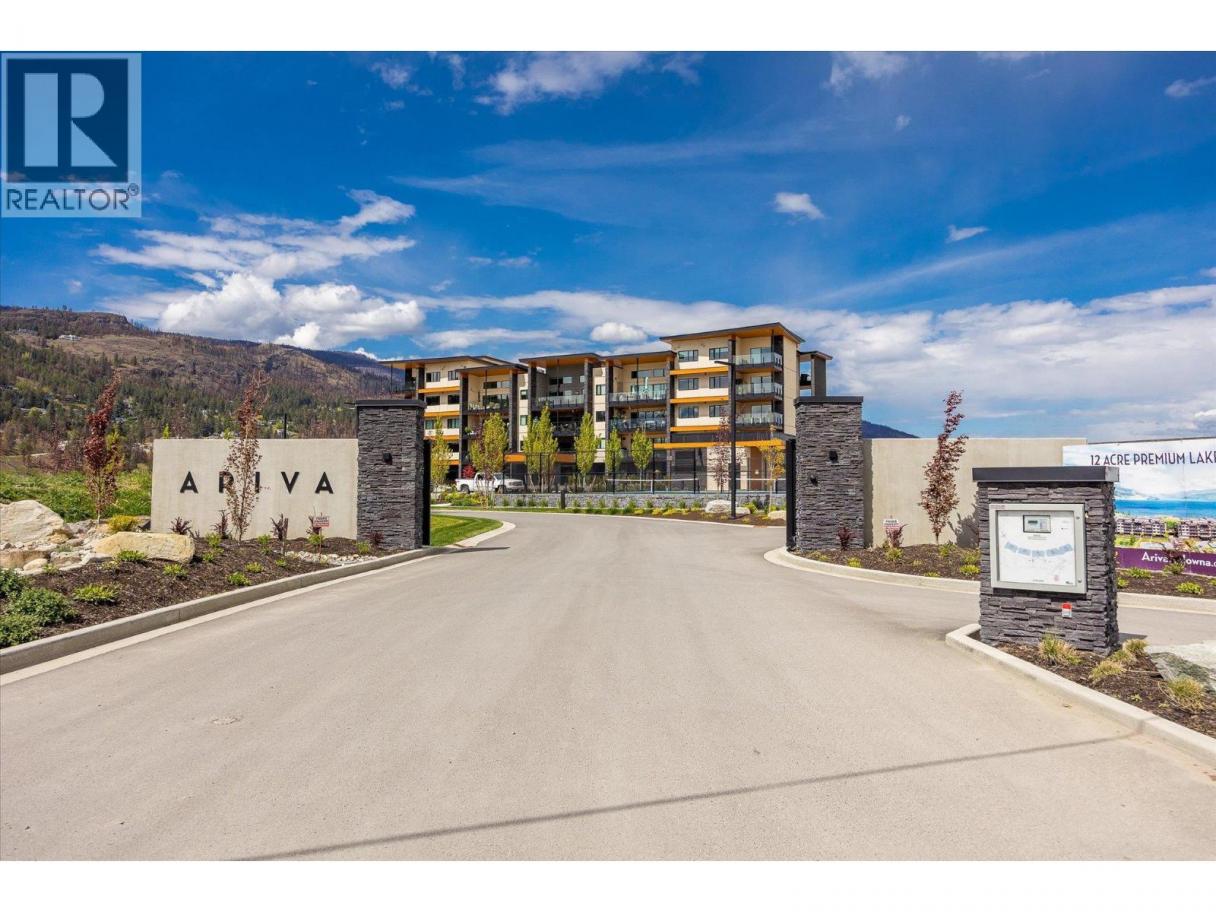 Introducing ARIVA, the pinnacle of luxury living! This beautiful 3-bedroom 2.5-bath 1732 sq.ft. lake view condo is located on the 4th floor, just minutes from Downtown Kelowna. Enjoy breathtaking views of Lake Okanagan and the valley from your private oasis: 483 sq. ft. of outdoor living space between two decks, including a gas BBQ and fireplace for seamless indoor/outdoor entertaining. The second covered deck off the main primary bedroom is ideal for sunset watching. Inside, oak hardwood floors lead you through the great room with a feature gas fireplace. The kitchen impresses with a striking waterfall island countertop, gas stove, slow-close cabinets, and a separate coffee station and wine bar. This stunning end unit boasts two primary bedrooms, each with luxurious ensuite bathrooms and brilliantly customized walk-in closets, plus a smaller 3rd bedroom or den. The primary bedrooms offer dream closets with incredible organization and ample space. Motorized blinds add convenience and the unit is pre-wired for Control 4 Smart Home lighting and audio. ARIVA offers more than just a home; it offers a lifestyle with amenities like pickleball, a seasonal swimming pool with a hot tub and fireplace, a fitness center, yoga studio, steam baths, a residents’ lounge with a bistro, and an incredible lake view terrace. Plus, this unit comes with one premium parking stall with a second premium secure parking stall available for purchase. Don’t miss out on this must-see property! (id:6769)