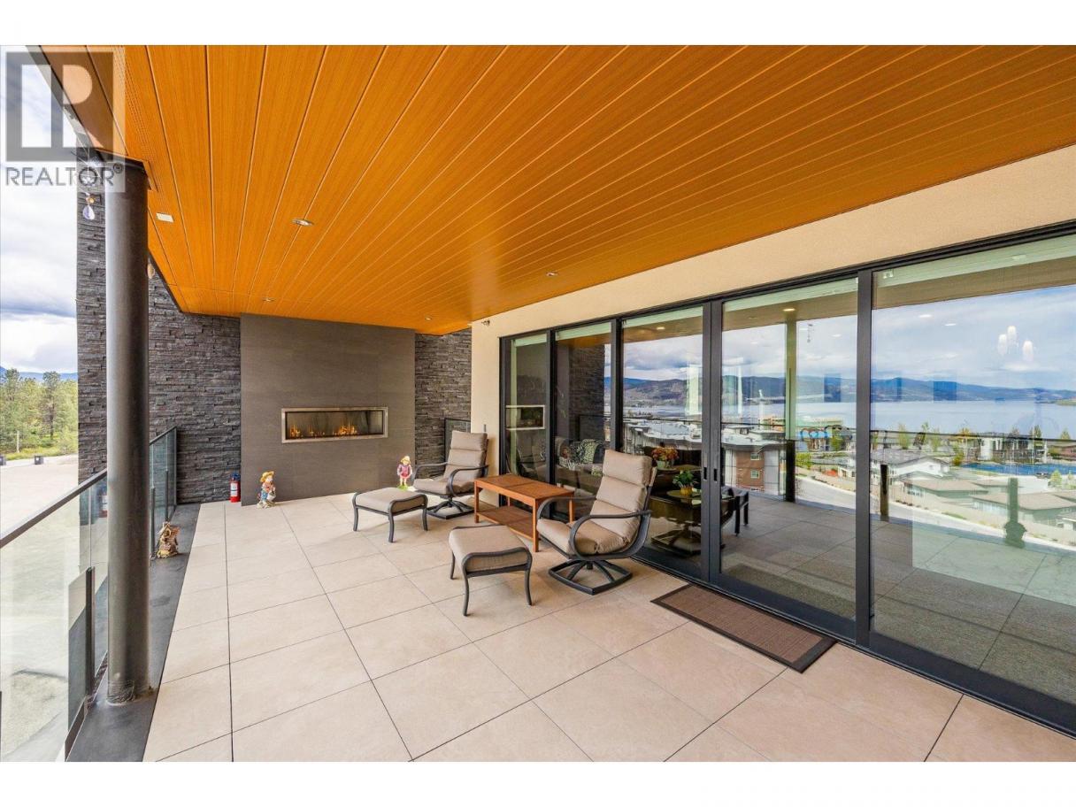 Introducing ARIVA, the pinnacle of luxury living! This beautiful 3br 2.5ba 1,732 SF lake view condo is an end unit on the 4th floor, and is just minutes from Downtown Kelowna. Enjoy breathtaking views of Lake Okanagan, the city, mountains and valley from your private oasis: 483 SF of outdoor living space between 2 decks, with a gas BBQ and fireplace for seamless indoor/outdoor entertaining. The 2nd covered deck off a primary bedroom is ideal for sunset watching. Inside, oak hardwood floors lead you through the great room with a feature gas fireplace. The kitchen impresses with a striking waterfall island countertop, gas stove, soft-close cabinets, and a separate coffee station and wine bar. This stunning home boasts 2 primary bedrooms, each with luxurious ensuite bathroom and brilliantly customized closets, custom shelving for additional storage space, plus a 3rd bedroom or den. The bedrooms offer dream closets with incredible organization and ample space. Motorized blinds add convenience. The unit is pre-wired for Control 4 Smart Home system. ARIVA offers more than just a home; it offers a lifestyle: pickleball, a sports pavilion, a seasonal swimming pool with a hot tub and fireplace, a fitness center, a multi-use room, steam baths, ping pong, a residents' lounge and bistro, and an incredible lake view terrace. This unit comes with one premium parking stall included, with a second premium secure parking stall available for purchase. Don't miss out on this must-see property! (id:6769)