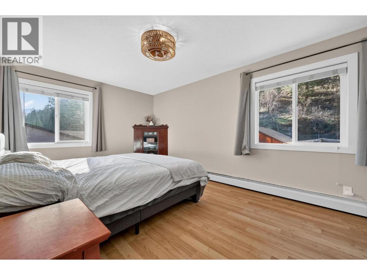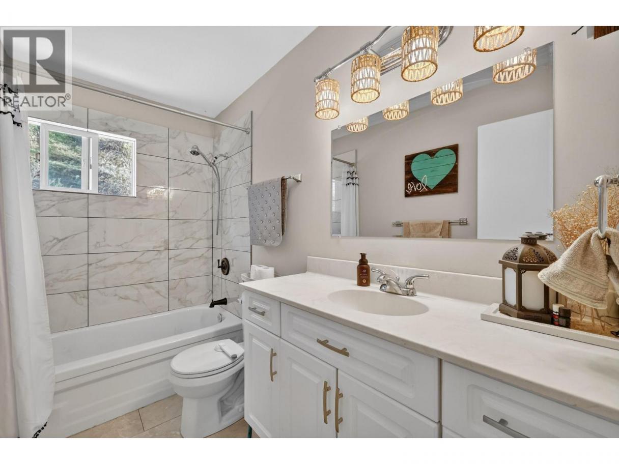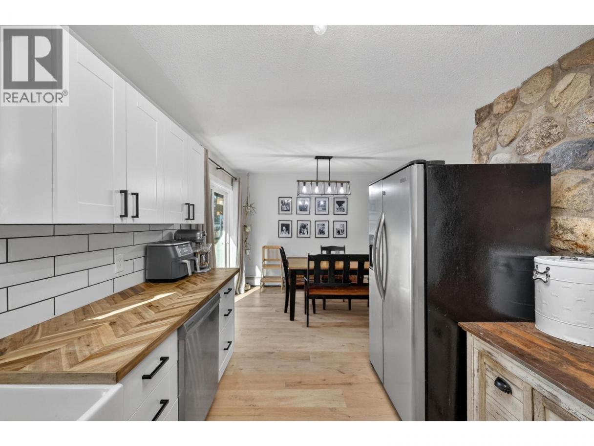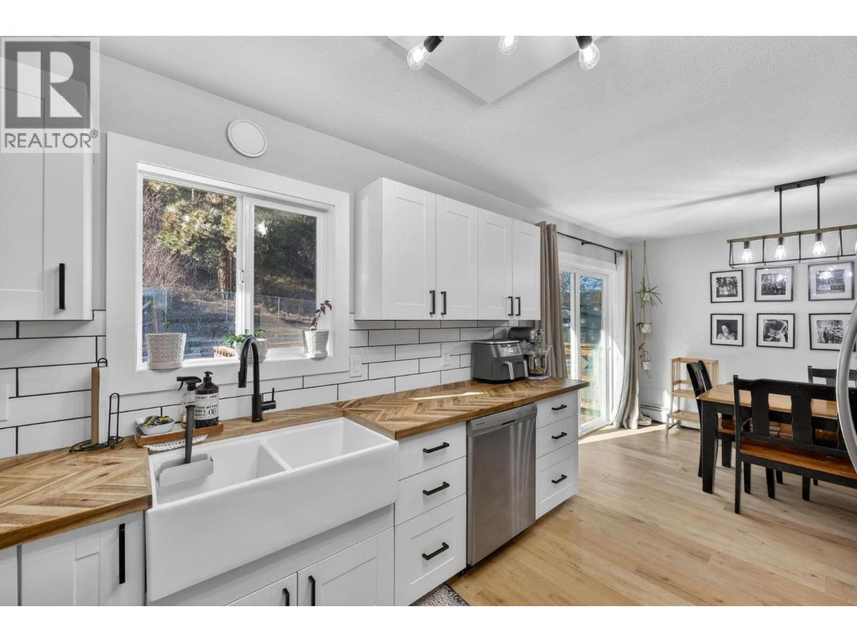 This charming four-level split, four-bedroom home is set in a quiet rural location minutes from Fintry Provincial Park, with nearby waterfalls, hiking trails, historic buildings, public beaches, and a boat launch all within walking distance. The main floor offers an open-concept layout with new laminate flooring on the main and a handsome wood-burning stone fireplace that is the heart of this home. The bright kitchen was renovated in 2025 with new cupboards, counters, and backsplash. Patio doors off the dining area lead to a large deck and a level, fully fenced backyard with low-maintenance landscaping. Upstairs are three spacious bedrooms and a full bathroom. One level down from the main features a large family room perfect for movie nigh or the big game and an updated bathroom with walk-in shower, & a flexible room suitable as a bedroom, office, gym, or playroom. The basement includes an additional bedroom, two large storage rooms, and the laundry/mechanical room. Surprise gym in the converted garage. New septic system. Heating is provided by a wood-burning stove (that the current owners use exclusively for their heating needs) or a boiler with radiant hot water heat. A detached single garage with workshop space & two additional sheds, including one used as a chicken coop, complete the property .If you’ve been dreaming of peaceful living close to nature without sacrificing comfort and style, this property delivers. Measurements approx. please verify if important. (id:6769)