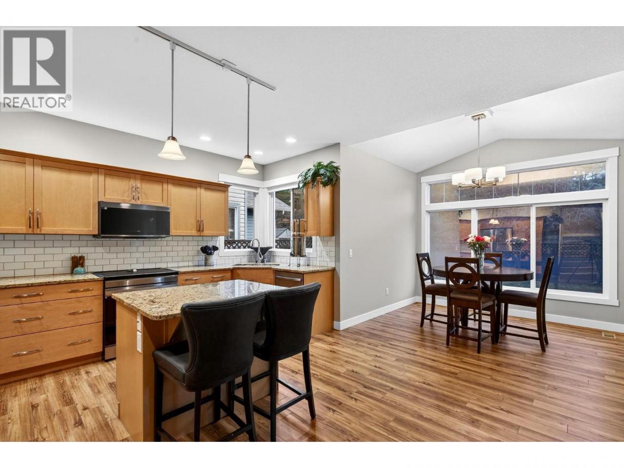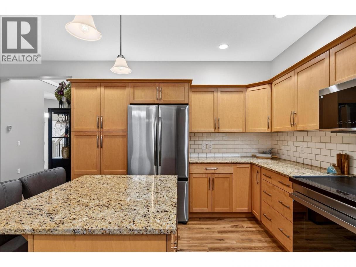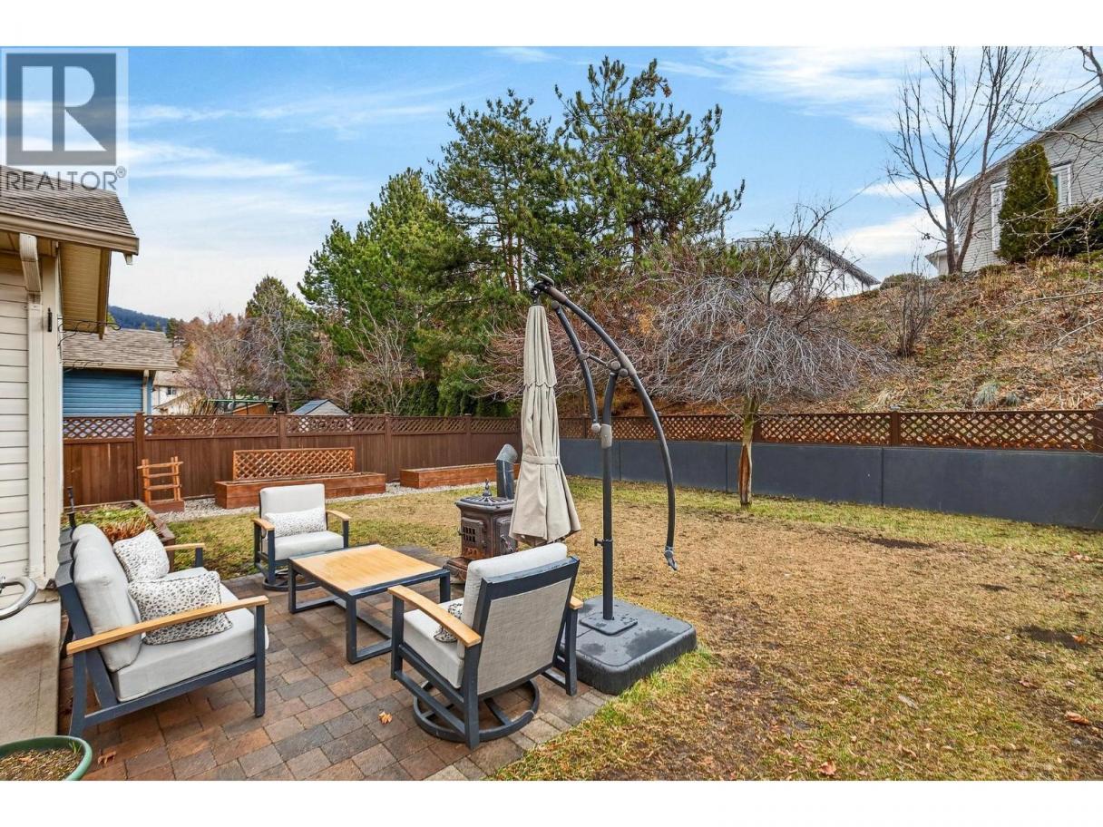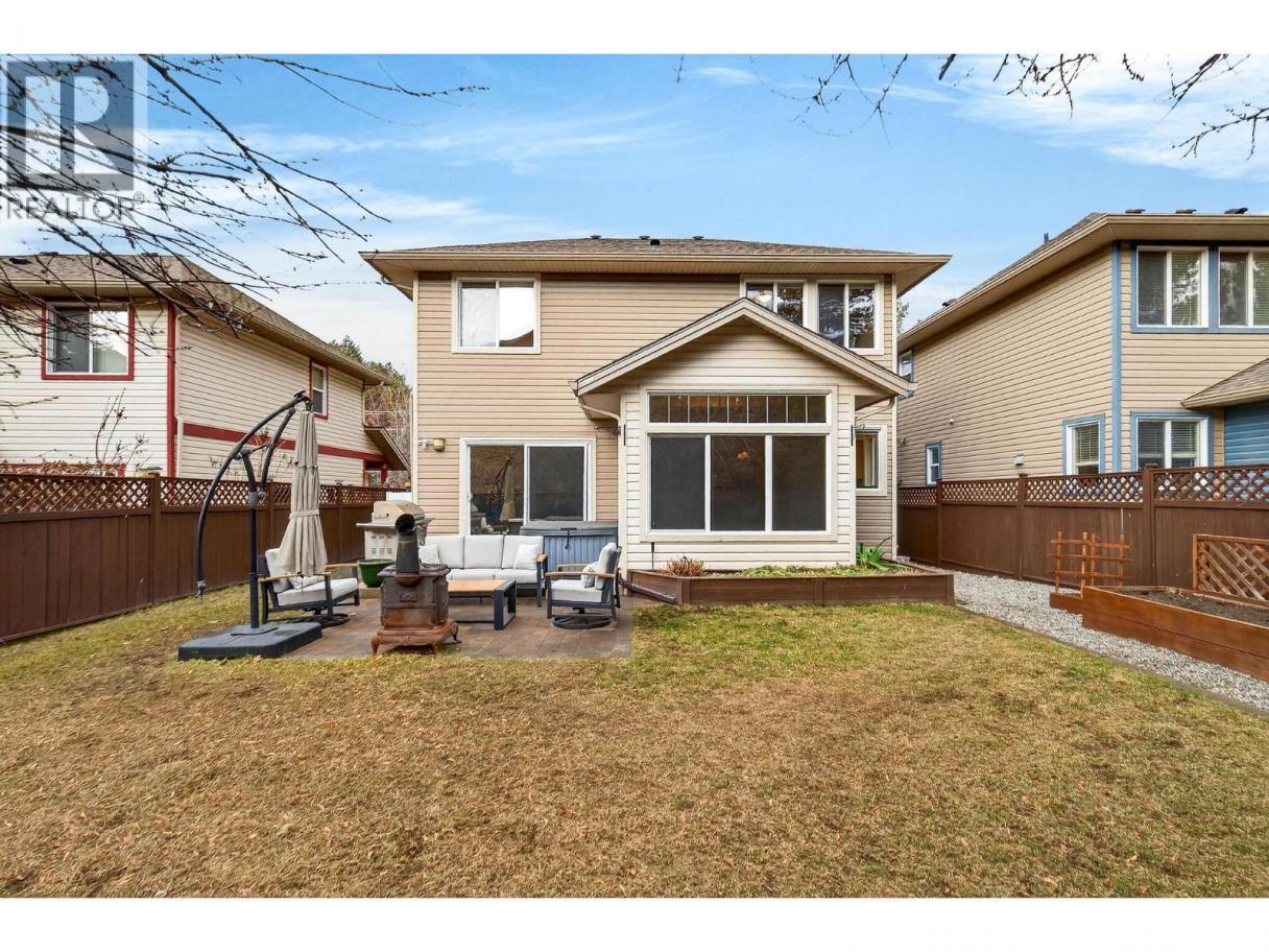 Tucked into the family friendly community of Creekside Park, this 3 bedroom plus office home offers over 2,500 sqft of finished living space on a quiet no through road close to parks and trails. The location is known for its strong sense of community and convenient access to everyday amenities in West Kelowna. The main level features a bright open concept kitchen, dining, and living area with vaulted ceilings and fireplace, flowing naturally to the patio for comfortable outdoor living. The kitchen includes granite countertops and high end brand new appliances. A main floor office adds a flexible workspace. Upstairs are three bedrooms, including a spacious primary suite with tray ceilings, a large walk-in closet, and an ensuite bathroom. The home has been freshly painted and the recently completed basement offers a large recreation room, a new bathroom, and a substantial pantry/storage room. An attached double garage adds convenience. The fenced backyard provides plenty of space for entertaining, pets, or children to play. This home offers the feel of a detached residence, connected only at an exterior shed, while benefiting from strata managed landscaping, snow removal, and exterior maintenance. This is an exceptionally well maintained home in a welcoming and connected community. (id:6769)