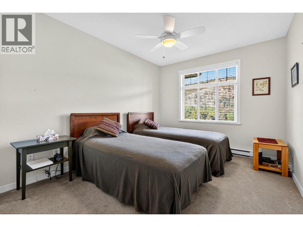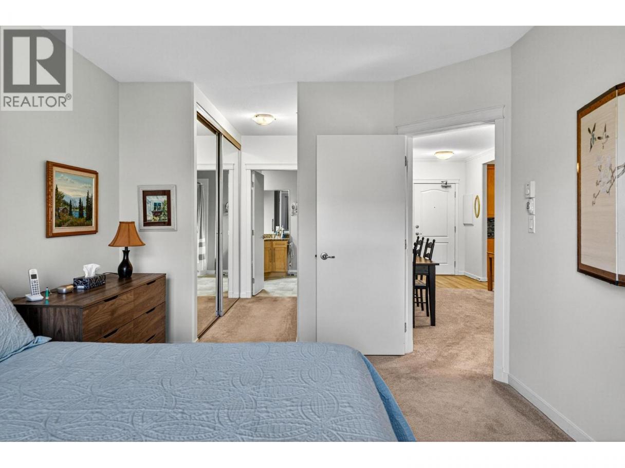 IMMACULATE & TOP FLOOR with a View! 2 bedroom, 2 bath condo at Brandt's Crossing. Beautifully maintained, this spacious condo offers a well-designed living space with large eat-in kitchen and plenty of cabinetry, S/S appliances and walk-in pantry/separate laundry room area. Split floor plan with bedrooms on either side of the living room. Gas fireplace is included in your strata fees. This home is perfect for those looking to downsize without compromising on space, comfort, or convenience. No yard work to worry about, relax on your deck overlooking the park or go for a walk to the many amenities just a stroll away. Complex has a fitness room, games room, a workshop and a Guest Suite. 1 dog or 1 cat up to 15 lbs, 15"" at shoulder. (id:6769)