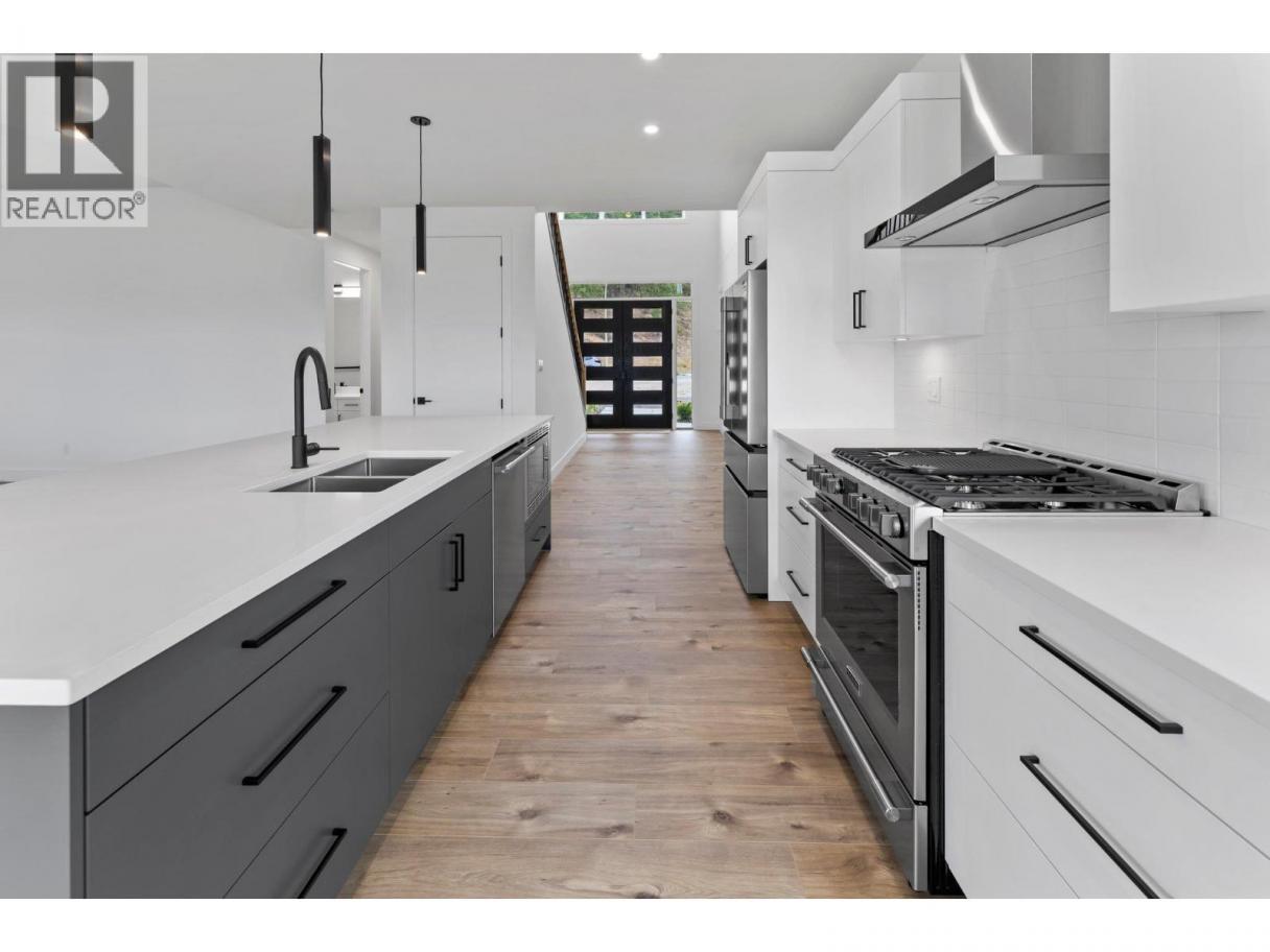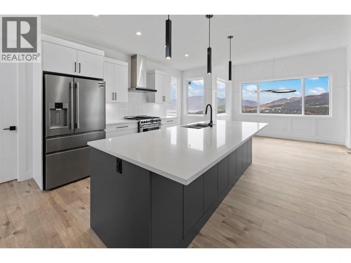 Enjoy the lake, valley and mountain views overtop your low maintenance backyard in this brand new home in Smith Creek. Located in a quiet family West Kelowna neighbourhood, this 4 bedroom, 3 bathroom home offers a functional layout and elevated views of Okanagan Lake and the surrounding valley. The main floor features an open concept design with high ceilings and large windows that bring in plenty of natural light. The kitchen includes a generous island, modern appliances and a walk in windowed butlers pantry that provides additional prep and storage space. A full bedroom and bathroom on the main level offer flexibility for guests, family or a home office. The mudroom off the garage adds practical day to day convenience. Upstairs, the primary bedroom includes a walk in closet and private ensuite including heated floors. Two additional bedrooms are connected by a Jack and Jill style bathroom, and a bonus room provides extra space for a media area, workspace or playroom. Close to hiking trails, outdoor recreation and parks this home offers the opportunity to move into new construction without the typical build timeline. Price is plus GST. (id:6769)