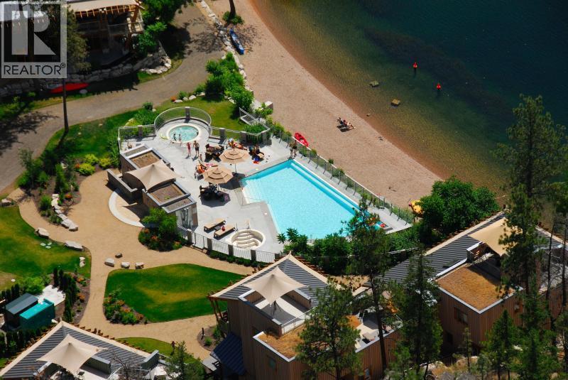 The resort lifestyle shouldn’t only be indulged in rarely, imagine having access to top-notch amenities anytime you’d like? This freshly painted, fully furnished forest cabin unit is located close to everything The Outback has to offer, with easy access to parking for residents and guests. The bright and airy property is comprised of a main cabin and semi-detached casita, sharing an expanded patio for al fresco dining. Inside the home, gleaming hardwood flooring and an open-concept layout prevails, with vaulted ceilings, and exposed beams complementing the structure. A bright kitchen with copious white cabinetry, stainless steel appliances, and a tiled backsplash lays adjacent to an airy living room with floor to ceiling windows. A nearby staircase leads to the second-floor master suite, complete with full ensuite bathroom. A second bedroom on the main floor is ideal for children yet generous in size. The adjacent lock off casita adds a third bedroom and full ensuite bathroom, offering a unique and incredibly convenient option for hosting guests. The Outback on Okanagan Lake is not simply another Vernon community. With multiple tennis courts, pools and hot tubs, fitness center, private beaches, and exclusive amenities like the glass elevator to the boardwalk, this handsome lakefront property offers a unique lifestyle that goes beyond luxury. (id:6769)