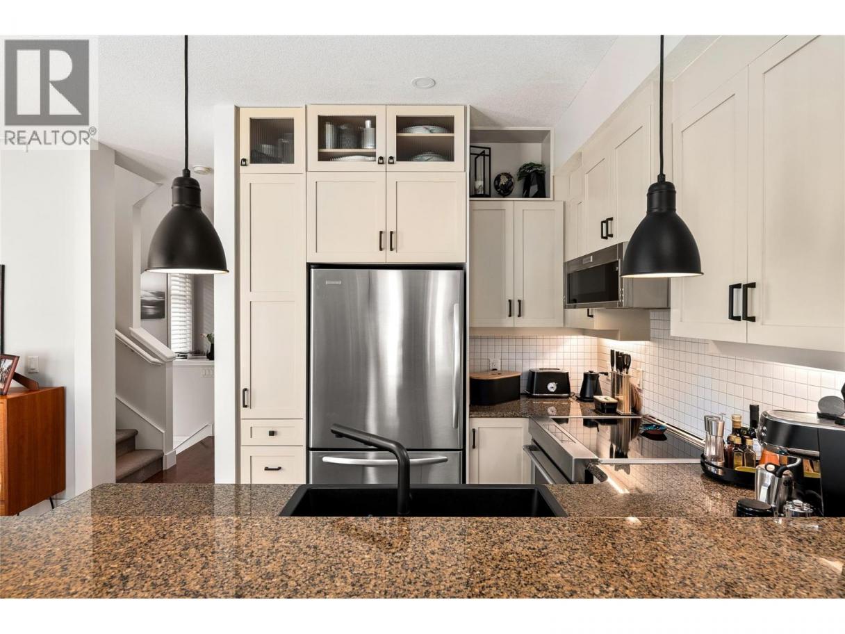 Experience the ultimate in luxury resort-style living where nature meets the back door of this beautiful three bedroom, four bath townhome within the esteemed Predator Ridge community. Lovingly updated and bathed in natural light, this residence boasts a cozy yet spacious interior, thoughtfully upgraded to exude quality and sophistication. Walk up to a spacious living room with large windows, gas fireplace, bright dining area, recently updated kitchen with new appliances, sink/faucet, elegant lighting, Hunter Douglas Silhouette blinds and Phantom screens, a cozy nook area perfect for reading, and a half bath. The upper-level leads to the primary bedroom with a private ensuite updated with new lighting and fixtures. Two additional sun-drenched bedrooms, featuring large windows and a well-appointed four piece bath. A newer washer/dryer are conveniently located between rooms. The versatile lower level has a three piece bath and a spacious bonus room, ideal to use as a family room, guest bedroom, office or home gym. Embrace outdoor living with two distinct spaces: a large upper deck offering peekaboo golf course views, and a private, beautifully landscaped back patio, perfect for al fresco dining and relaxation. A double-car garage provides ample storage. Lock and leaving knowing that your investment is cared for or live the year-round Predator Ridge lifestyle with exclusive access to world-class golf, tennis, pickleball, extensive hiking/biking trails, and a state-of-the-art pool and fitness centre. (id:6769)
