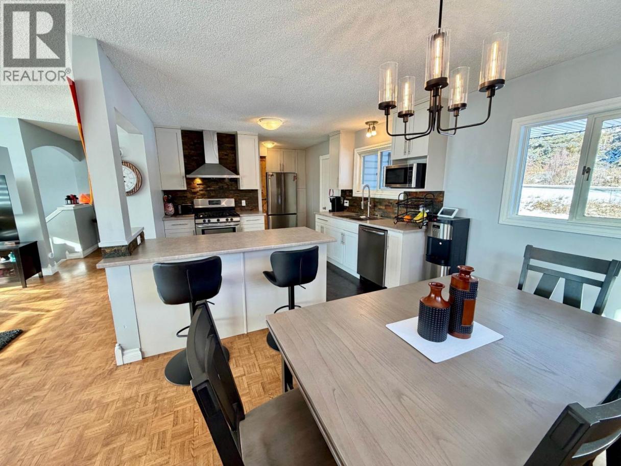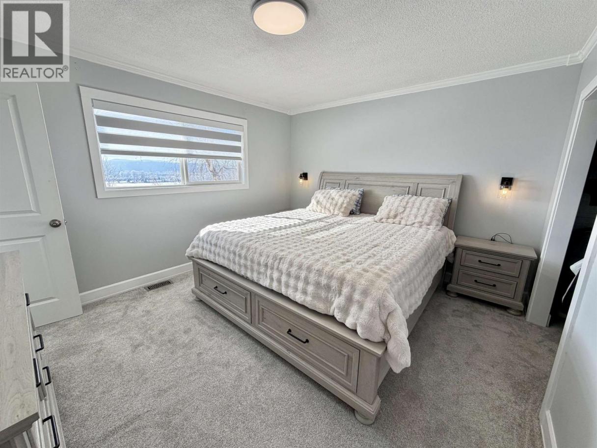 Welcome to this spacious 6 bedroom, 3 bathroom (2 are full ensuites) family home on a 0.48-acre lot located in a quiet, private neighbourhood, just a few minutes from town and close to Sinkutview School. Enjoy panoramic living room windows with stunning views of Sinkut Mountain and patio access to a big fenced backyard with an additional lower yard. Updates include new carpet (3 bedrooms), fresh paint, new blinds, new lights, 3 new windows, electric fireplace, new fridge, and refreshed lawn/rock landscaping. Other features include a large mudroom, covered entryway, a greenhouse, storage shed, and garage fitting a pickup. Downstairs offers suite-potential, plus a rec room or extra bedroom. The perfect home to suit your family! (id:6769)