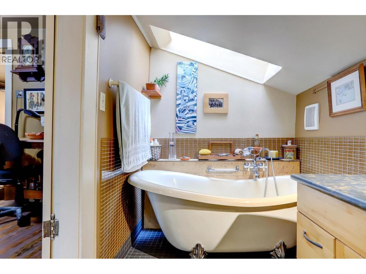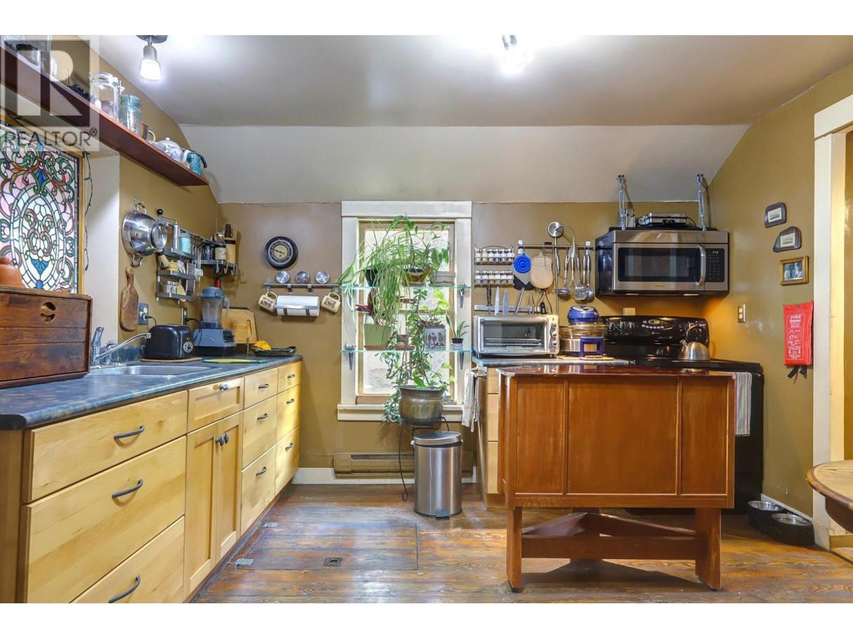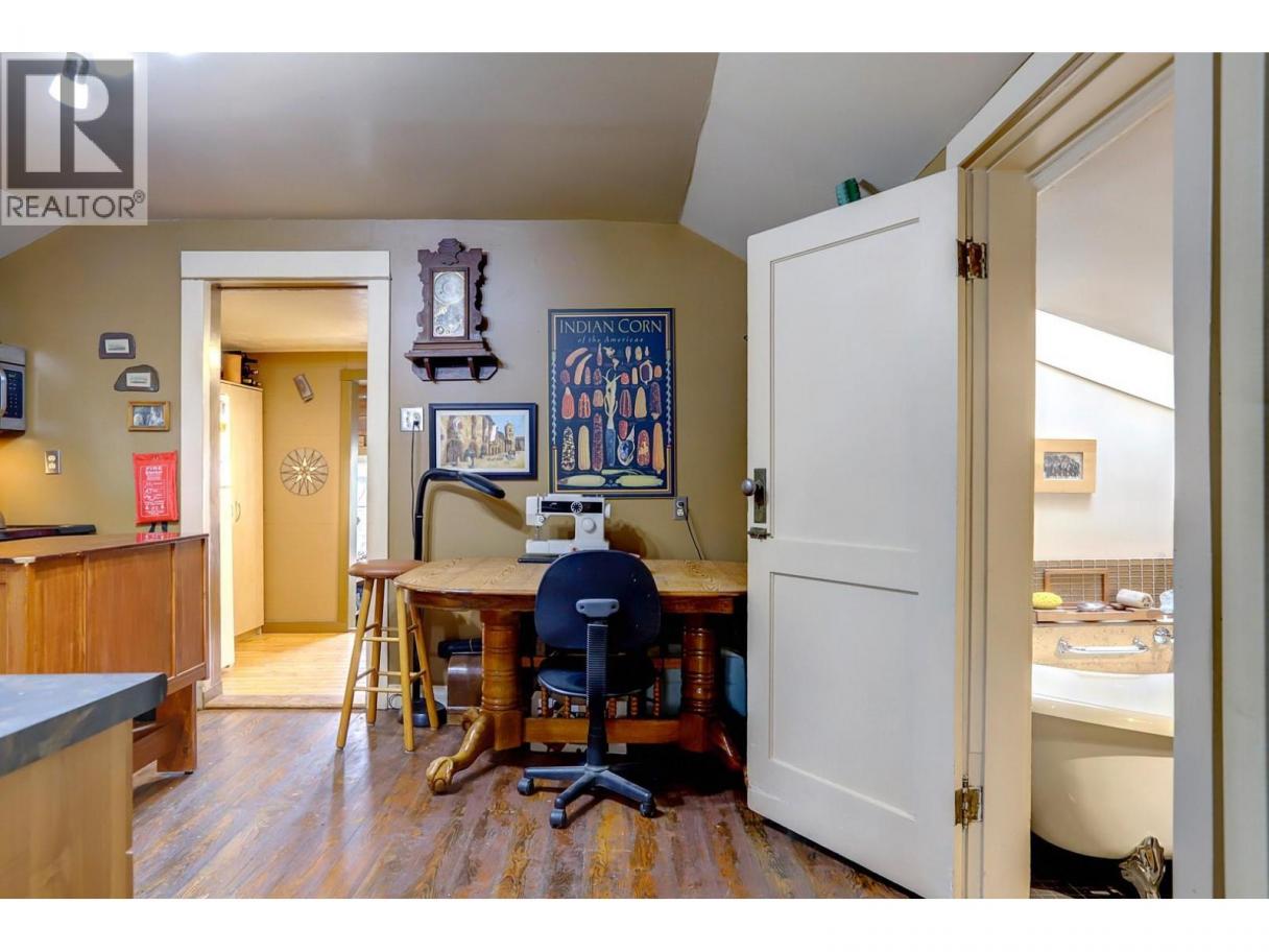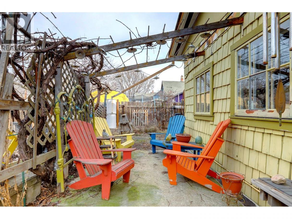 Lovingly known as the Hobbit House! This sweet little gem is your alternative to strata living, steps from Alexis Park School and Vernon’s new Active Living Centre. A great holding property, zoned Multi-Unit Small Scale (MUS). This 1920s home still holds much of its original charm, including some original hardwood floors, paired with thoughtful upgrades to improve efficiency and comfort. Alley access leads to a versatile workshop complete with a sink, bathroom and shower — perfect for hobbies, guests, or creative space. The property truly shines outdoors with a magical garden setting featuring mature grape vines, a plum tree, and lush greenery that creates a private, storybook feel. A rare opportunity to enjoy heritage character, a vibrant garden, and future development potential all in one charming package. (id:6769)