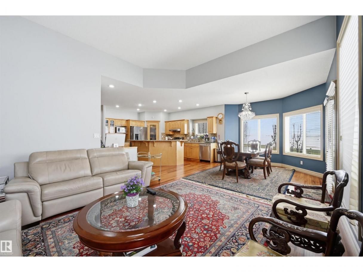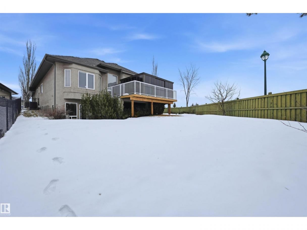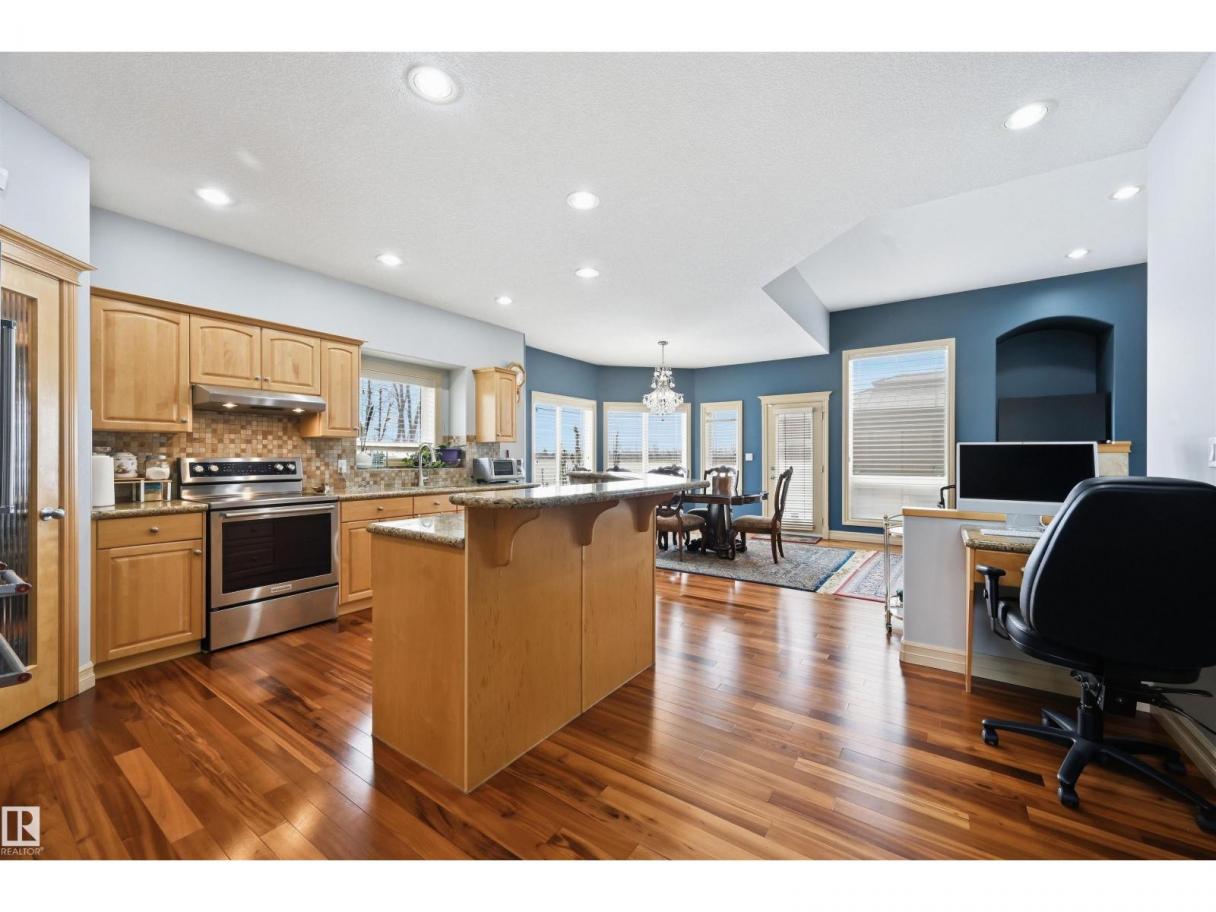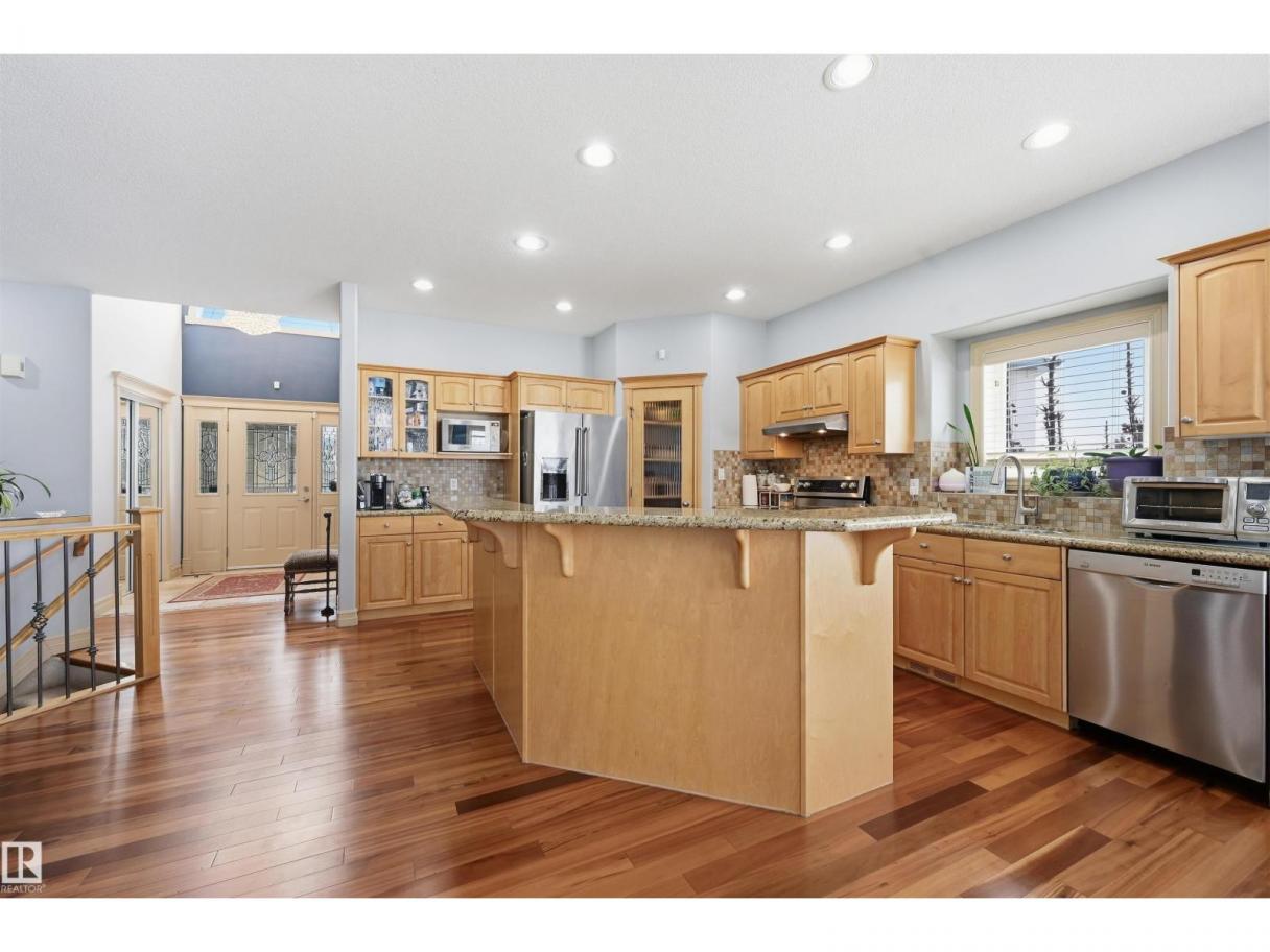 EXCEPTIONAL WALK OUT LUXURY 4 bedrm bungalow. Backing to a DRY POND & treed green space nestled in a cul de sac in the popular neighborhood of Riverside. Approx 3500 sf of luxury living space (1811 sf above grade). Open sunny plan is perfect for entertaining & family gatherings. Soaring 11/9 ft ceilings add to the airiness of this cheery home. Gourmet Chef’s kitchen w/granite counters, NEWER S/S appliances & large W/I pantry. Brazilian hardwood & tile flooring adorns much of the main. Main floor features a FLEX (dining/den) rm w/French drs, laundry & RARE second bedroom/ full bathrm. Spacious primary bedrm w/luxurious ensuite. Lower level has newer flooring, IN FLOOR heating, 2 large bedrms, games area w/wetbar, B/I entertainment centre, 2nd FP & a 3rd full bathrm (upg w/quartz). 9 ft ceilings, upgraded humidifier, BBQ gas line, A/C 2024, U/G sprinklers, newer H20 tank, $20K gazebo, HEATED O/S garage w/epoxy floors. West facing 7500 sf pie yard w/fruit trees. Access to Rec Centre & multiple schools & EIA (id:6769)
