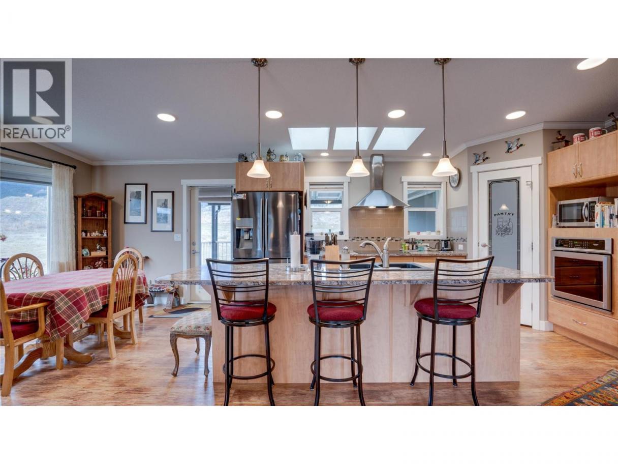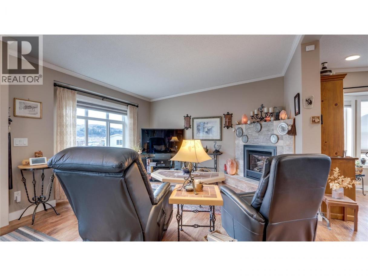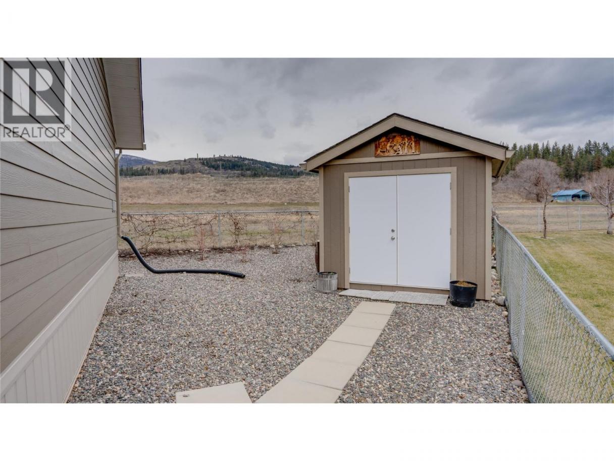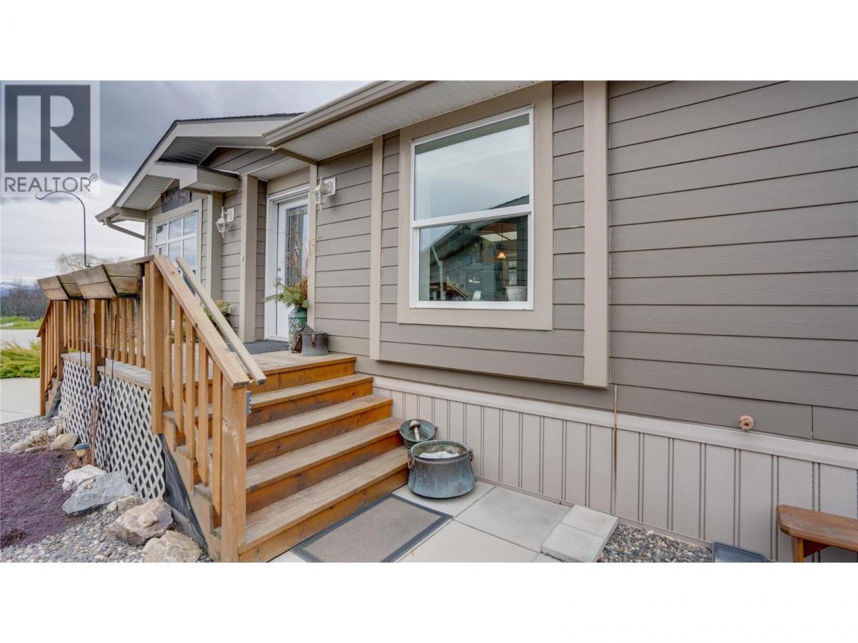 Great location! Beautiful well kept home at the end of a quiet cul-de-sac! Open plan with island kitchen, formal dining space, and bay window! Living room features large windows and a cozy gas fireplace! The kitchen has a huge island with barstools, counter cooktop, wall oven, stainless appliances, and skylights too! The primary bedroom is a generous sized with ensuite and walk-in closet! The oversized ensuite features double sinks and a full tub and shower. Bedroom 2 is perfect for guests, and there is a good sized den/office just off the kitchen. Lots of options including Crown moldings, phantom screens, pot lighting, and a covered back deck with screened in section too! Pride of ownership shines through on this one. No/low maintenance yard. Detached garage/shop with high ceilings has its own electrical panel and heater. Lots of parking for 3 or more vehicles or RV. Small gardening shed too! A wonderful set up for retirement or a good starter for a family as the den could be a third bedroom. Built in 2016 with all the bells and whistles. Neat and clean! Pet ok with restrictions. No age restriction. Best part is, it backs onto open spaces! Move-in ready! No age restrictions. 2 pets up to 25lbs. Coyote Crossing Villas is a family friendly manufactured home park! Head Lease in place until 2047. Affordable Pad fee is $500/month. (id:6769)