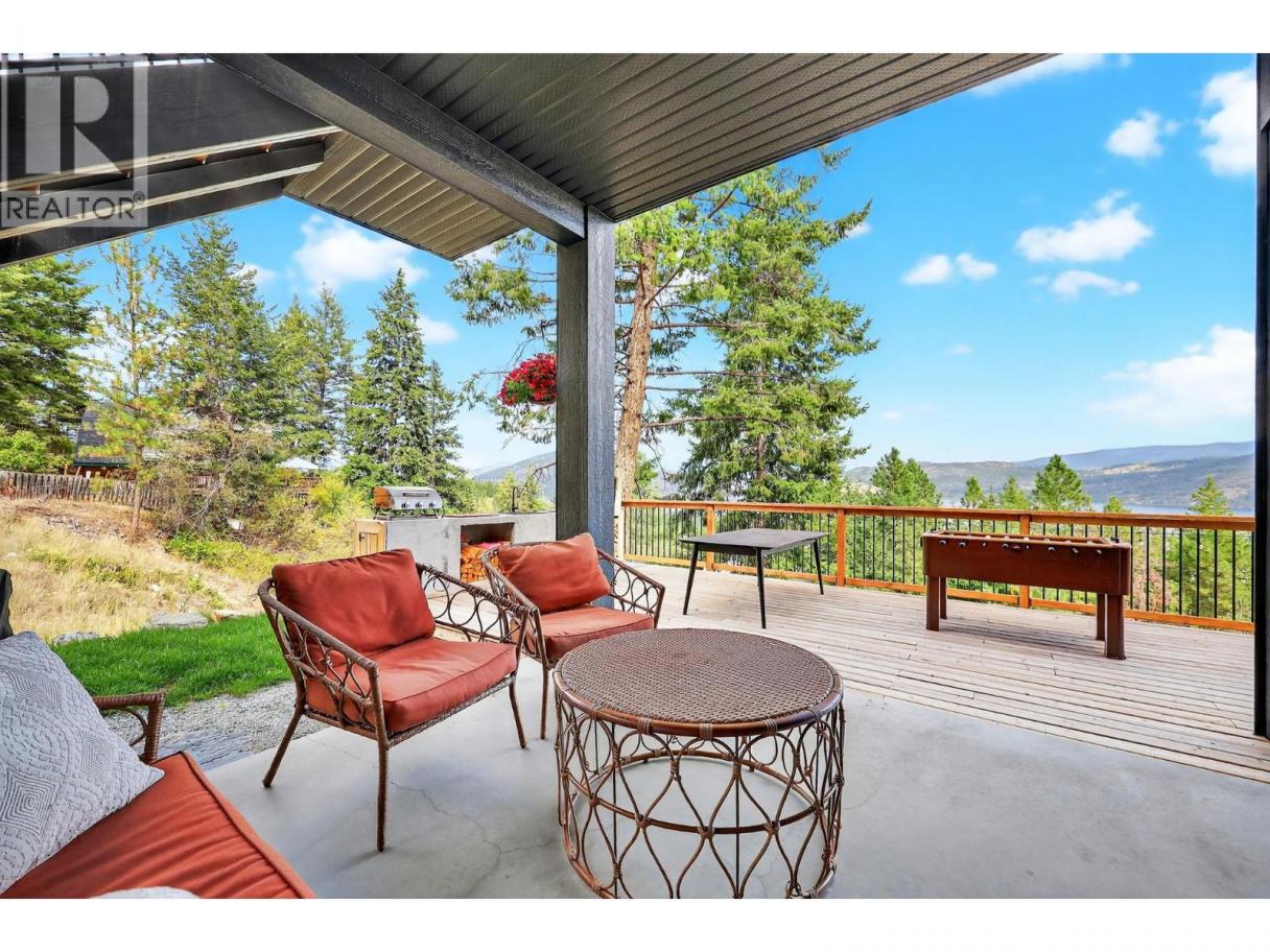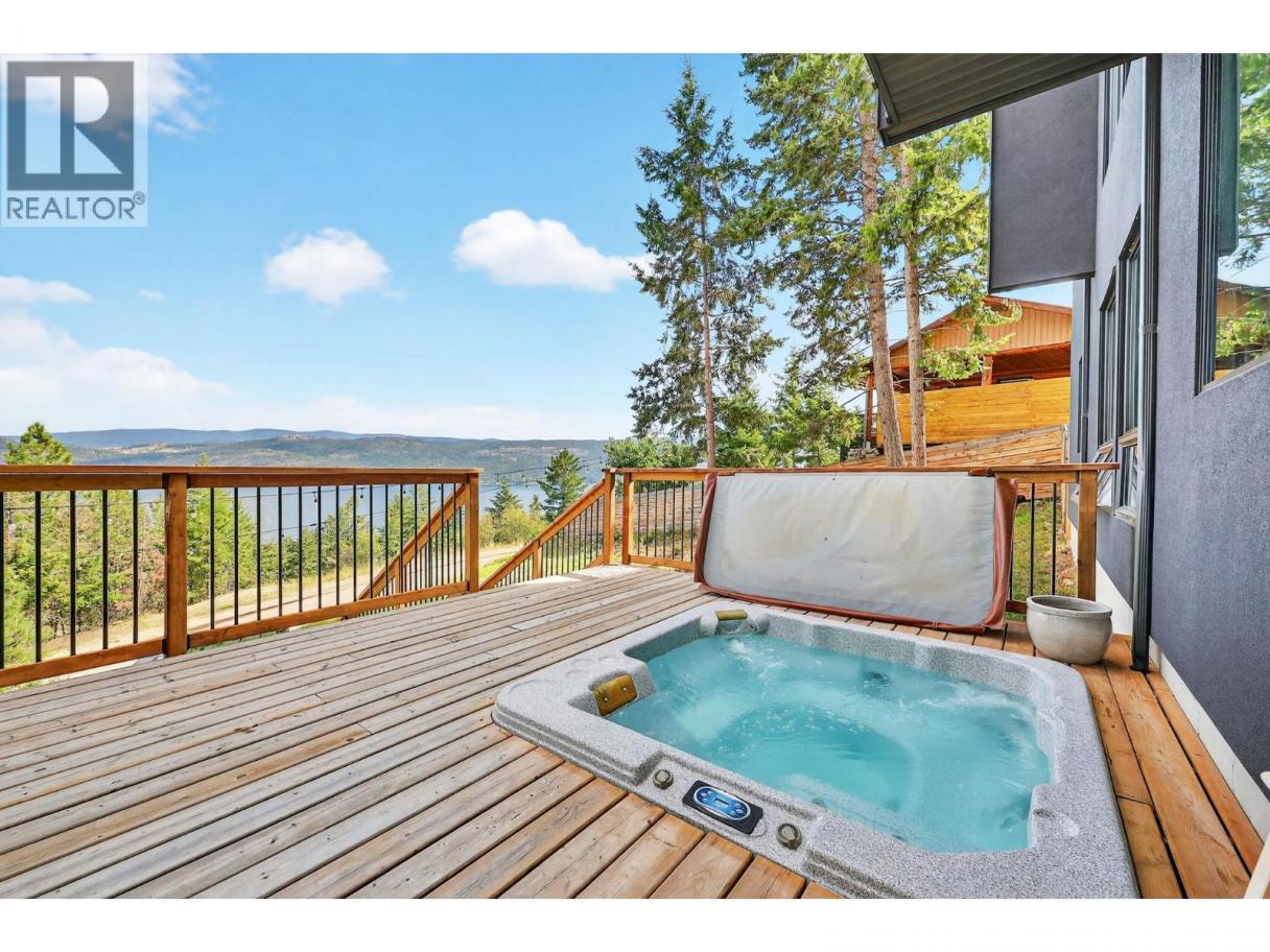 Welcome to 10 Valley Drive —a stunning contemporary retreat offering panoramic Okanagan Lake views and the ultimate Okanagan lifestyle, perfectly positioned in the peaceful community of Westshore Estates. Built in 2021, this thoughtfully designed 4-bedroom, 3-bathroom home showcases modern finishes and expansive windows that frame breathtaking lake vistas, including a feature view of Sparkling Hill Resort. Surrounded by three vacant neighboring lots, the property offers exceptional privacy and a serene, natural setting. The spacious view deck features a built-in hot tub—the perfect place to unwind while taking in the lake and mountain scenery. Inside, the home blends contemporary comfort with functional design, ideal as a full-time residence, vacation home, or investment property. This property also presents a rare opportunity as a fully licensed Airbnb with over 300 five-star reviews and proven annual revenue between $28,000 and $42,000, with the option to continue with an established local cleaner. Outdoor recreation is minutes away, including Killiney Beach, boat launch, parks, Fintry Waterfalls, and endless trails. Located just 30 minutes from Vernon and West Kelowna, you’ll enjoy access to wineries, dining, and shopping while returning home to your private retreat. With ample parking, convenient delivery services, and a welcoming community, this exceptional property offers luxury, privacy, and income potential in one of the Okanagan’s most scenic settings. (id:6769)