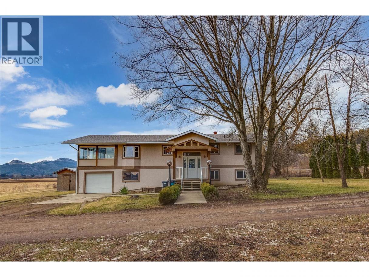 Beautiful Shuswap River waterfront property! 30 acre irrigated farm with 5 bedroom, 2 bath house with updated kitchen, updated downstairs bathroom, new hi-efficient furnace, as well as an enclosed patio area! One car garage. 66 x 100' barn with wood shop, mechanical shop, (car hoist) and equipment storage areas. Gorgeous setting on the river with panoramic mountain views. Land is split by Enderby Grindrod Road with approximately 17 acres on the river / west side of road (16 acres in alfalfa and 1 acre which the house and barn are located.) There is approximately 13 acres on the east side of the road, 11 in alfalfa, sub-irrigated, and about 2 acres are bush/treed, which could make a good building site with the potential to sub-divide. (All Land is currently leased) Bring your farming ideas or keep leasing the land to keep the farm status. Land and house has water rights from River. Pumphouse by river has power and heated. All irrigation pipe included as well as water jet sprinkler system. GST may be applicable. (id:6769)
