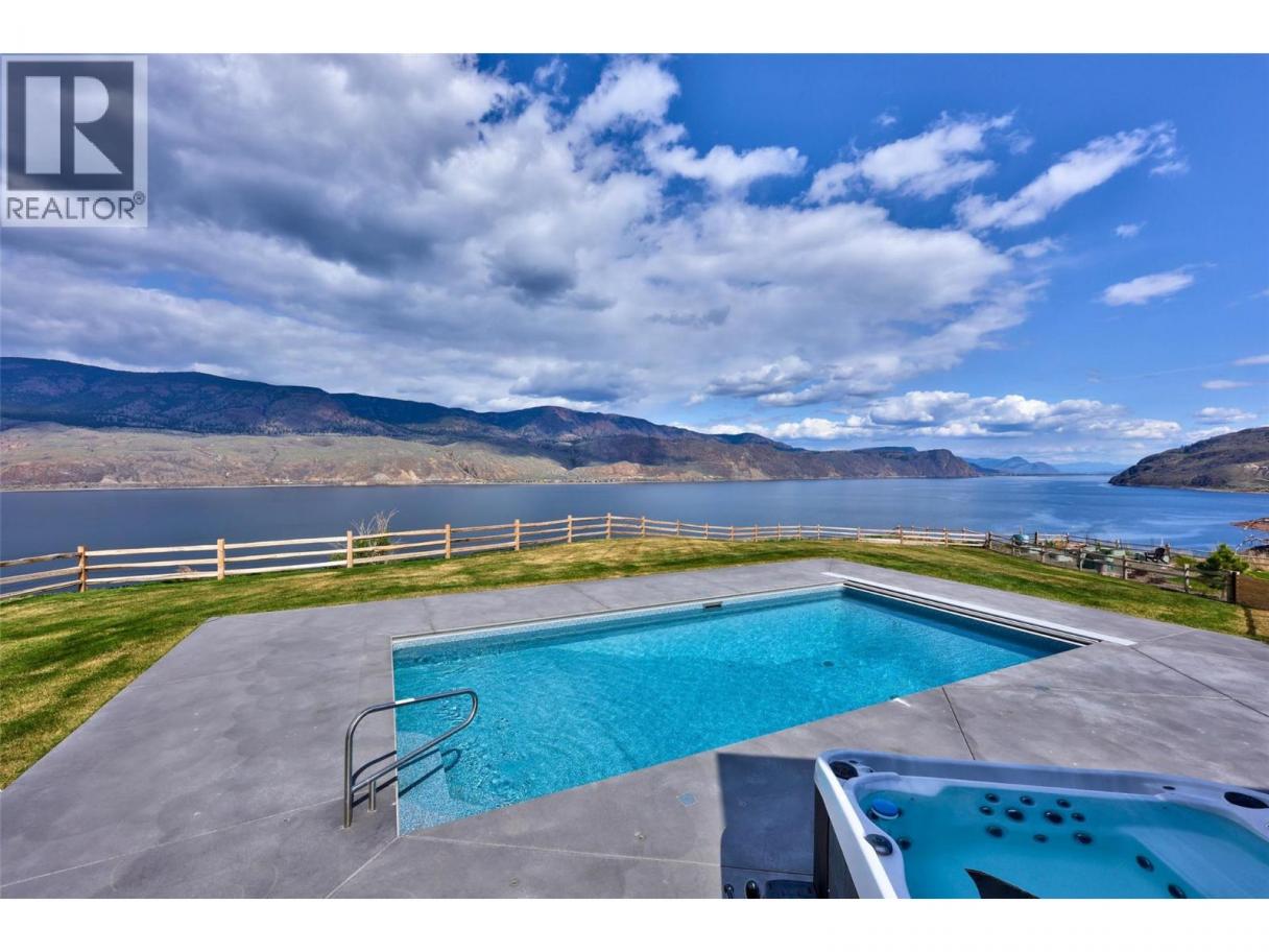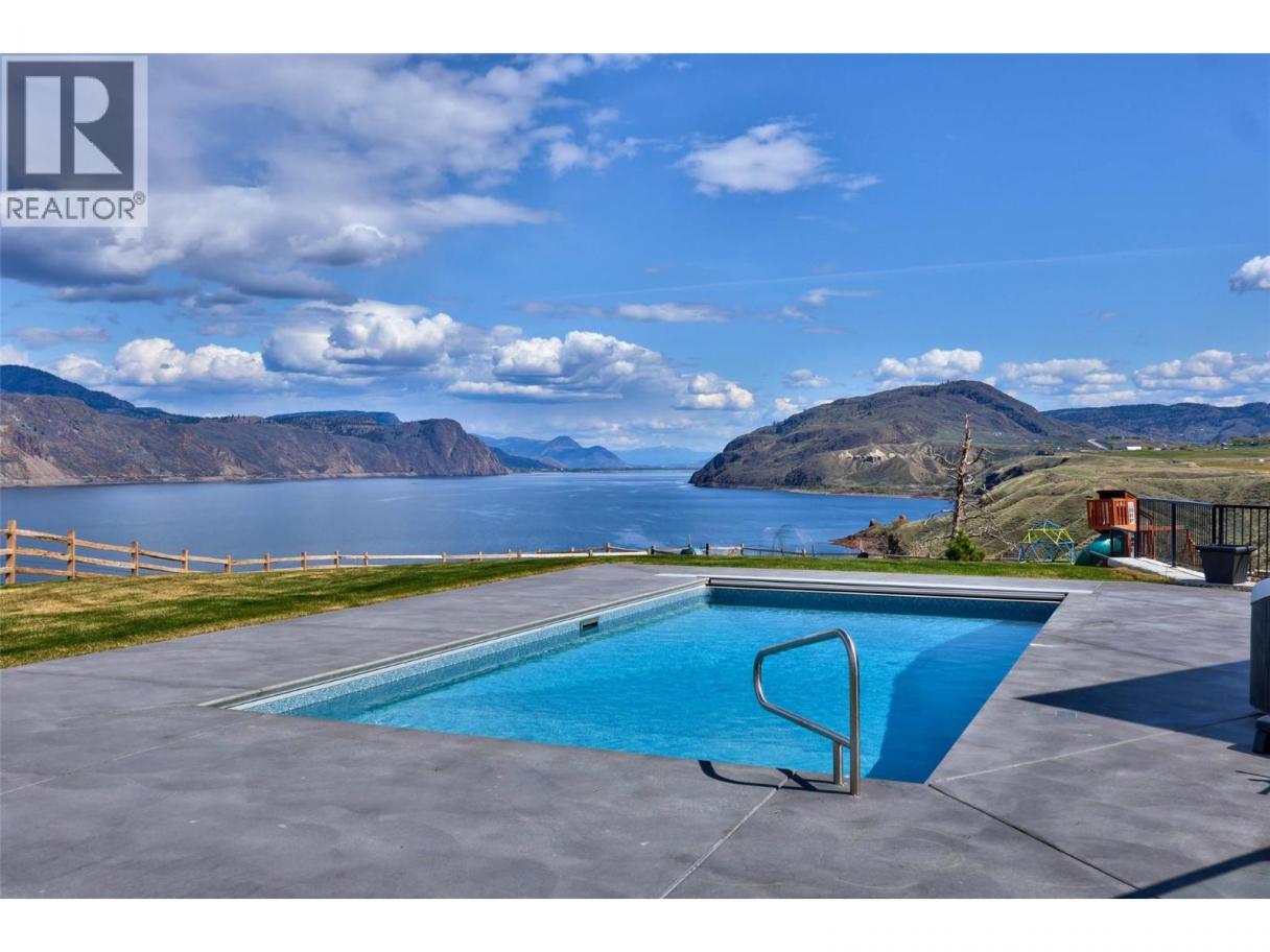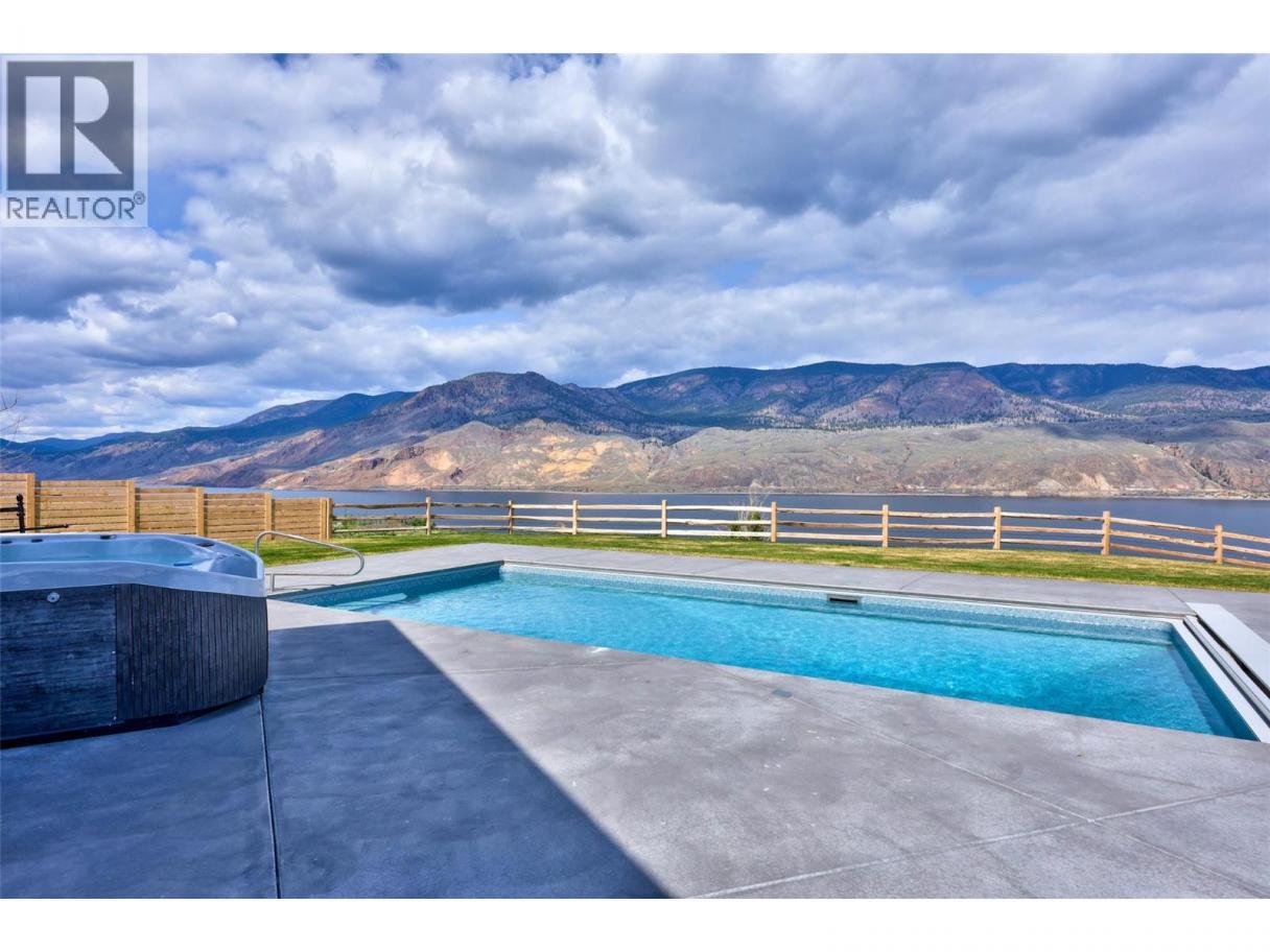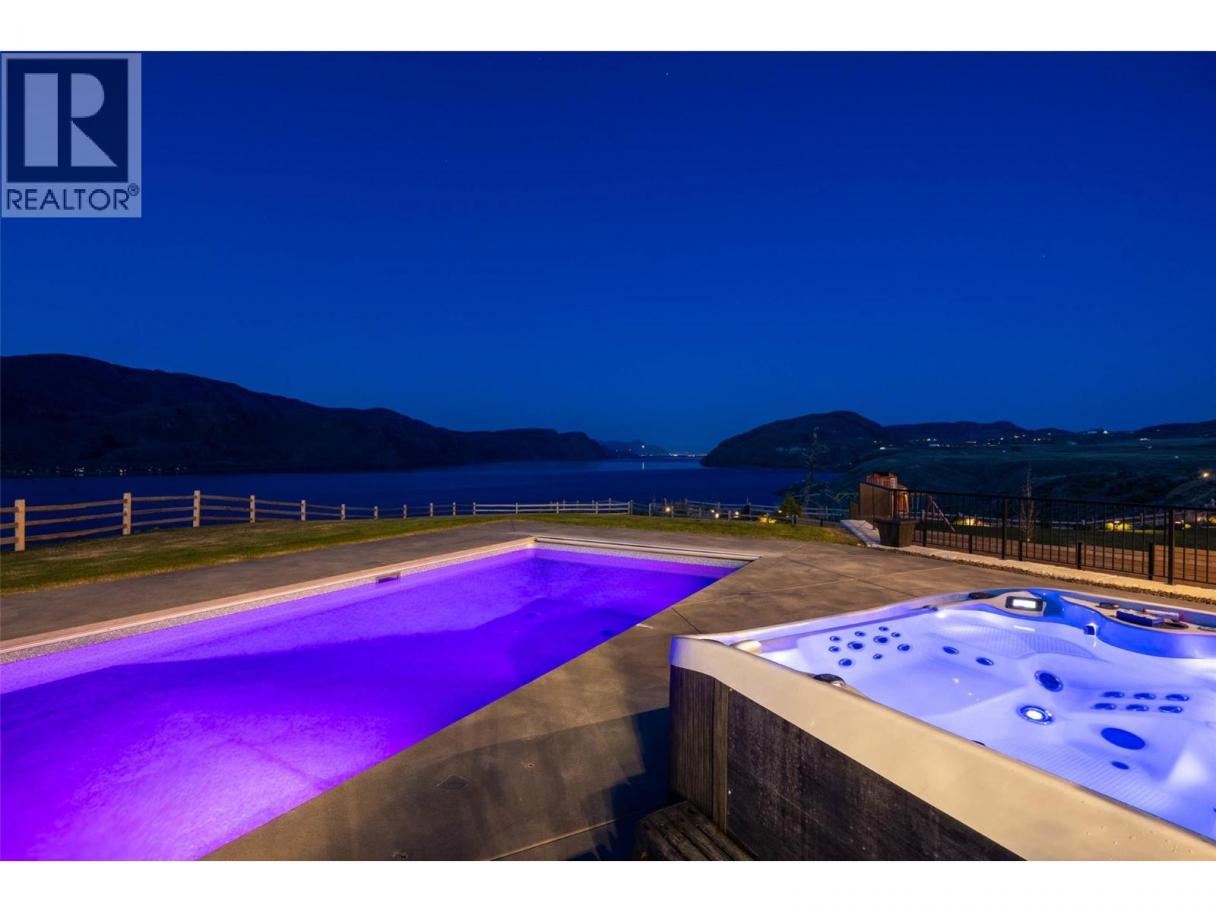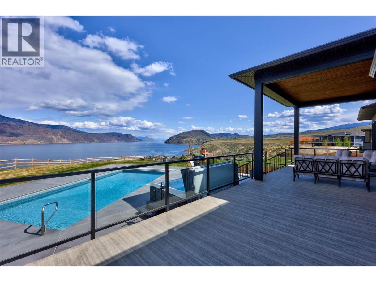 Welcome to 346 Rue Cheval Noir, one of the most premium lots and views in all of Tobiano, where refined architecture & scenic beauty converge. Thoughtfully designed, this custom-built home exudes timeless West Coast elegance with a modern edge—perfectly positioned to capture panoramic lake & mountain views from this gorgeous lot spanning just over an acre. Step into a sunlit interior defined by soaring ceilings, expansive windows, & an open-concept layout tailored for both elevated entertaining & peaceful everyday living. The main floor features a seamless flow between the great room, dining space, and custom chef’s kitchen complete w high-end finishes, a walk-through pantry, & built-in coffee bar. A convenient den w its own ensuite offers a serene space to work from home, while the luxurious primary suite invites relaxation and features an oversized walk in, elegant ensuite, stunning design & outdoor access. The lower level is equally impressive, offering flexibility ideal for guests or family with direct access to the backyard oasis. This property is a complete showstopper with a professionally landscaped yard & a gorgeous, heated in-ground pool—a private retreat for lounging or entertaining under the sun. The expansive deck space allows you to enjoy Tobiano’s breathtaking landscape from every angle. 3 car garage with nearly 5000 sqft of living space and proximity to world-class golfing, marina & endless trail systems complete the lifestyle this home offers. (id:6769)