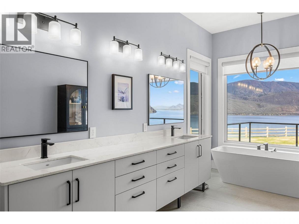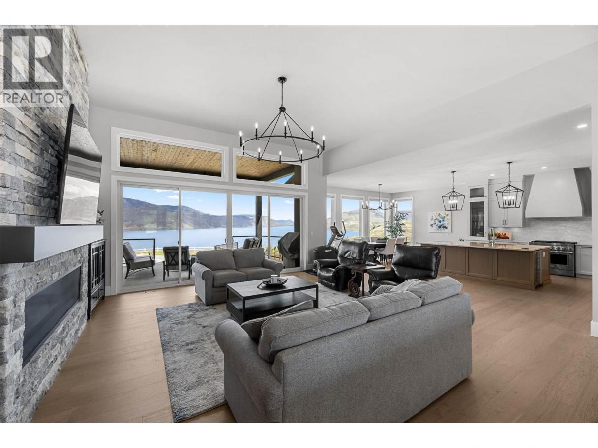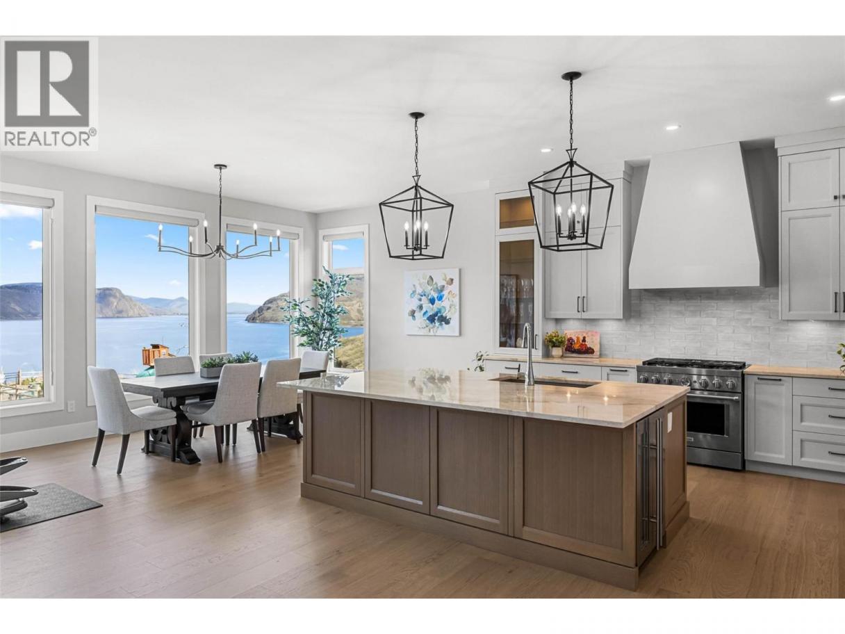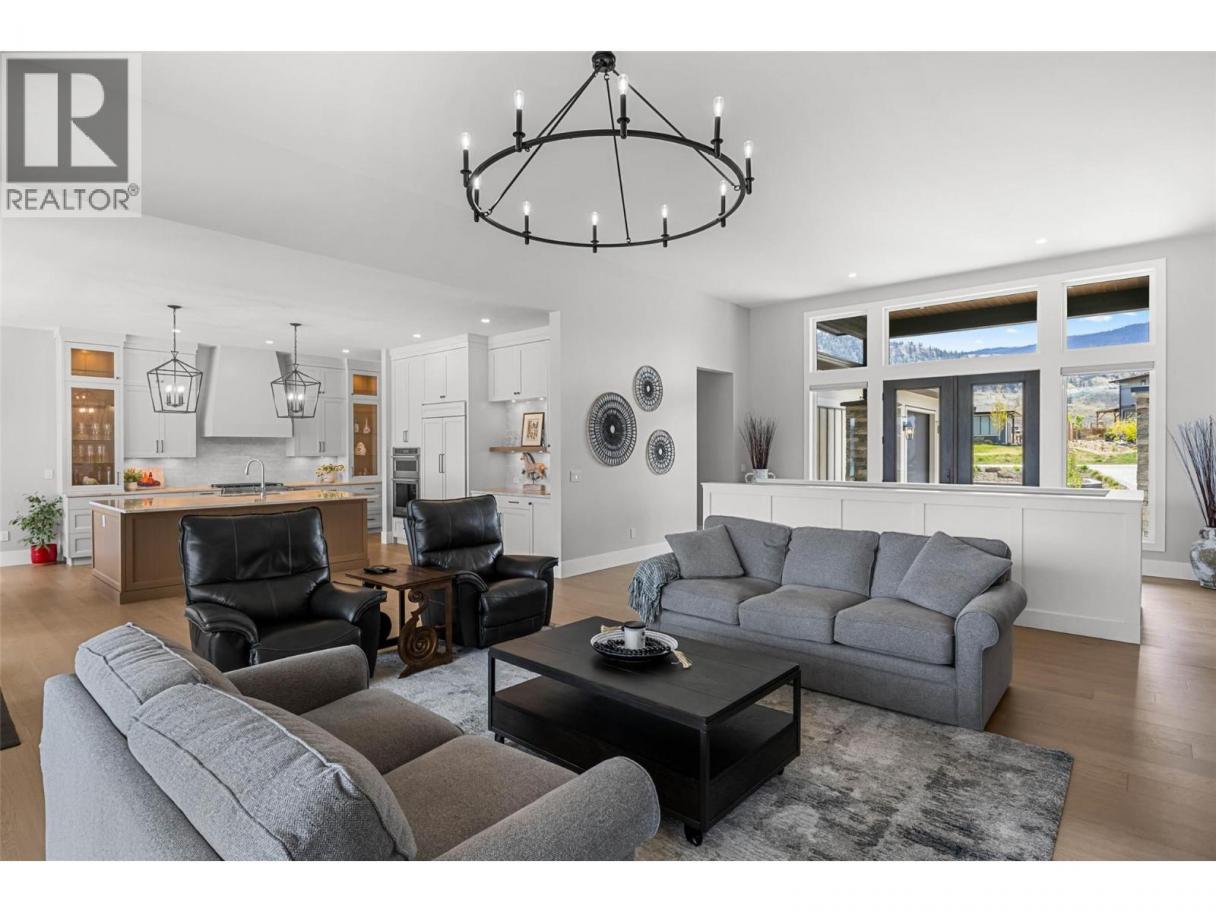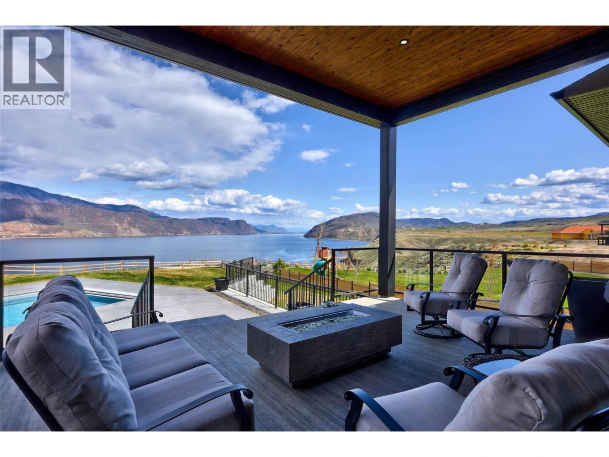 Welcome to 346 Rue Cheval Noir, one of the most premium lots and views in all of Tobiano, where refined architecture & scenic beauty converge. Thoughtfully designed, this custom-built home exudes timeless West Coast elegance with a modern edge—perfectly positioned to capture panoramic lake & mountain views from this gorgeous lot spanning just over an acre. Step into a sunlit interior defined by soaring ceilings, expansive windows, & an open-concept layout tailored for both elevated entertaining & peaceful everyday living. The main floor features a seamless flow between the great room, dining space, and custom chef’s kitchen complete w high-end finishes, a walk-through pantry, & built-in coffee bar. A convenient den w its own ensuite offers a serene space to work from home, while the luxurious primary suite invites relaxation and features an oversized walk in, elegant ensuite, stunning design & outdoor access. The lower level is equally impressive, offering flexibility ideal for guests or family with direct access to the backyard oasis. This property is a complete showstopper with a professionally landscaped yard & a gorgeous, heated in-ground pool—a private retreat for lounging or entertaining under the sun. The expansive deck space allows you to enjoy Tobiano’s breathtaking landscape from every angle. 3 car garage with nearly 5000 sqft of living space and proximity to world-class golfing, marina & endless trail systems complete the lifestyle this home offers. (id:6769)