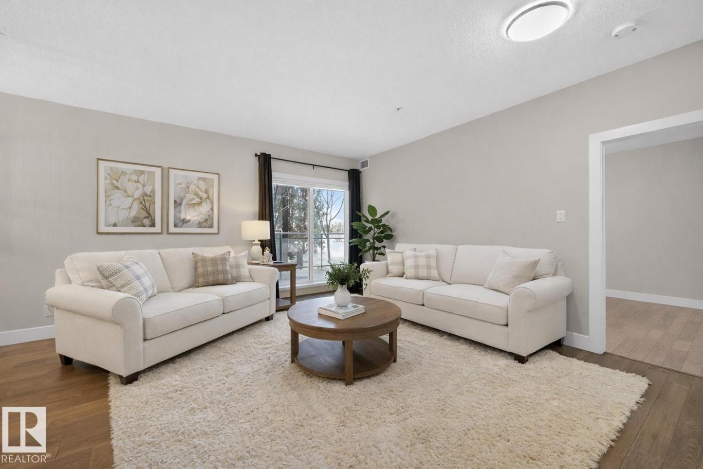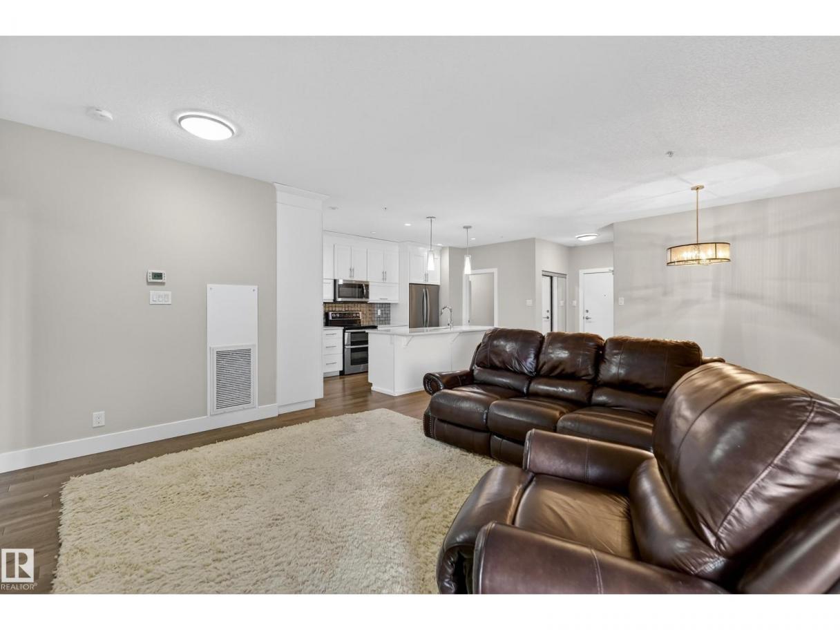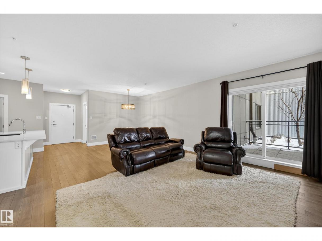 GROUND-LEVEL LIVING IN DESIRABLE RICHFORD! This spacious 1-bedroom condo offers comfort, convenience, and incredible storage in a prime south Edmonton location close to shopping, public transit, schools, the new hospital, and quick access to major routes. The large primary bedroom fits a king-sized bed and features a walk-in closet with built-in PAX organizers leading to a full ensuite. The open-concept layout showcases vinyl plank flooring, a bright white kitchen with an impressive 8' island, and abundant counter and cupboard space. Living and dining areas flow to a huge covered balcony perfect for relaxing outdoors. Enjoy in-suite laundry in a spacious laundry room with storage plus a 4-piece main bath. Well-maintained building with no neighbours on either side. Amenities include a gym next door, social room with kitchen, rec room with pool table, and guest suite. Comes with 2 titled heated underground parking stalls and a 12x15 storage cage. SOME PHOTOS ARE VIRTUALLY STAGED. (id:6769)