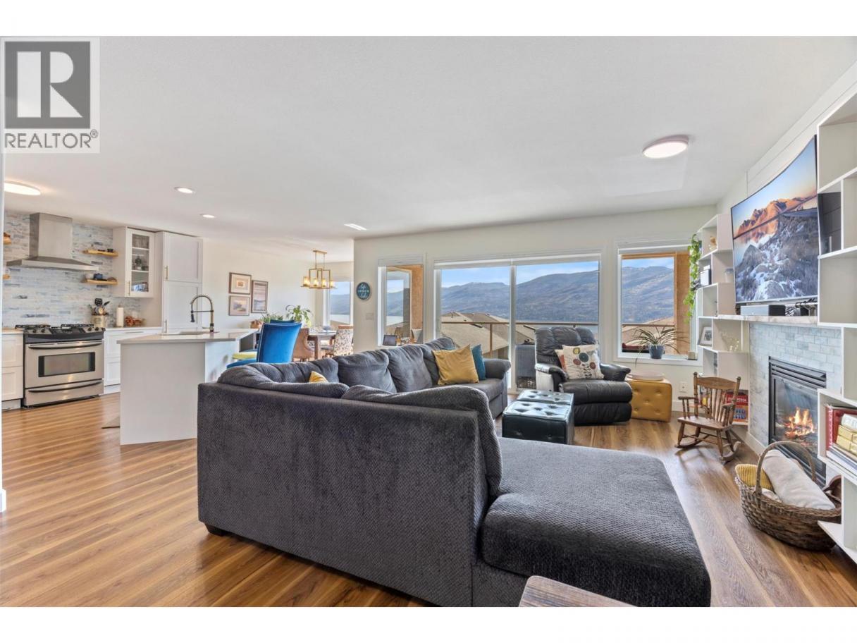 Don’t miss this one! This beautifully updated 3-bedroom half-duplex offers stunning views of Lake Okanagan that you'll never tire of. Living the Okanagan dream starts here! Motivated Seller says ""Bring me an offer!"" Perfect for the kids and the pets — The Terraces of Peachland is a quiet, gated, pet- and family-friendly community in beautiful Peachland. Enjoy waking up to the sunshine glimmering off the lake every day! This immaculate semi-detached townhome features over 2,000 sq. ft. of bright, open concept living with panoramic lake and mountain views. The main floor showcases large windows, new luxury vinyl plank flooring, new blinds, a cozy gas fireplace, and a spacious covered deck with natural gas hookups for the barbeque — perfect for morning coffee or evening entertaining. The updated kitchen boasts a large island with seating, quartz counters, new cabinetry, and new stainless-steel appliances. The primary suite includes a walk-in closet, and a 4-piece ensuite. The lower level offers a second bedroom, a large den/office, a full bathroom, and ample storage. Additional features include newer A/C, furnace, central vacuum, an irrigation system, and an oversized double garage. Strata fees are just $170/month and include lawn care. RV/boat parking may be available (additional costs apply.). Located just minutes from Peachland’s vibrant waterfront, shops, and cafes—this home is a rare opportunity to enjoy the best of Okanagan living! (id:6769)