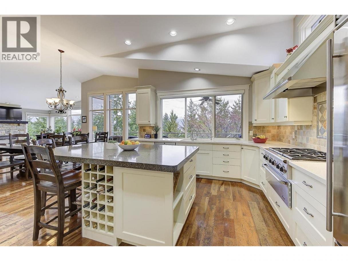 Stunning ranch-style home situated on a private 0.67 acre lot in the enchanting Magic Estates, offering unparalleled privacy and breathtaking mountain views. This exquisite home features an open-concept floor plan with vaulted ceilings and large windows that bathe the interiors in natural light. The kitchen is truly exceptional, equipped with high-end appliances including a Dacor 36"" gas cooktop and double oven, Sub-Zero fridge, built-in cappuccino machine, and a wine fridge, beautiful Corian and quartz countertops. Kitchen is open to the spacious dining room and great room with stone gas fireplace. Luxurious primary bedroom on the main level, featuring a generous walk-in closet and a relaxing five-piece ensuite bathroom. Main floor office/den offers built-in features and closet storage. The laundry and mudroom provide easy access to the double garage, built in speaker system throughout. The walk-out level offers a remarkable media room with media seating, family/games room, , 3 additional spacious bedrooms and plenty of storage space. Private driveway with plenty of parking on top, storage shed built in 2024, large RV parking pad, and extra parking available along the road. This home is a perfect blend of luxury and comfort, creating a peaceful retreat in a beautiful location (id:6769)