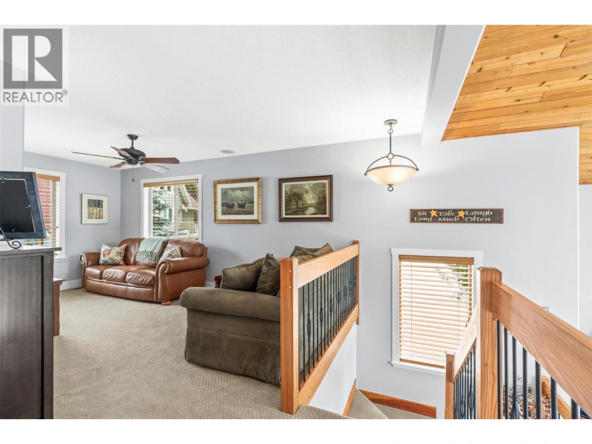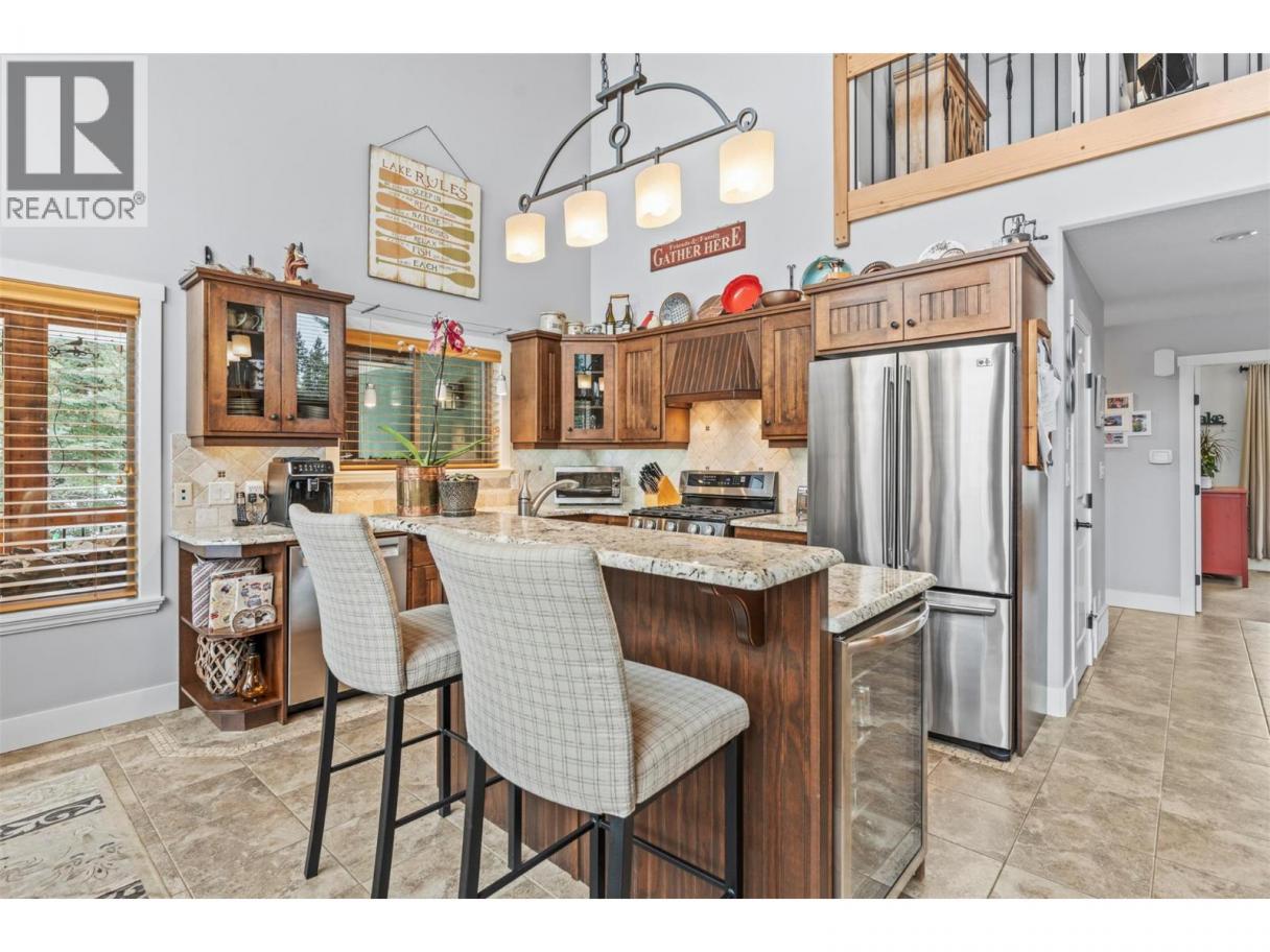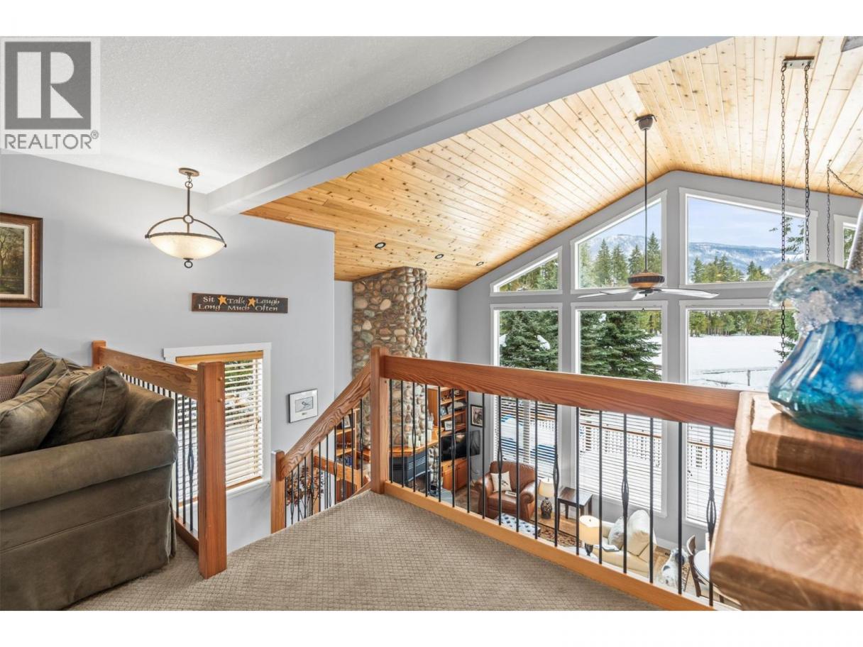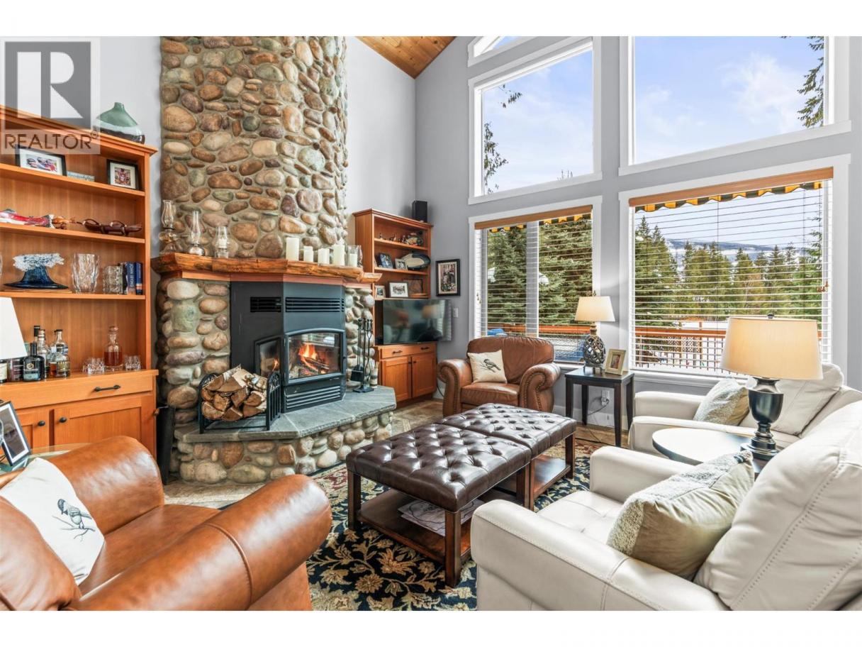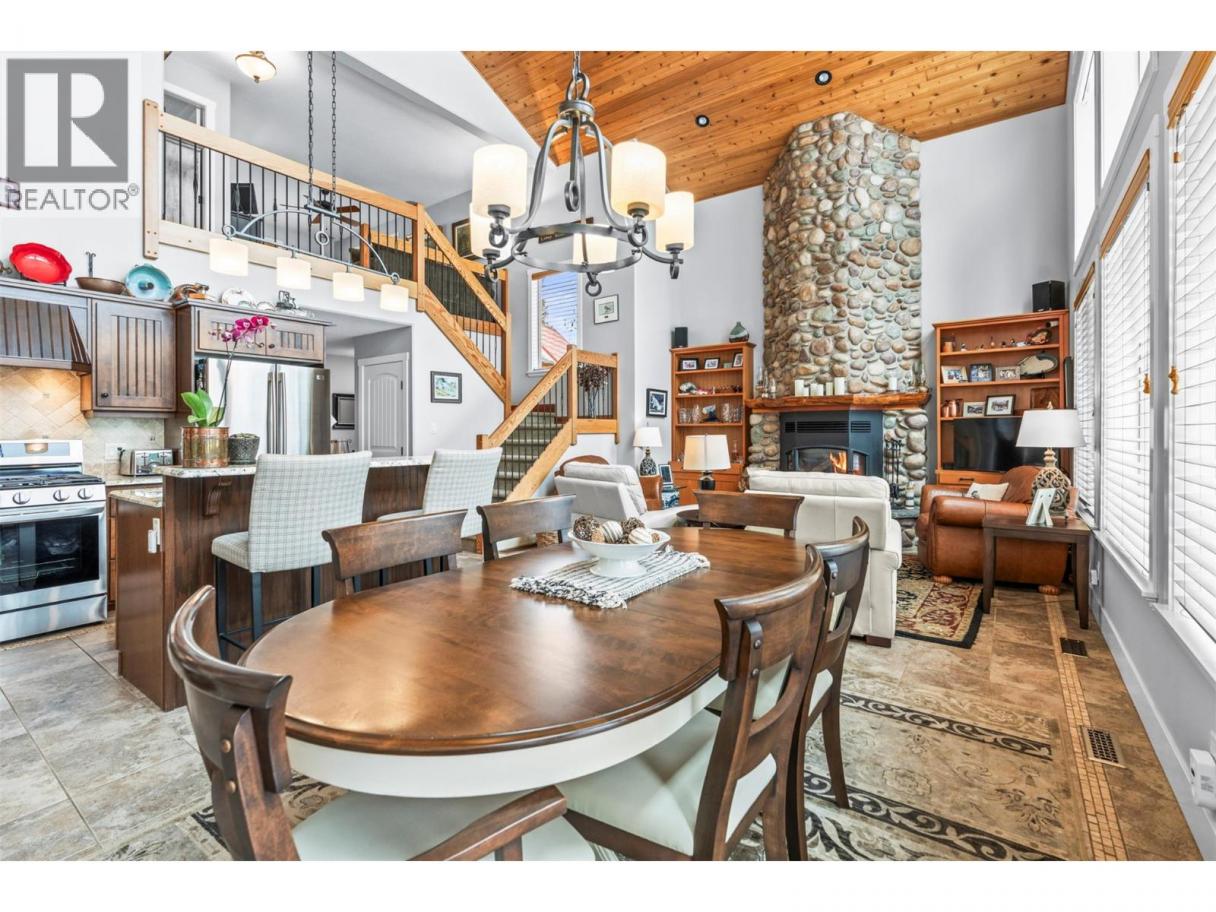 Set within the sought-after recreational community of Mabel Lake Golf Course Strata, this beautifully furnished two-story home sits on 0.39 acres backing onto the airstrip and offers an incredible open-concept design. Expansive floor-to-vaulted-ceiling windows flood the space with natural light and frame the stunning surrounding views. The gourmet kitchen features rich wood cabinetry, granite countertops, a prep sink, tiled backsplash, and stainless-steel appliances, perfect for both everyday living and entertaining. In the adjoining great room, a striking floor-to-ceiling stone fireplace provides warmth and inviting ambiance. Step outside to the wrap-around deck with a built-in BBQ, ideal for effortless outdoor dining and gatherings. Three bedrooms are thoughtfully divided between the main level and the loft, where the primary suite is privately situated. The spacious retreat includes a beautiful ensuite with granite counters, heated floors, and access to its own private deck. The additional loft area offers versatile space for a home office, lounge, or guest area. Heated flooring extends to both the ensuite and main bathroom for added comfort. Downstairs, a large unfinished basement awaits your personal vision. There’s plenty of room for all your recreational toys, plus the added bonus of a fully serviced RV hookup. With low strata fees and an unbeatable lifestyle location, this exceptional property is ready to be enjoyed. No Speculation Tax! (id:6769)