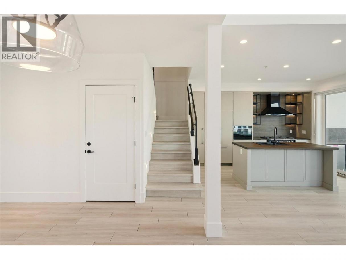 Waterfront living at Lakehouse Summerland, an exclusive lakeside community perched along the shores of Okanagan Lake. This beautifully designed 3 bed, 3 bath residence offers contemporary living inspired by the natural tones and textures of the Okanagan landscape. Inside, luxury vinyl flooring and soaring ceilings create a bright, airy atmosphere, while expansive windows invite natural light throughout the open-concept main level. The chef-inspired kitchen pairs sleek modern cabinetry with engineered stone countertops, a distinctive butcher block island and premium Fisher & Paykel appliances, including a panelled refrigerator, dual-fuel range, speed microwave oven and double drawer dishwasher. The dining area flows seamlessly to a spacious tiled patio with a built-in outdoor kitchen, creating an effortless extension of the interior living space, perfect for lakeside entertaining. Upstairs, the primary retreat offers lake views, custom closets and a spa-like ensuite with double vanity and frameless glass shower. Two additional beds, a full bath with designer tile finishes, and a loft-style office or reading nook complete the upper level. Residents enjoy resort-style amenities including beach access, a pool, hot tub, fitness centre, lounge deck and beautifully landscaped gathering spaces, all moments from wineries, golf and Penticton. *Photos in this listing are of a similar unit, updated photos to come.* (id:6769)