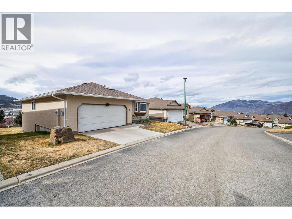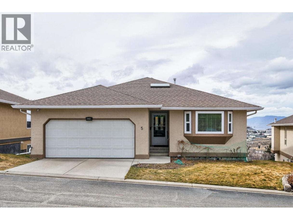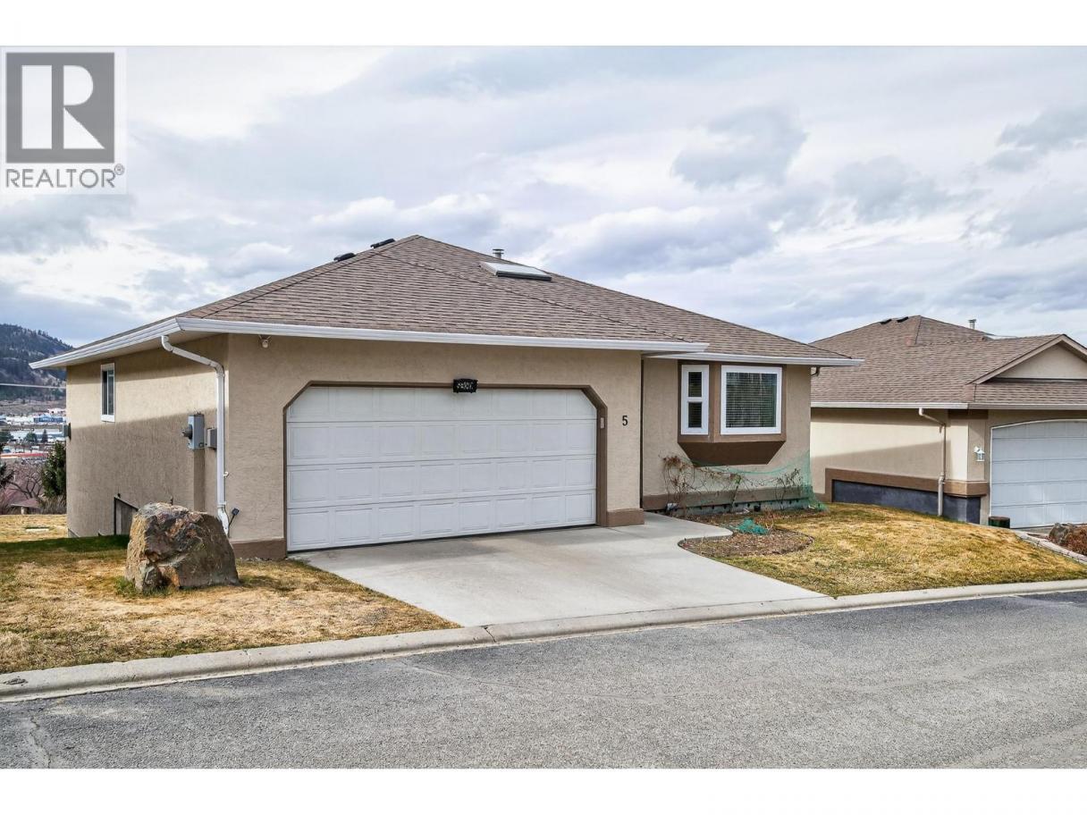 Welcome to Crestview Heights, one of Upper Sahali’s most sought-after bareland strata communities, just minutes from shopping, recreation, public transit, and a short drive to downtown and Royal Inland Hospital. This beautifully maintained 55+ home has been updated with new windows, a new furnace, and fresh paint. The main floor features two bedrooms, including a spacious primary with walk-in closet and 3-piece ensuite, a second full bathroom, main floor laundry, and a bright foyer with skylight. Cozy up by the corner gas fireplace in the living area or enjoy west-facing city, river, and mountain views from the covered deck off the kitchen, which boasts ample cabinetry and a large island. The walk-out lower level opens to a covered patio and offers flexible living with a finished family room with built-in cabinetry and sink, a recreation room, a full bathroom, and three additional rooms ready for your finishing touches. Additional perks include a double attached garage with interior access, central A/C, built-in vacuum, gas BBQ hookup, visitor parking nearby, and RV parking subject to availability—perfect for low-maintenance, comfortable living in a prime location. (id:6769)