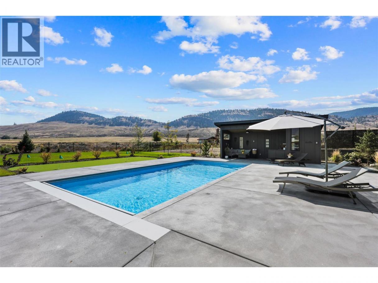 Welcome to 115 Lake Point Court, a masterfully crafted rancher perfectly situated on a 32,900+ sq.ft. estate lot in the sought-after community of Tobiano. Designed with an uncompromising attention to detail, this residence showcases soaring 10ft ceilings on the main level, engineered hardwood floors, custom cabinetry with built-in appliances, and quartz countertops throughout. The expansive great room is anchored by a stunning fireplace feature and framed by walls of windows capturing panoramic mountain views, while the chef-inspired kitchen with walk-in pantry blends beauty with function. The private primary suite offers a spa-like retreat with stone soaker tub, walk-in shower, dual vanities, and a custom walk-in closet. A second bedroom, elegant powder room, and a well-appointed mudroom/laundry complete the main floor. The fully finished walk-out basement is designed for entertaining with a large rec room and games room with wet bar, three additional bedrooms, two full bathrooms, and versatile space to be used as a den or extra storage. Step outside to a resort-inspired backyard featuring a 32x16 saltwater pool with automatic cover, pool shed with pump room, covered patio, and a fully fenced, professionally landscaped yard. Just steps from Kamloops Lake and the award-winning Tobiano Golf Course, this exceptional home offers the perfect blend of refined luxury, modern comfort, and the unparalleled lifestyle that Tobiano is known for. (id:6769)