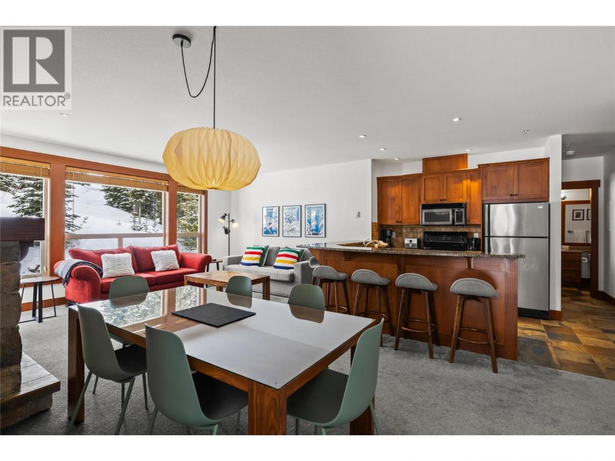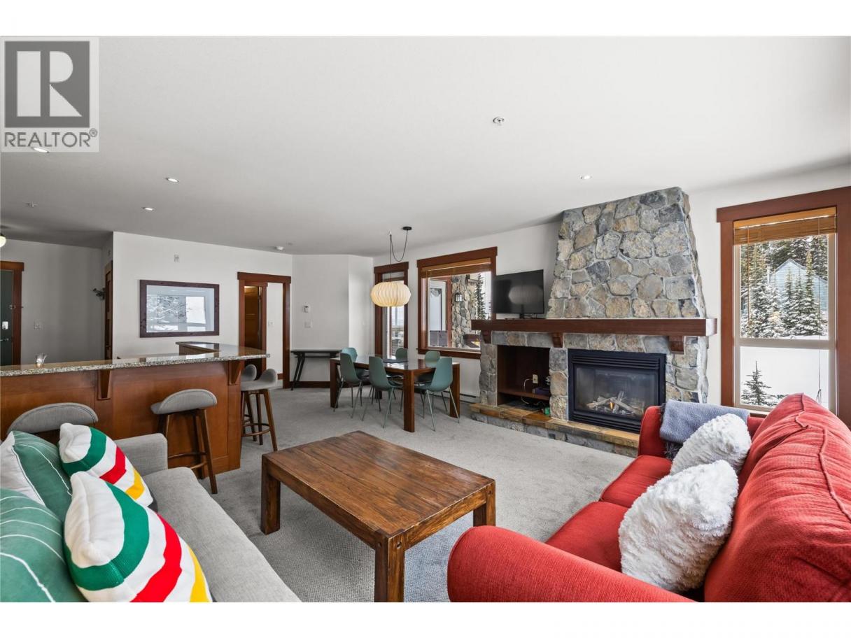 Luxury and lifestyle come together at Stonebridge, one of Big White’s most sought-after residences. This exceptional third floor, two bedroom, two bathroom corner unit captures iconic views of the main ski run into the village, the famous clock tower, and stunning sunset skies—best enjoyed from your private hot tub. Thoughtfully designed for both relaxation and entertaining, the bright open-concept layout features granite countertops, slate tile, new carpeting, and a warm stone fireplace, with mountain views framed from every room. Offering three queen beds plus a fold-out sofa, the property comfortably sleeps up to seven guests, making it perfectly suited for family escapes or strong vacation rental potential. True ski-in, ski-out access places the slopes at your doorstep, complemented by one of the most conveniently located storage lockers on the mountain. Residents enjoy Stonebridge’s renowned resort-style amenities including an outdoor pool, fitness centre, underground parking, and restaurants all within the complex, along with the confidence of one of Big White’s most respected and well-managed strata communities. Whether you’re searching for a luxury mountain getaway or an investment in Big White’s vibrant village core, this property delivers exceptional comfort, convenience, and views. GST applicable. Turn-key and fully equipped—ready to enjoy or rent immediately. (id:6769)