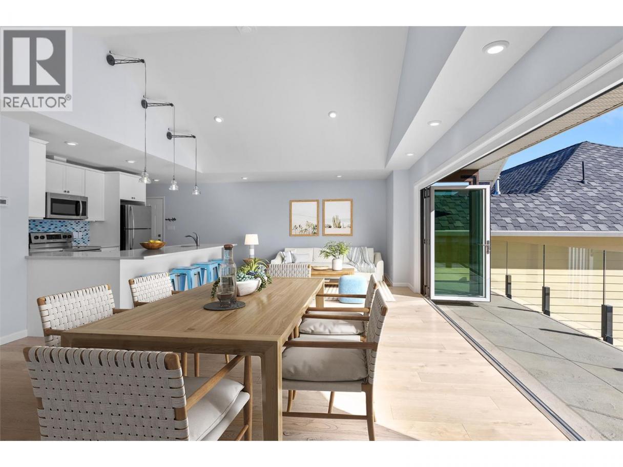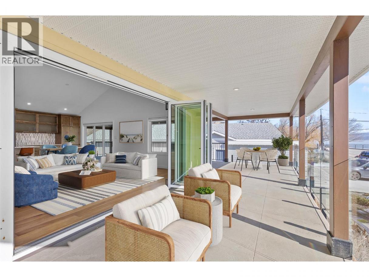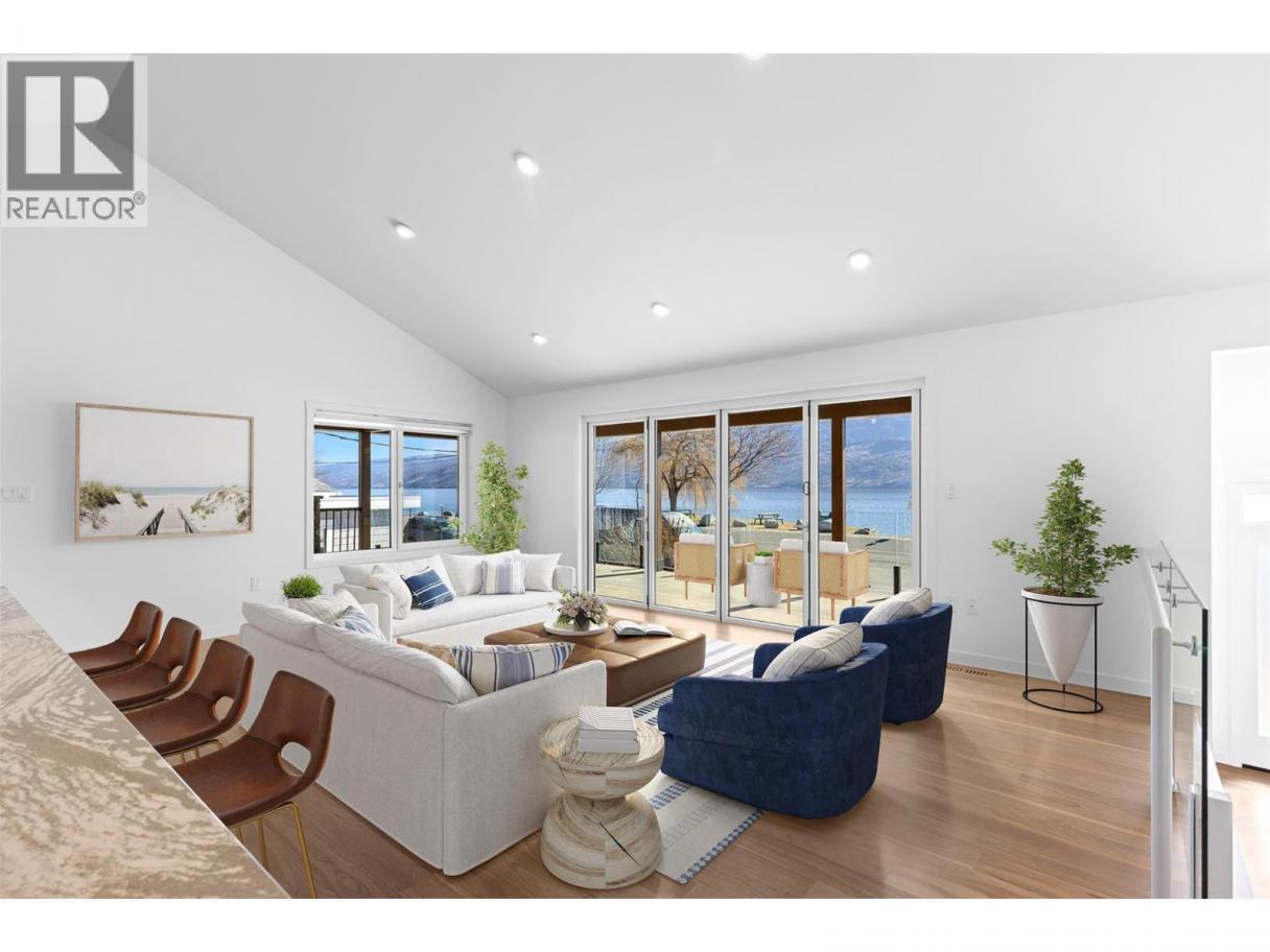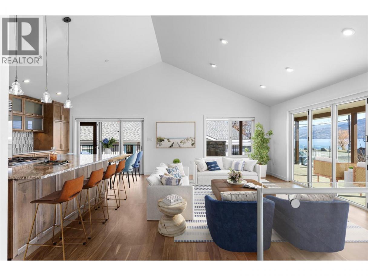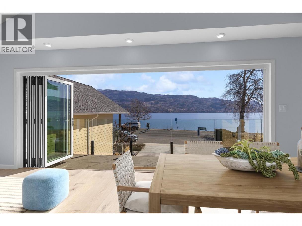 Rare semi-waterfront opportunity on prestigious Beach Avenue, directly across from Okanagan Lake, offering exceptional lake views and the ultimate Okanagan lifestyle. This thoughtfully designed residence captures stunning lake views and offers open-plan living with seamless indoor-outdoor living through multiple expansive glass bi-folding doors that open onto a covered deck with gas fireplace, stamped concrete, and glass railings. The custom kitchen features Miele appliances, Sub-Zero fridge, gas cooktop on a large quartz island, and vaulted ceilings above recently refinished walnut hardwood floors throughout the main living area. The primary retreat offers folding glass doors to a private lakeview deck, walk-in closet, and dream ensuite with custom concrete-finished shower. The bright lower level features a huge family room, two additional bedrooms (one with walk-in closet), full laundry, abundant windows, and space to create a fourth bedroom plus an office or gym. Above the oversized heated 29x29 double garage sits a 900 sq/ft legal one-bedroom suite with high ceilings, private laundry, folding glass doors to its own deck, and incredible lake views—ideal for guests, family, or rental income. Flat lot with flat driveway parking for up to eight vehicles and low-maintenance zeroscape landscaping. A rare Beach Avenue offering with lake views, a legal suite, and exceptional parking—delivering the complete Okanagan lifestyle just steps from the lake. (id:6769)
