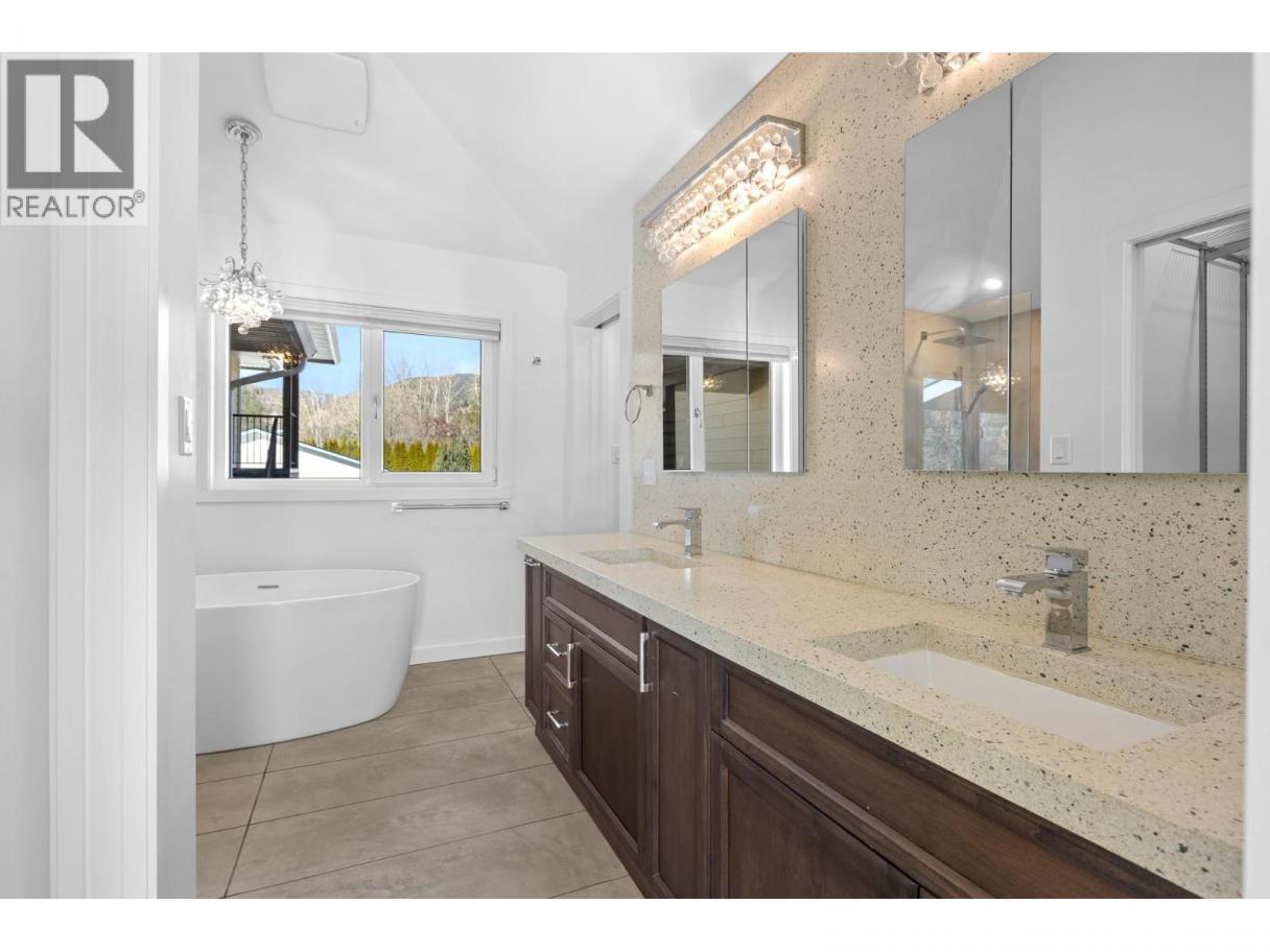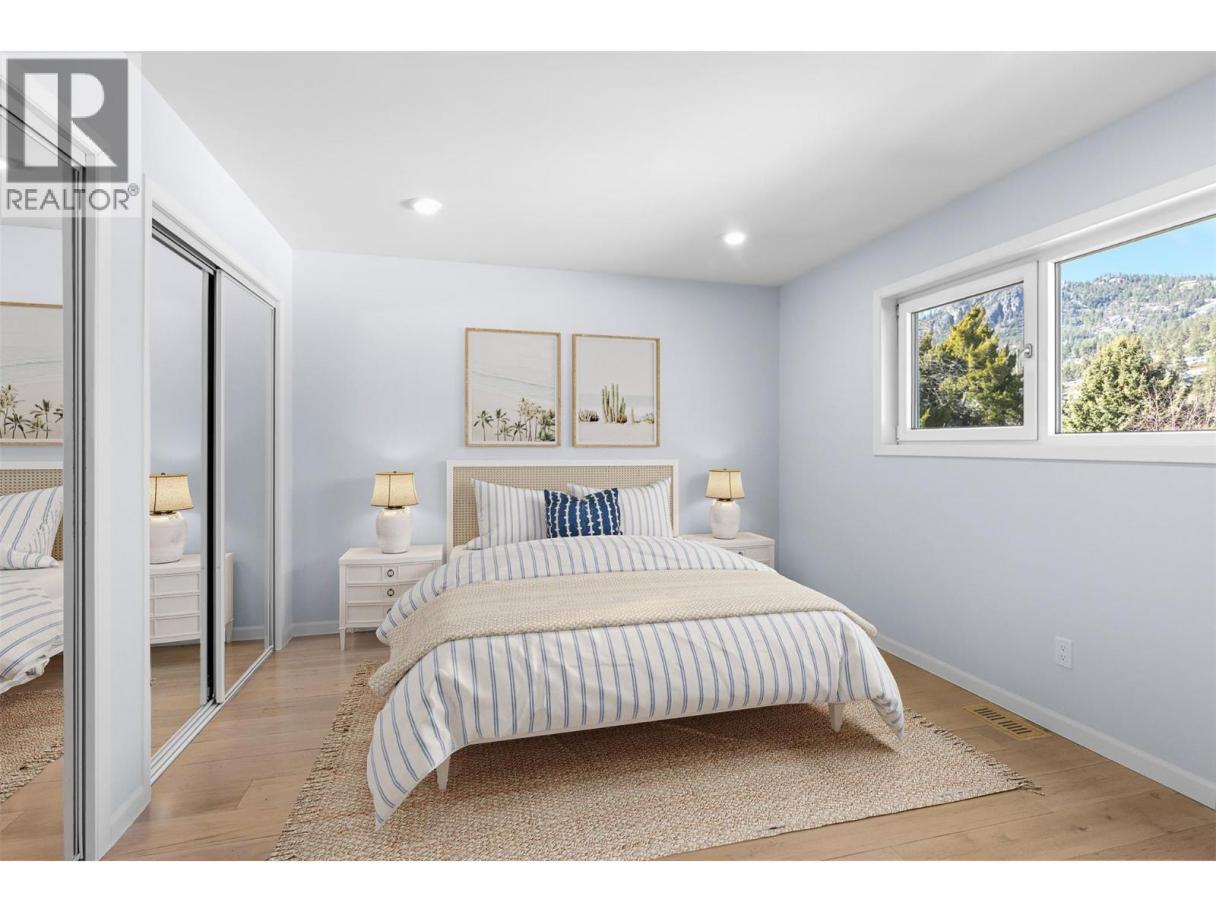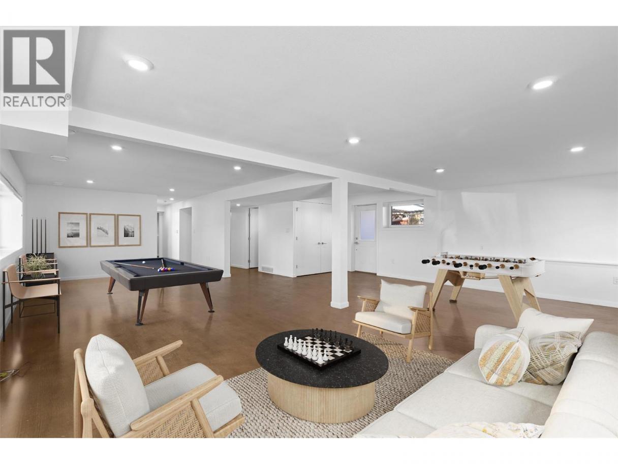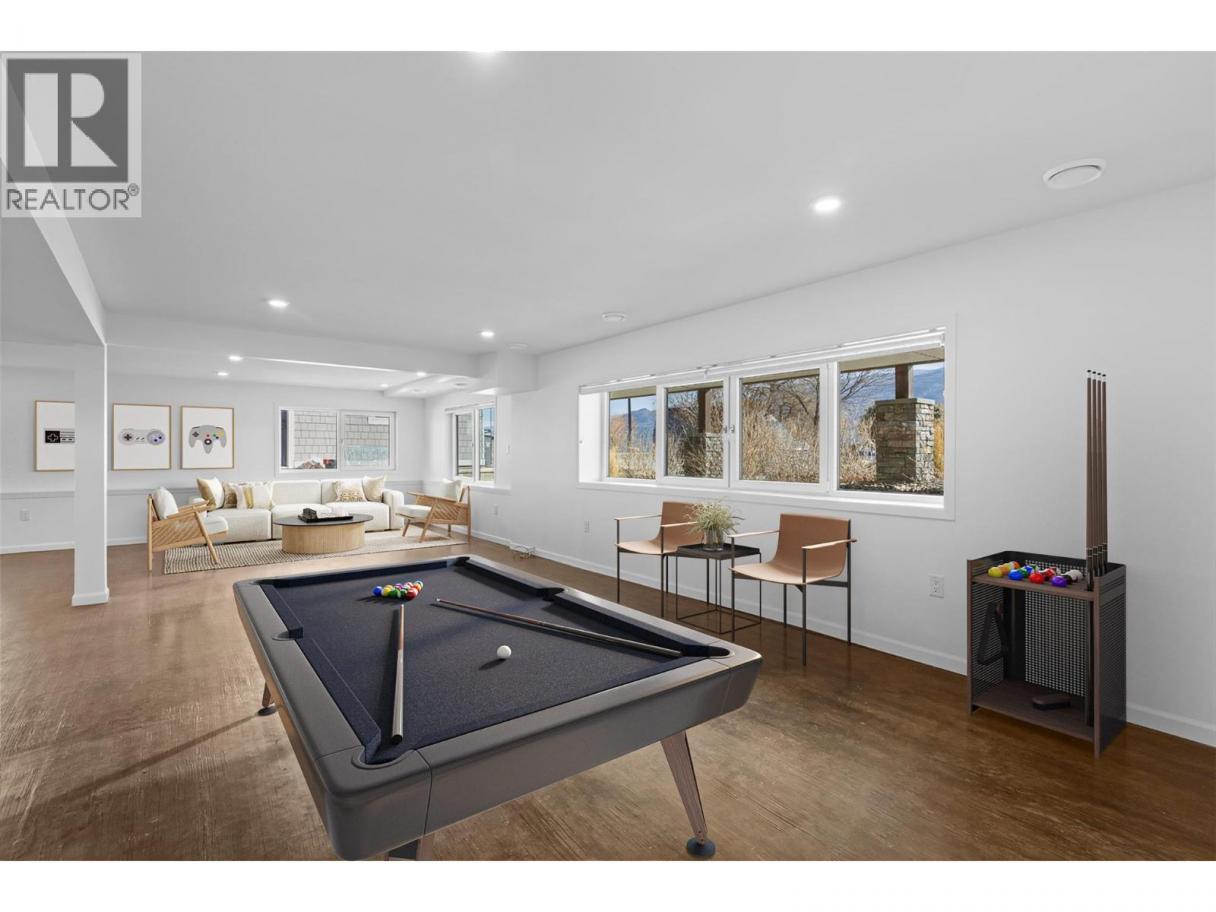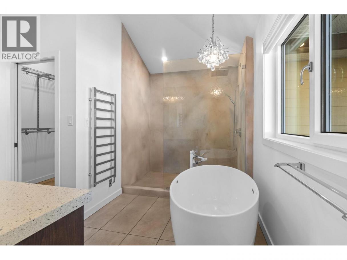 Rare semi-waterfront opportunity on prestigious Beach Avenue, directly across from Okanagan Lake, offering exceptional lake views and the ultimate Okanagan lifestyle. This thoughtfully designed residence captures stunning lake views and offers open-plan living with seamless indoor-outdoor living through multiple expansive glass bi-folding doors that open onto a covered deck with gas fireplace, stamped concrete, and glass railings. The custom kitchen features Miele appliances, Sub-Zero fridge, gas cooktop on a large quartz island, and vaulted ceilings above recently refinished walnut hardwood floors throughout the main living area. The primary retreat offers folding glass doors to a private lakeview deck, walk-in closet, and dream ensuite with custom concrete-finished shower. The bright lower level features a huge family room, two additional bedrooms (one with walk-in closet), full laundry, abundant windows, and space to create a fourth bedroom plus an office or gym. Above the oversized heated 29x29 double garage sits a 900 sq/ft legal one-bedroom suite with high ceilings, private laundry, folding glass doors to its own deck, and incredible lake views—ideal for guests, family, or rental income. Flat lot with flat driveway parking for up to eight vehicles and low-maintenance zeroscape landscaping. A rare Beach Avenue offering with lake views, a legal suite, and exceptional parking—delivering the complete Okanagan lifestyle just steps from the lake. (id:6769)
