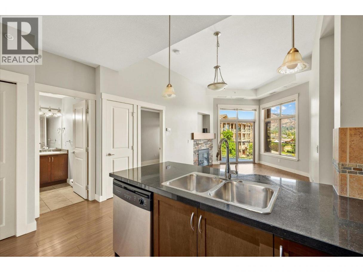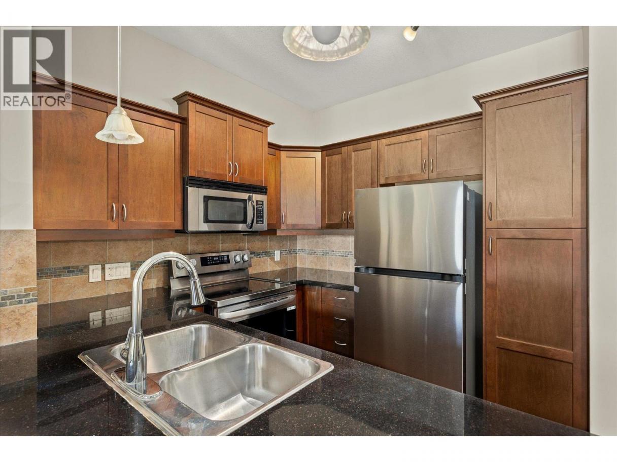 TOP FLOOR LIVING: Indulge in the epitome of West Kelowna living in this stunning 2 bedroom, 2 bath top floor condo at the prestigious Aria. The kitchen features granite counter tops, sitting bar and stainless-steel appliances with a newer stove and fridge. The living space offers a split bedroom floor plan with high ceilings and lots of natural light. There is access to the oversize deck from the living room and primary bedroom. Immerse yourself in breathtaking panoramas of the Twin Eagles Golf Course and Mission Hill Winery from your private balcony. Enjoy the ultimate in comfort and convenience with easy access to world-class golf, shopping, dining, and outdoor recreation. Don't miss this opportunity to experience the Okanagan lifestyle! Aria is a pet and rental-friendly building, with no speculation tax or PTT and the LEASE IS PREPAID. The unit comes with one parking spot and one secured storage locker, low strata fees. PLEASE NOTE: Photos were taken prior to the current tenant moving in (id:6769)