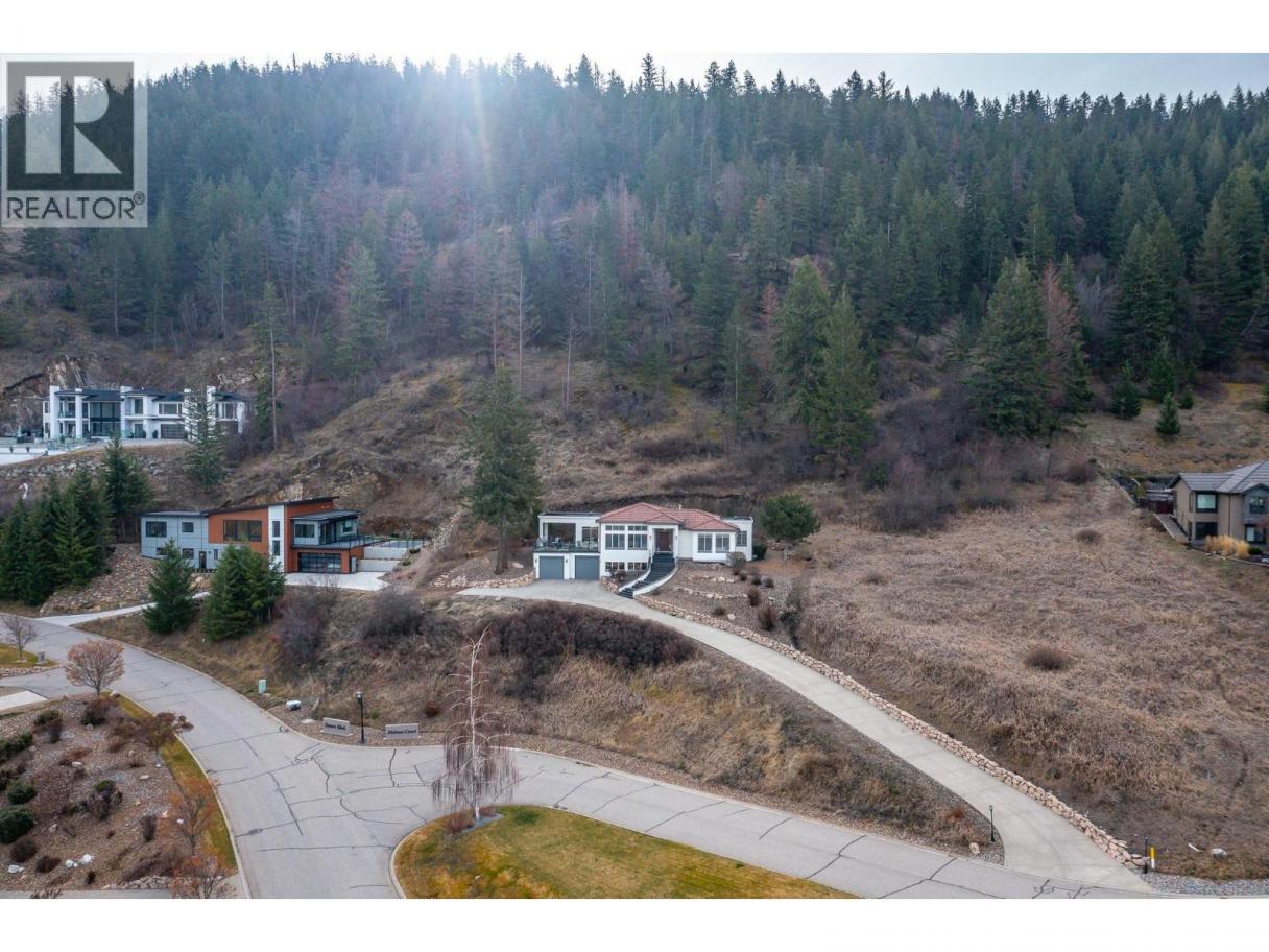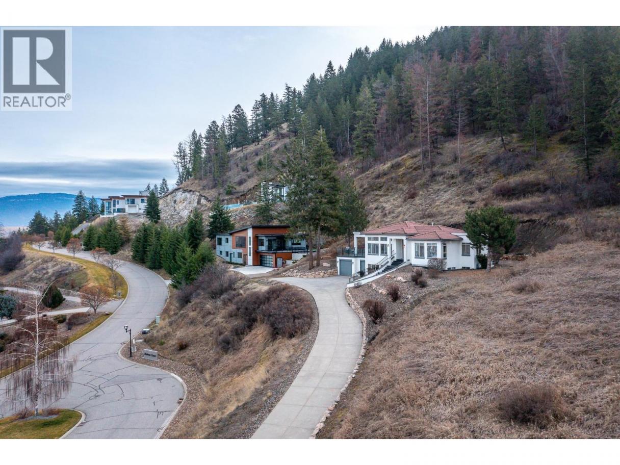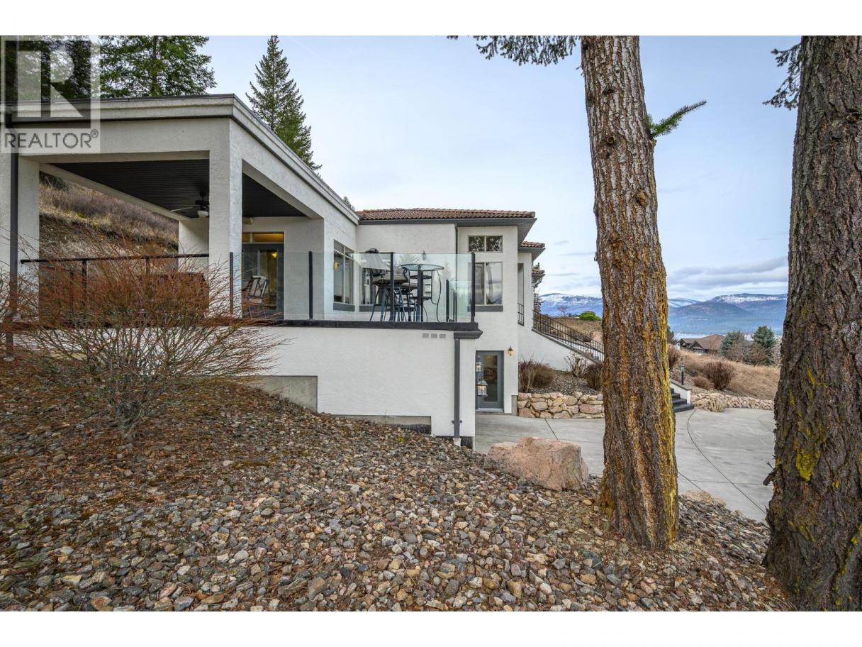 Welcome to Beverly Hills Estates - only 22 one-acre estate properties enjoyed lighted boulevards, gated privacy and a backdrop of 50 acres of private green space for walking and hiking! Fabulous views over Okanagan Lake and the valley and a quick drive down the hill to the Vernon Yacht club and lake amenities! Enjoy the country quiet knowing the City of Vernon is 10 mins away and Predator Ridge Golf, Silver Star Mountain and the Kelowna international airport in just 30-40 mins! Nestled against the green space this home enjoys a minimal care yard and maximum view! Gas fireplace, lofty coffered ceilings, central air. Primary suite on the main level and two bedrooms on the lower – perfect for your teens or guests! ‘Great room’ design opens to the super deck with stamped concrete floors, glass railings and covered area for comfy dining! Den opens to backyard, private patio. Lower-level family/TV room with French doors to an office /study nook! Very large laundry room with mega cabinets. Lots of storage throughout! Double garage. Quick possession. (id:6769)