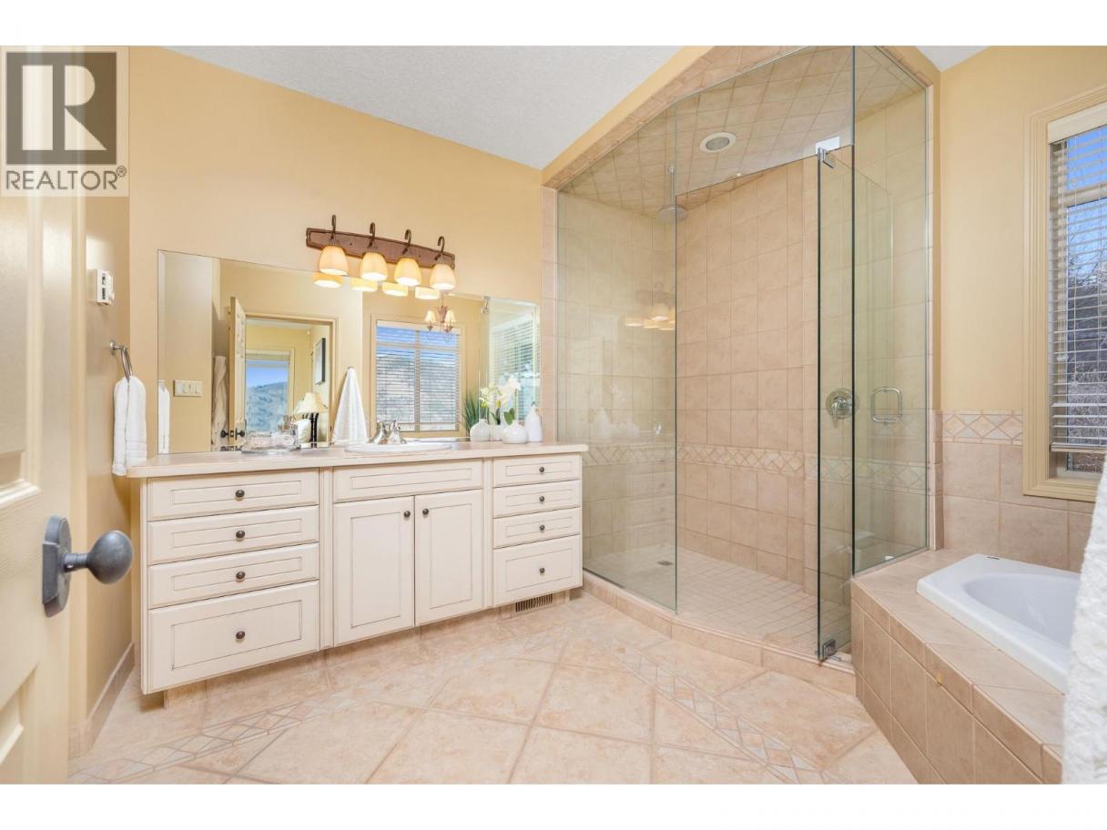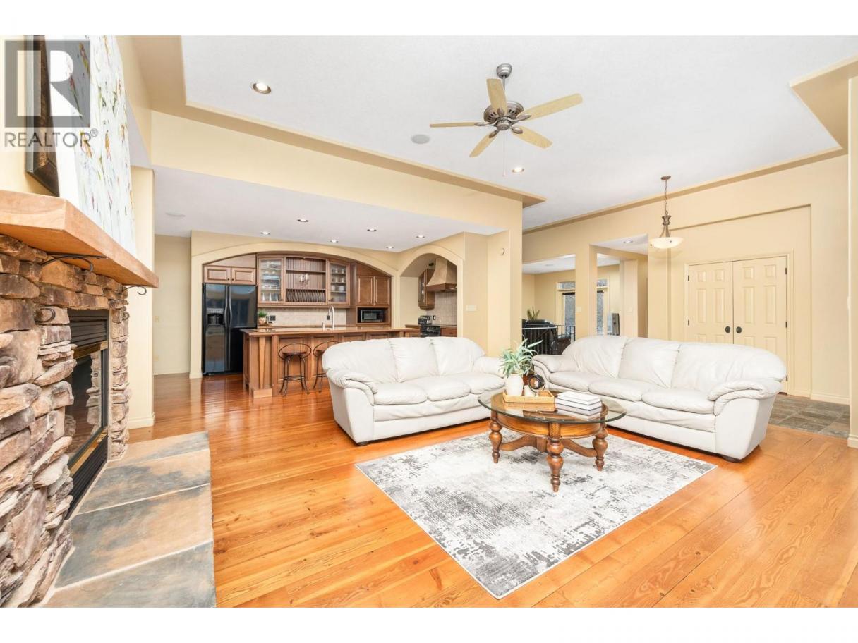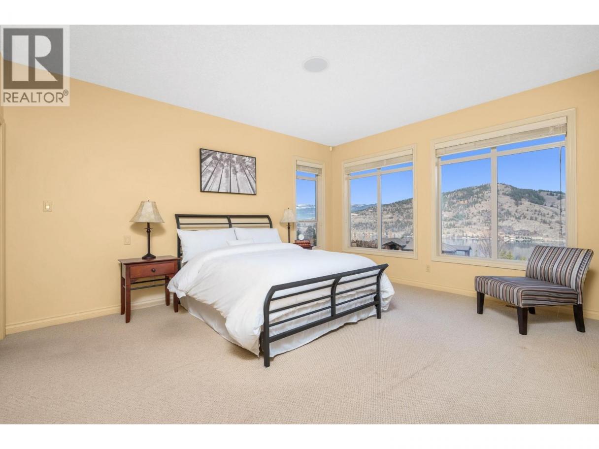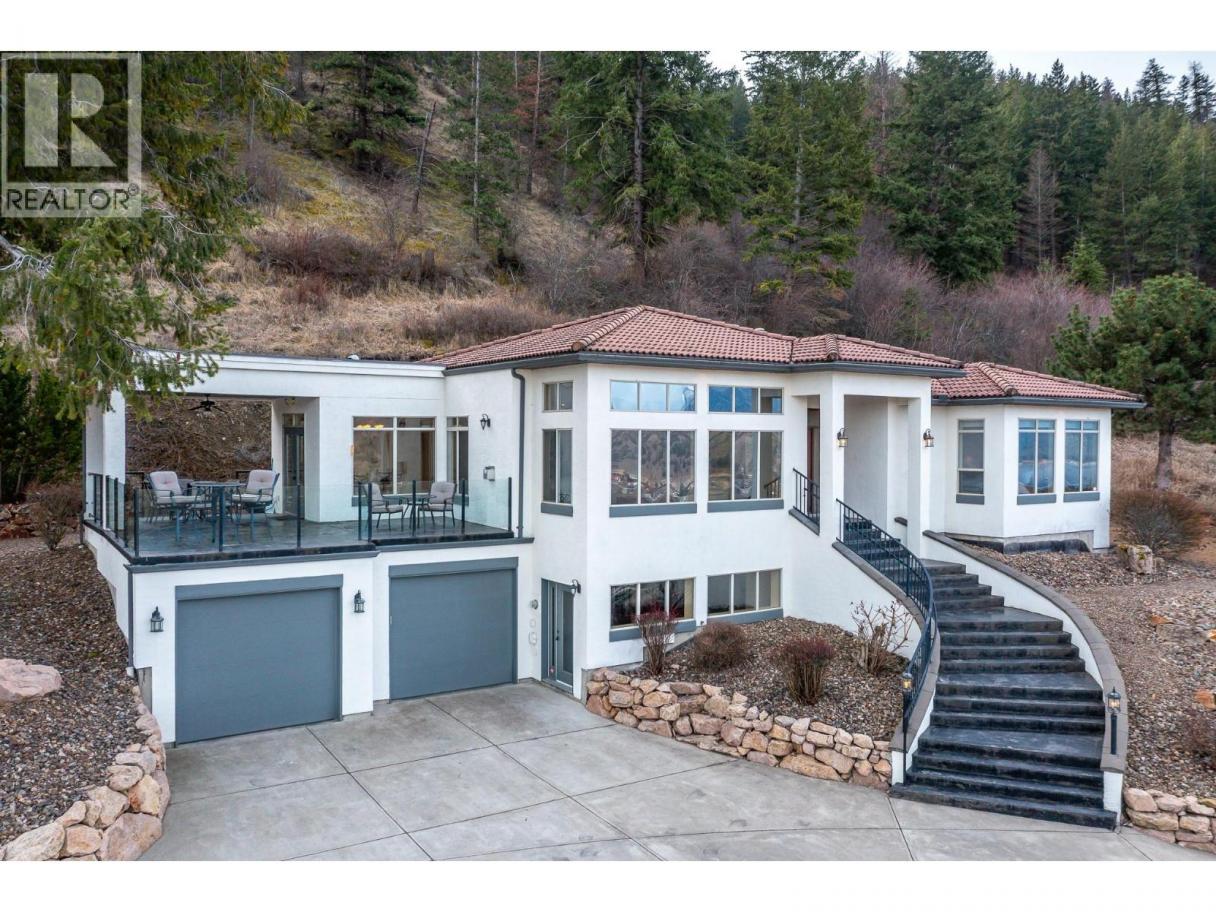 Welcome to Beverly Hills Estates - only 22 one-acre estate properties enjoyed lighted boulevards, gated privacy and a backdrop of 50 acres of private green space for walking and hiking! Fabulous views over Okanagan Lake and the valley and a quick drive down the hill to the Vernon Yacht club and lake amenities! Enjoy the country quiet knowing the City of Vernon is 10 mins away and Predator Ridge Golf, Silver Star Mountain and the Kelowna international airport in just 30-40 mins! Nestled against the green space this home enjoys a minimal care yard and maximum view! Gas fireplace, lofty coffered ceilings, central air. Primary suite on the main level and two bedrooms on the lower – perfect for your teens or guests! ‘Great room’ design opens to the super deck with stamped concrete floors, glass railings and covered area for comfy dining! Den opens to backyard, private patio. Lower-level family/TV room with French doors to an office /study nook! Very large laundry room with mega cabinets. Lots of storage throughout! Double garage. Quick possession. (id:6769)