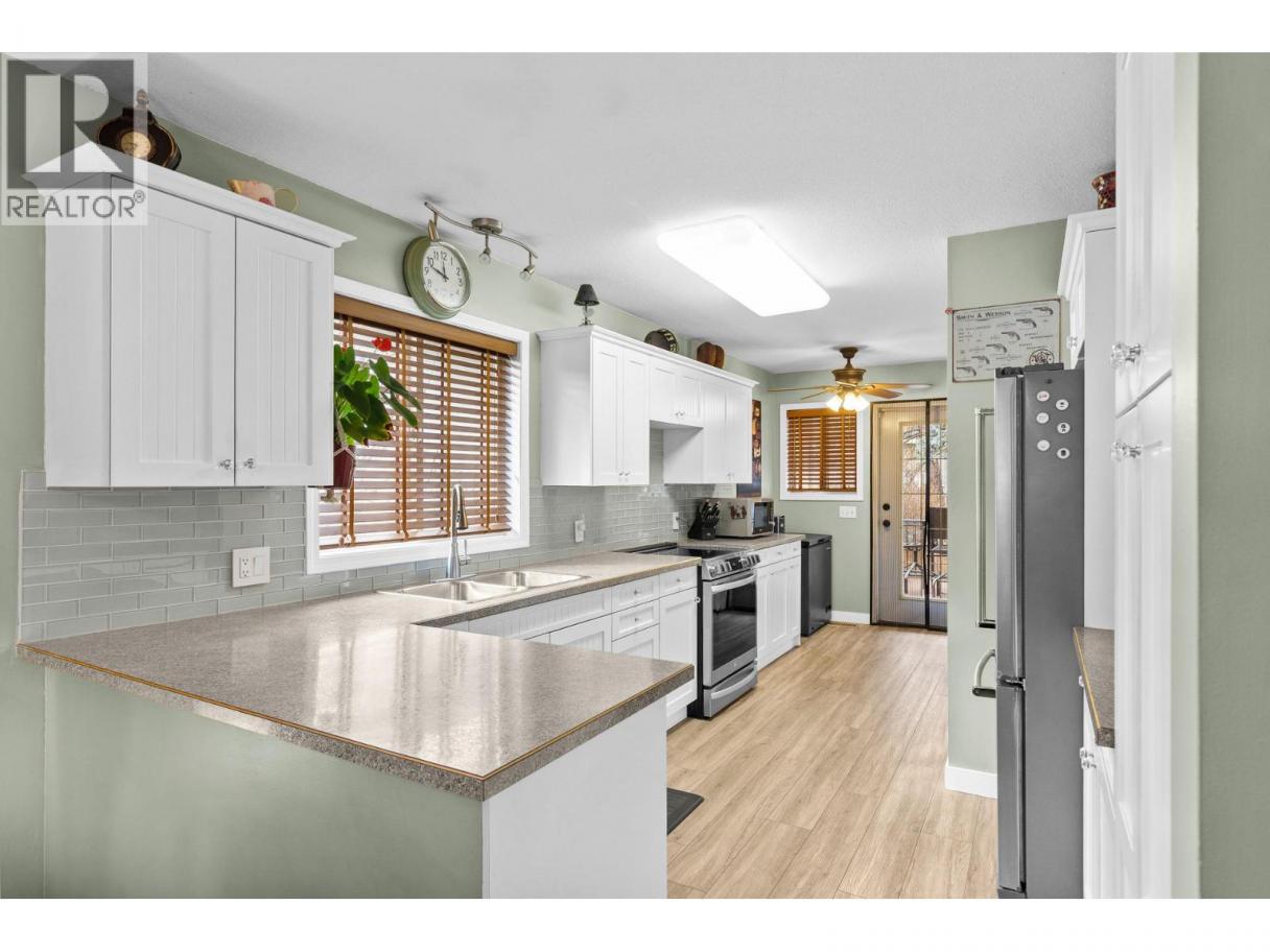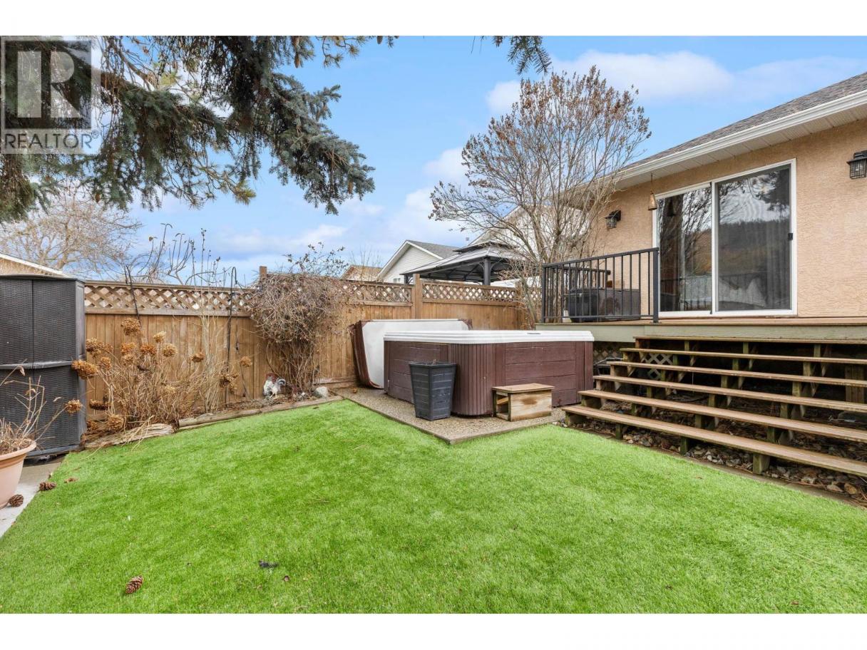 Welcome to this bright and inviting 1,206 sq. ft. home offering 3 bedrooms and 1.5 bathrooms, thoughtfully designed for comfortable everyday living. The spacious living room is filled with natural light from large front windows and features a stylish wall-mounted electric fireplace, creating a warm focal point. The kitchen is both functional and attractive, featuring white shaker-style cabinetry, a subway tile backsplash, stainless steel appliances, and generous counter space. Bright and open, it overlooks the dining and living areas, creating a natural connection to the main living space and making it perfect for everyday living and entertaining. The spacious primary bedroom offers a comfortable retreat with a convenient ensuite and sliding glass doors that open onto the raised back deck, creating an easy connection to the outdoor living space. The deck, also accessible from the kitchen, features sleek metal railings and overlooks a relaxing hot tub area—perfect for unwinding at the end of the day. The private backyard is beautifully finished with mature trees, attractive plantings, and low-maintenance synthetic lawn, all enclosed with privacy fencing. Two additional bedrooms provide flexible space for family, guests, or a home office. Major mechanical updates include a high-efficiency furnace, central air conditioning, and hot water on demand, all approximately three years old. The property also offers ample parking with space for an RV plus three additional vehicles. (id:6769)