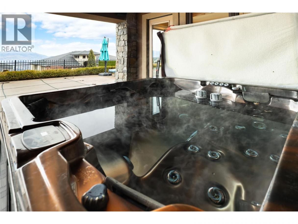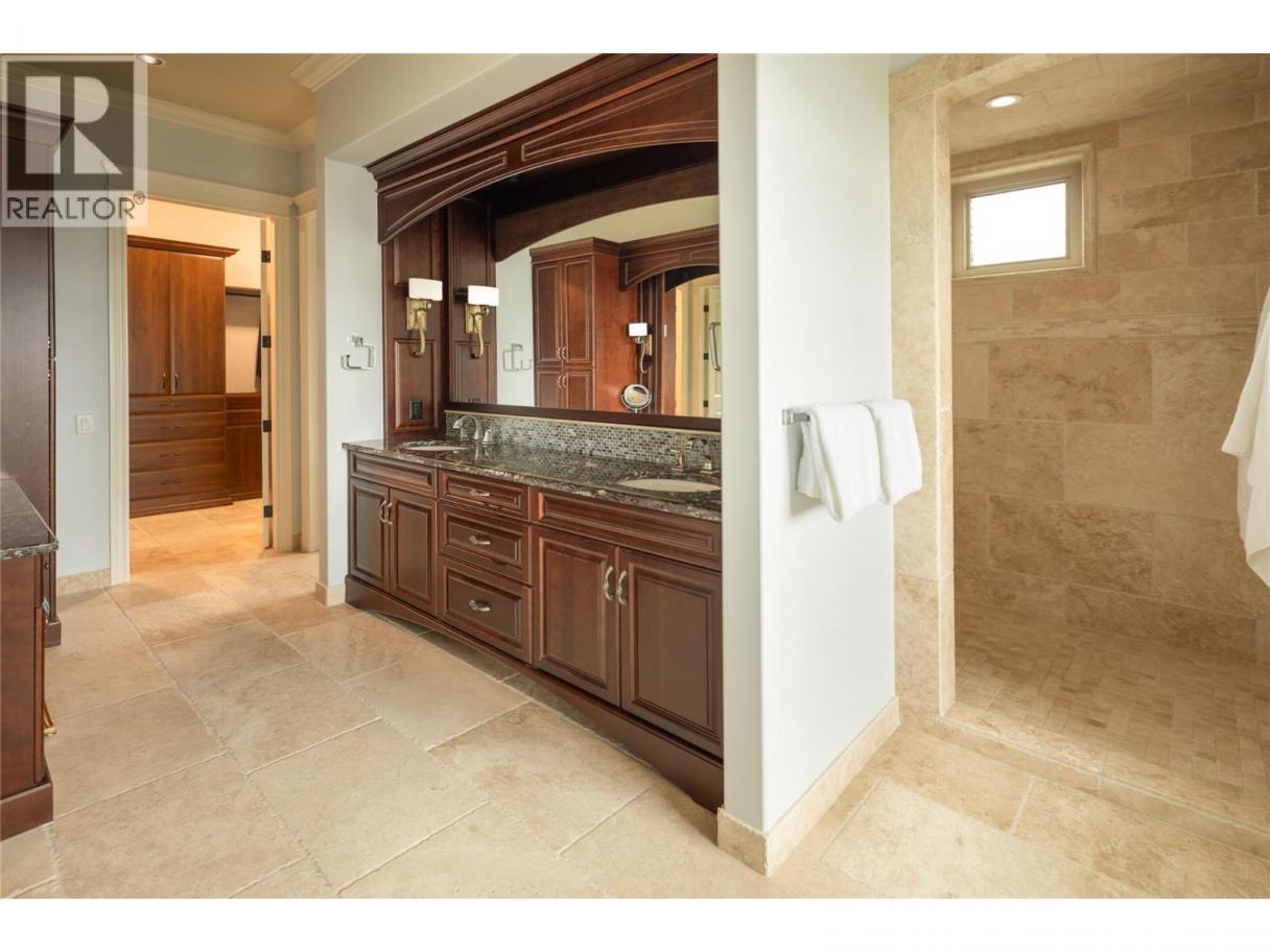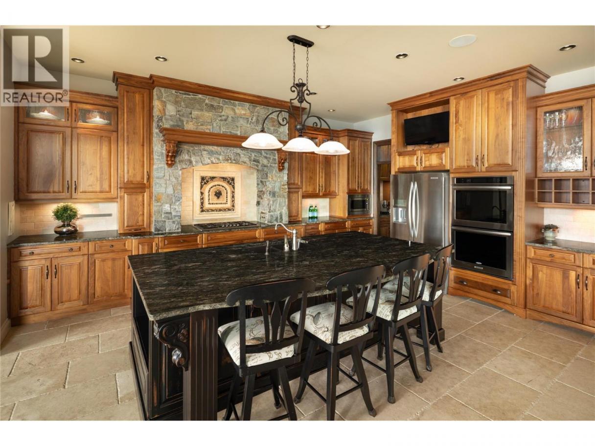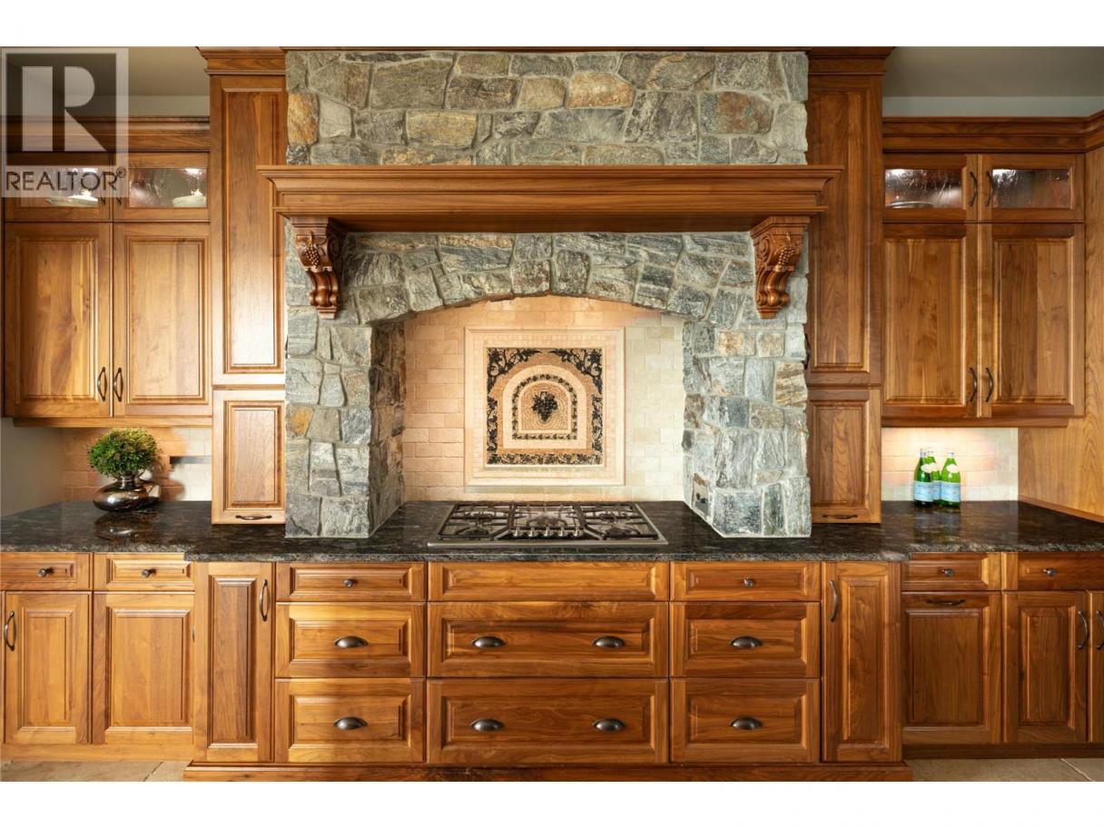 Located in the prestigious Upper Mission, this one-of-a-kind executive residence offers over 5,500 sq.ft. of refined living space with expansive lake, valley & city views. Designed for both everyday comfort & exceptional entertaining, this luxury home showcases timeless materials, quality craftsmanship & thoughtfully designed spaces throughout, offering the convenience of main-level living. The living area features coffered ceilings, wide plank oak flooring, stone fireplace & expansive windows framing the surrounding views. A statement fireplace anchors the room while the kitchen is appointed with custom cabinetry by Westwood, a large gathering island, premium appliances & Thermador gas range. Architectural details continue throughout with five fireplaces adding warmth & character across multiple living spaces. A dedicated scotch room provides an impressive setting for collectors & entertaining. The primary suite offers lake views, a spacious walk-in closet & a beautifully finished ensuite with soaker tub, dual vanities & walk-in shower. The walk-out lower level is designed for recreation & relaxation with a spacious family room, recreation area with wet bar, media room, fitness room & three king sized bedrooms. A convenient pool bathroom provides direct access to the outdoor entertaining areas. Outdoors, the property captures the Okanagan lifestyle with a stunning tile saltwater pool, expansive patio spaces & beautifully landscaped surroundings. The covered outdoor lounge features a stone fireplace, electronic TV & integrated hot tub area—perfect for year-round enjoyment. The triple garage includes epoxy flooring, an oversized RV-height garage door & ample space for vehicles, toys or workshop needs. Set among luxury homes in Kelowna’s sought-after Upper Mission, this exceptional property offers privacy, craftsmanship & a lifestyle designed to be enjoyed. (id:6769)