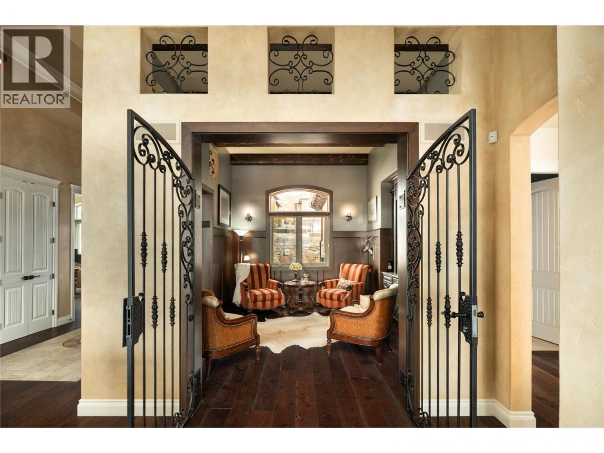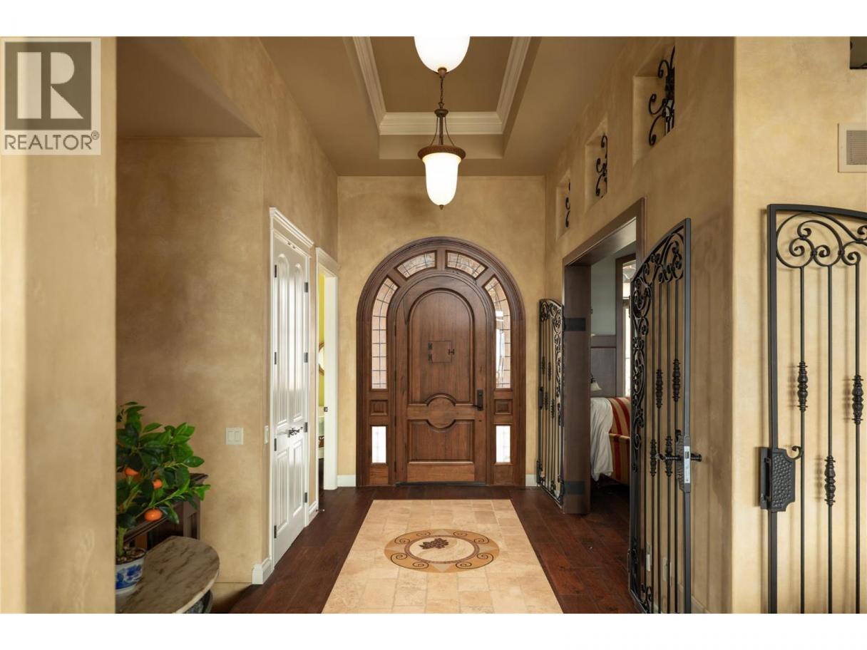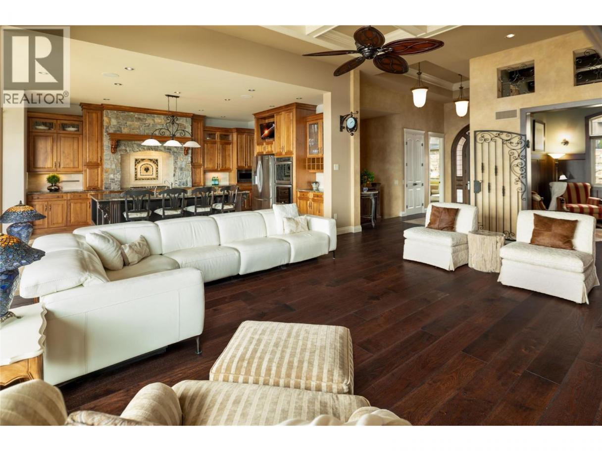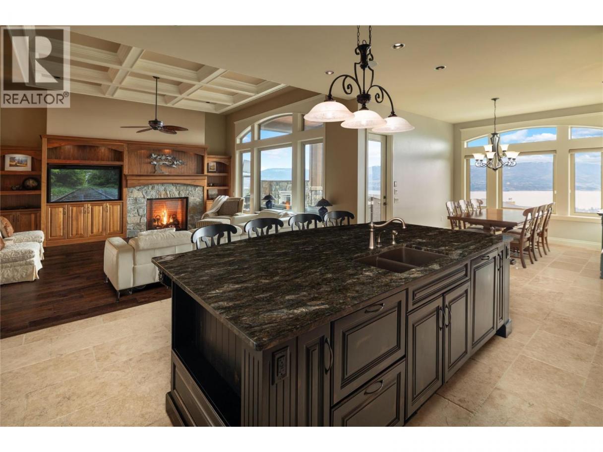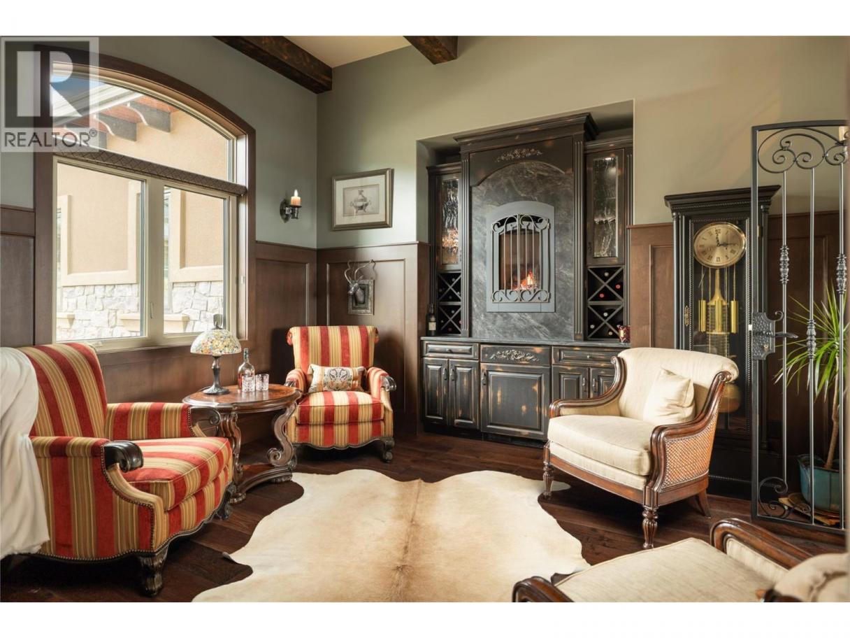 Located in the prestigious Upper Mission, this one-of-a-kind executive residence offers over 5,500 sq.ft. of refined living space with expansive lake, valley & city views. Designed for both everyday comfort & exceptional entertaining, this luxury home showcases timeless materials, quality craftsmanship & thoughtfully designed spaces throughout, offering the convenience of main-level living. The living area features coffered ceilings, wide plank oak flooring, stone fireplace & expansive windows framing the surrounding views. A statement fireplace anchors the room while the kitchen is appointed with custom cabinetry by Westwood, a large gathering island, premium appliances & Thermador gas range. Architectural details continue throughout with five fireplaces adding warmth & character across multiple living spaces. A dedicated scotch room provides an impressive setting for collectors & entertaining. The primary suite offers lake views, a spacious walk-in closet & a beautifully finished ensuite with soaker tub, dual vanities & walk-in shower. The walk-out lower level is designed for recreation & relaxation with a spacious family room, recreation area with wet bar, media room, fitness room & three king sized bedrooms. A convenient pool bathroom provides direct access to the outdoor entertaining areas. Outdoors, the property captures the Okanagan lifestyle with a stunning tile saltwater pool, expansive patio spaces & beautifully landscaped surroundings. The covered outdoor lounge features a stone fireplace, electronic TV & integrated hot tub area—perfect for year-round enjoyment. The triple garage includes epoxy flooring, an oversized RV-height garage door & ample space for vehicles, toys or workshop needs. Set among luxury homes in Kelowna’s sought-after Upper Mission, this exceptional property offers privacy, craftsmanship & a lifestyle designed to be enjoyed. (id:6769)